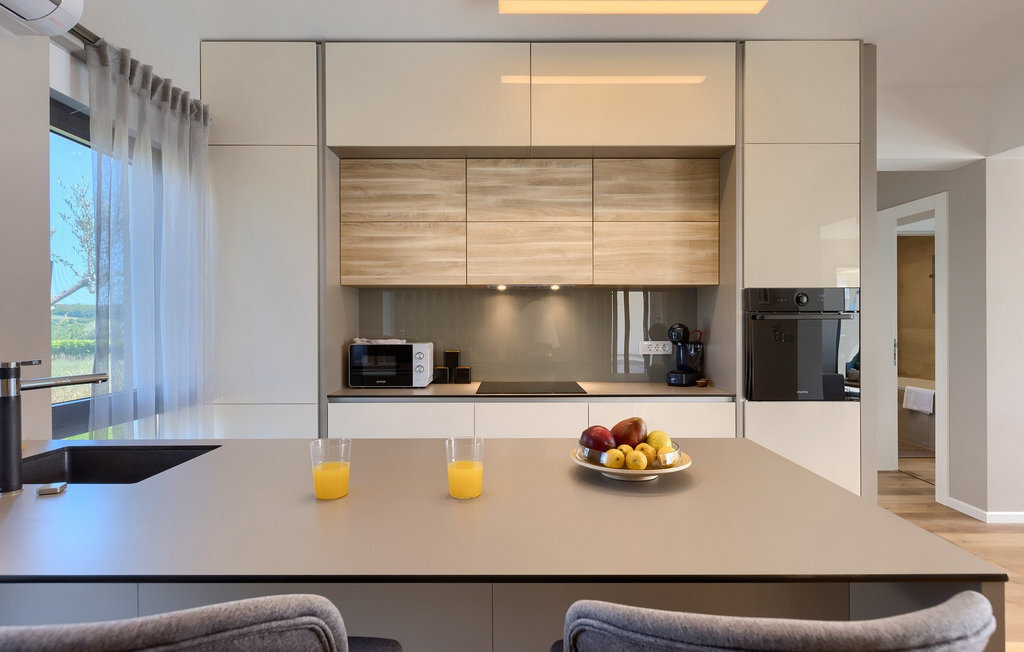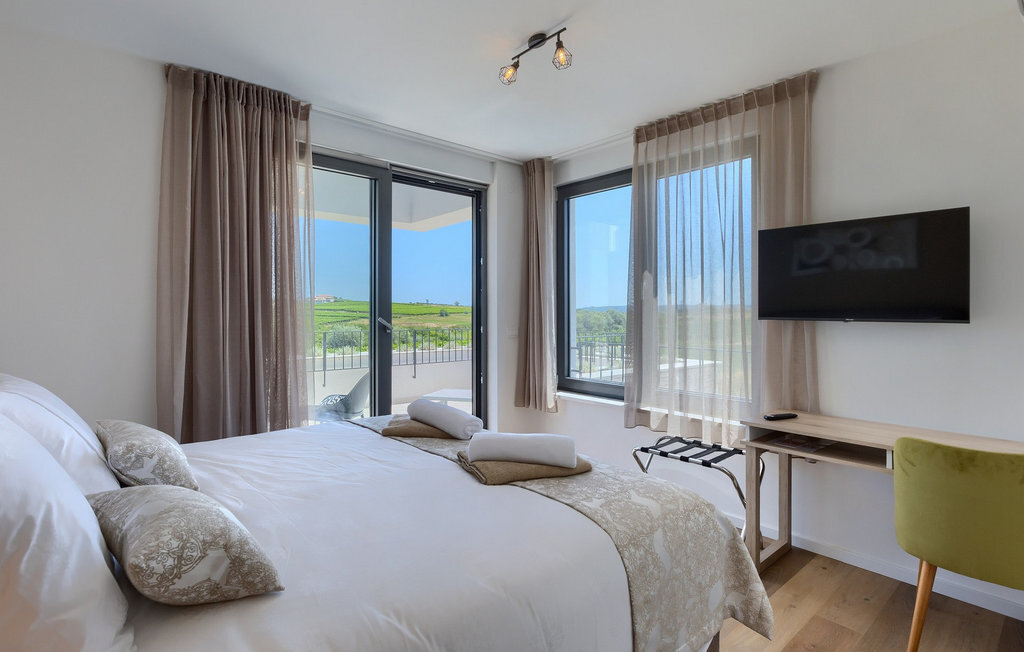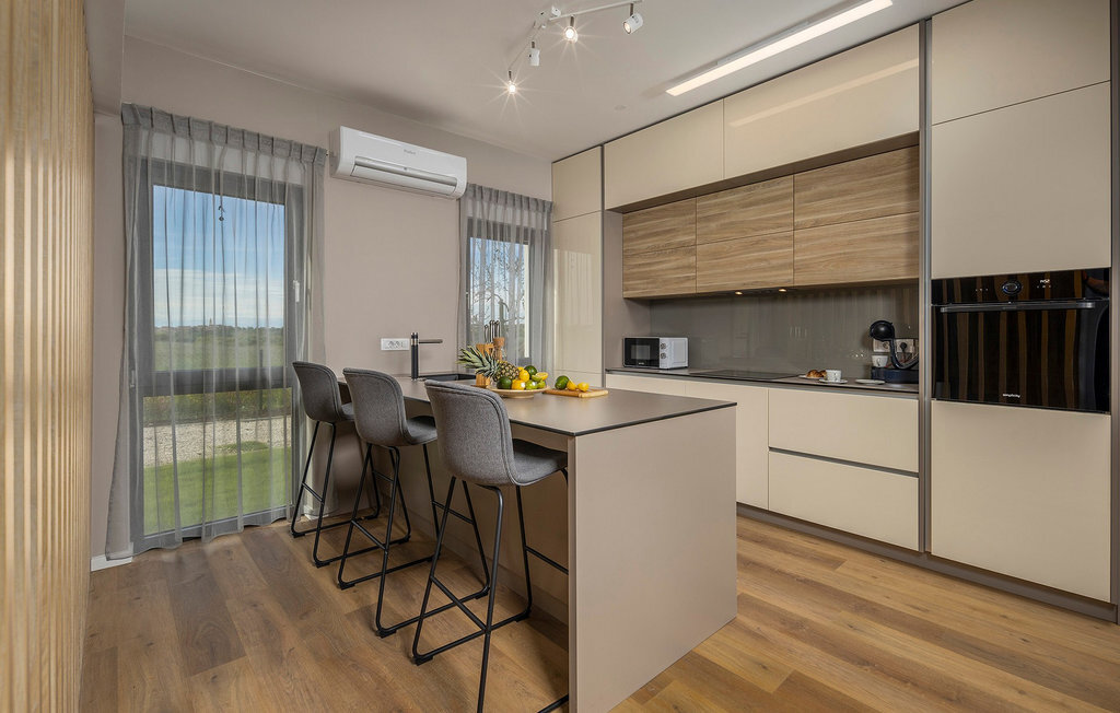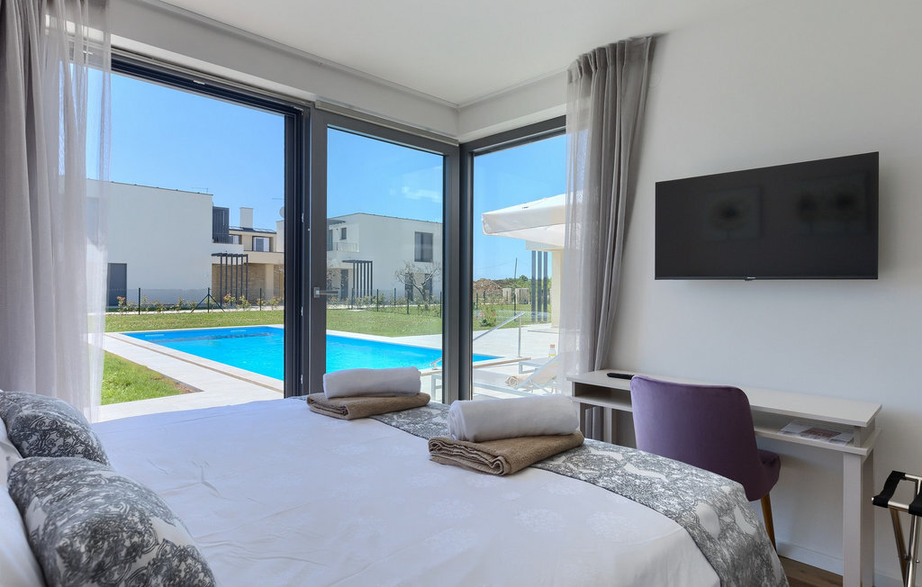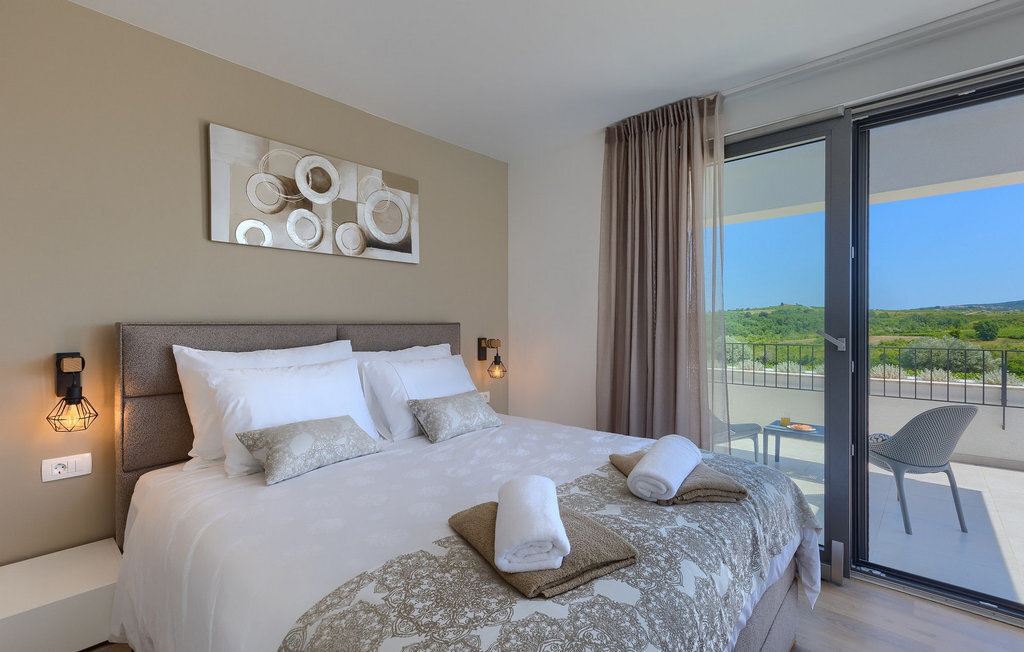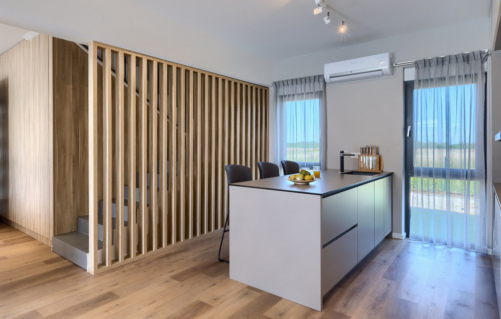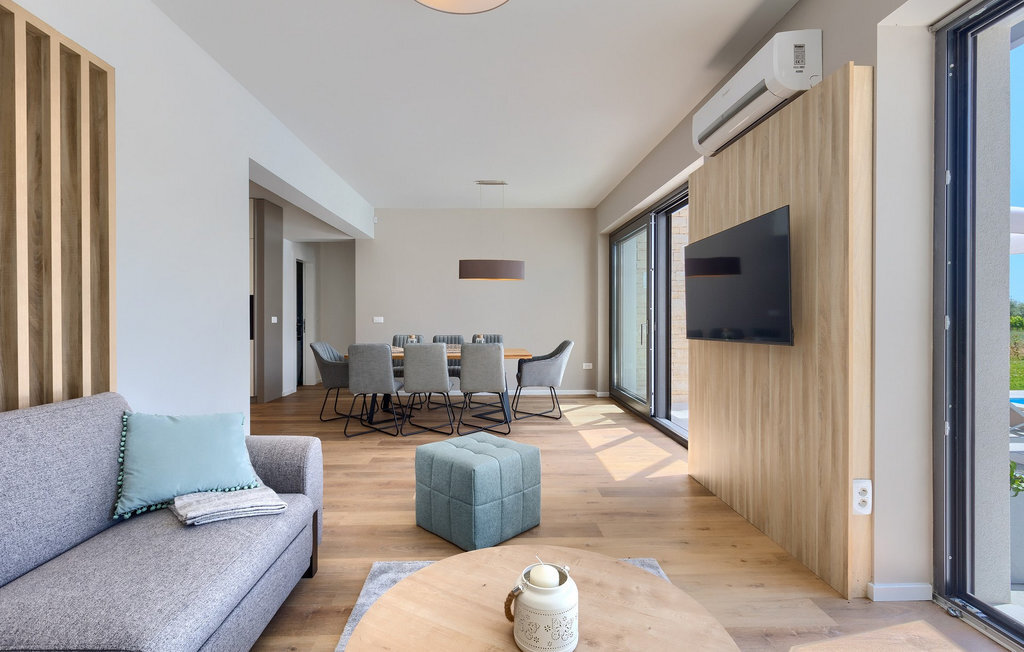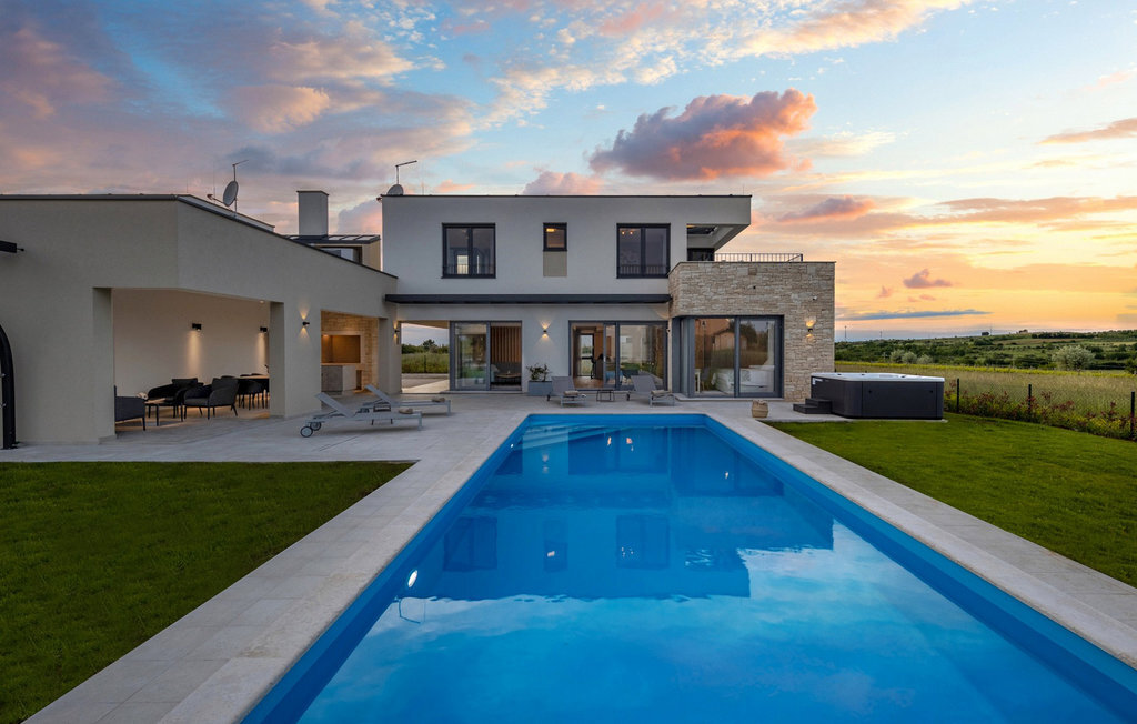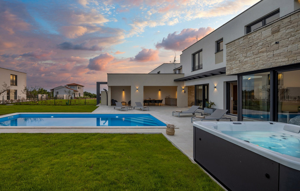 La villa moderne Luna est un véritable havre de paix au cœur de la nature intacte de Brtonigla. C'est un lieu en Istrie qui fait partie des endroits où de nombreux touristes aiment revenir chaque année pour son paysage idyllique et son climat agréable et chaud. Si vous êtes une personne qui aspire à la tranquillité tout en passant des vacances luxueuses, alors Villa Luna est le bon choix pour vous ! Construite en 2021 dans un style architectural moderne, la Villa Luna dispose de 230 m2 de surface habitable et possède en outre un grand jardin idéal pour les jeux des enfants. À l'intérieur, il y a beaucoup de détails luxueux pour rendre vos vacances de rêve encore meilleures et plus belles ! La villa est divisée en rez-de-chaussée et en étage et peut accueillir 10 personnes au maximum et 8 au mieux. Au rez-de-chaussée se trouvent un salon spacieux avec télévision, table basse, canapé et fauteuil, une cuisine avec bar avec 3 places assises, une salle à manger avec table pour 8 personnes ainsi qu'une chambre à coucher et une salle de bain privée avec baignoire. À l'étage supérieur se trouvent 3 autres chambres à coucher avec lit double et 3 salles de bains ensuite avec douches, et à l'intérieur de la villa il y a un autre WC séparé. Chacune des chambres à coucher dispose de sa propre sortie vers la terrasse ou le balcon. Sur la terrasse extérieure se trouve une piscine chauffée de 40 m2 et d'une profondeur de 1,35 mètre. L'équipement supplémentaire de la piscine comprend également le chauffage, mais contre un supplément. Vous pouvez vous rafraîchir agréablement de jour comme de nuit et le jacuzzi à côté de la piscine vous garantit des soirées romantiques autour d'un verre de vin traditionnel d'Istrie. Les bains de soleil sont possibles sur des chaises longues au bord de la piscine. Dans la cour intérieure de la villa se trouve une terrasse spacieuse avec une cuisine d'été équipée d'un barbecue, une table à manger extérieure avec 8 places assises et un canapé d'angle. La villa offre à ses hôtes des installations supplémentaires telles que deux vélos pour adultes, un trampoline, un badminton et des fléchettes. Juste à côté de la Villa Luna se trouve sa sœur, la Villa Sole, qui peut également être louée et qui offre également un séjour agréable et luxueux ! Deux places de parking sont à votre disposition dans la cour et une autre place supplémentaire est disponible à l'extérieur de la cour. Ce qui rend Brtonigla spécial, ce sont ses rues pittoresques, où presque chaque maison a une couleur différente, et ses panoramas, d'où l'on peut profiter de la vue magnifique sur la nature intacte, ravissent chaque visiteur. En bref, c'est un endroit idéal pour les créatifs et les romantiques, en particulier pour ceux qui recherchent une thérapie anti-stress. Parmi les curiosités, on peut citer l'église Sv. Zeno datant du 19e siècle, la galerie commémorative du sculpteur Aleksandar Rukavina, et une visite à Brtonigla ne peut se faire sans déguster les vins des producteurs locaux. Pour les plus petits, Brtonigla abrite également le parc aquatique Istralandia, qui propose de nombreux contenus intéressants qui ne manqueront pas de les enthousiasmer ! Profitez avec vos proches de vacances luxueuses et tranquilles et détendez-vous dans la fabuleuse Istrie ! Bienvenue à la Villa Luna ! Le chauffage de la piscine est disponible moyennant des frais supplémentaires à régler sur place. Les animaux domestiques sont autorisés dans ce logement à la discrétion du propriétaire et moyennant un supplément. Veuillez noter que ce logement n'accepte les groupes de jeunes que contre le paiement d'une caution remboursable de 1000 EUR. Un groupe de jeunes dans ce logement est composé de personnes de moins de 27 ans. Si vous êtes un groupe de jeunes, il vous sera demandé de verser la caution à votre arrivée. Tout montant nécessaire à la réparation des dommages causés au logement pendant votre séjour sera déduit de la caution et vous sera ensuite remboursé.