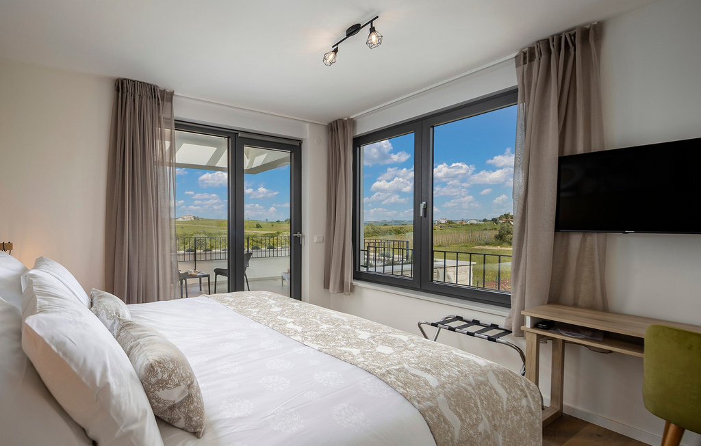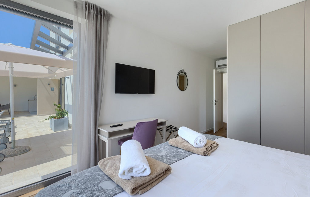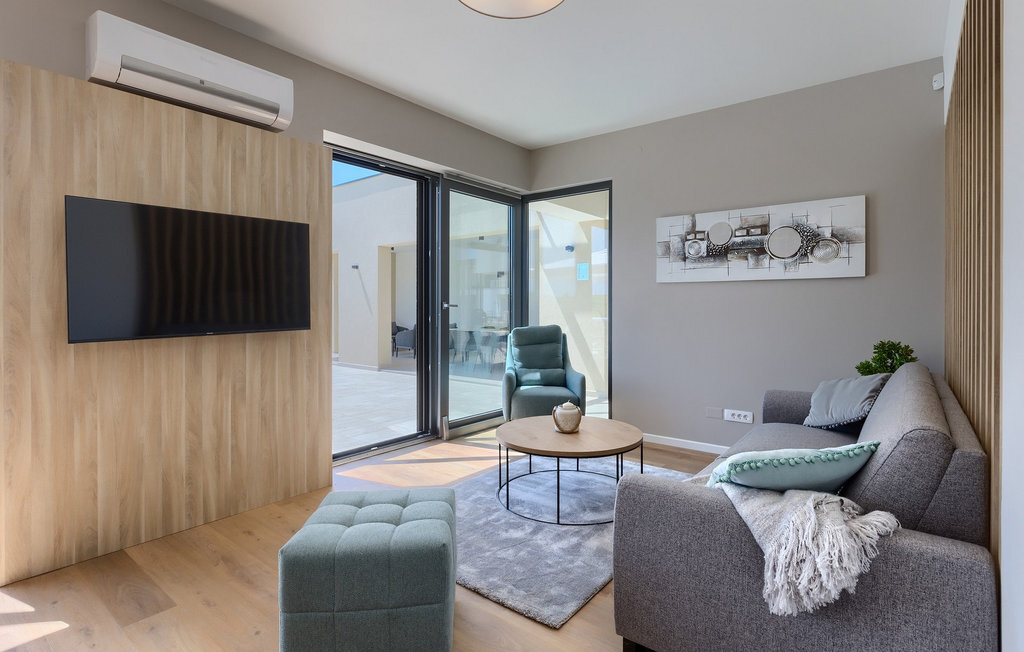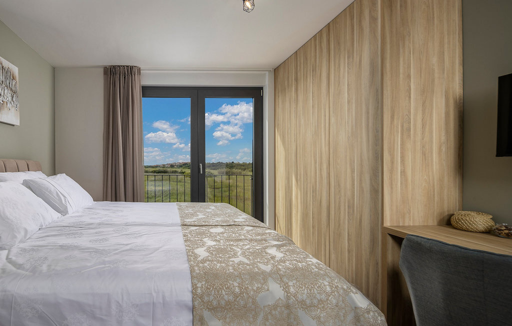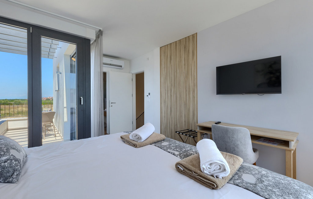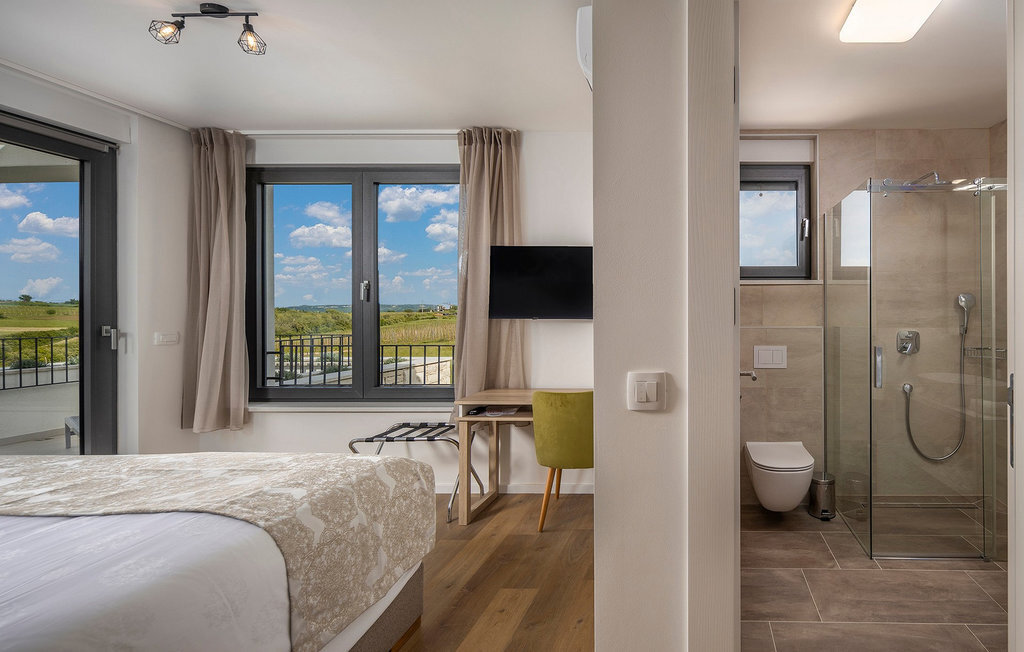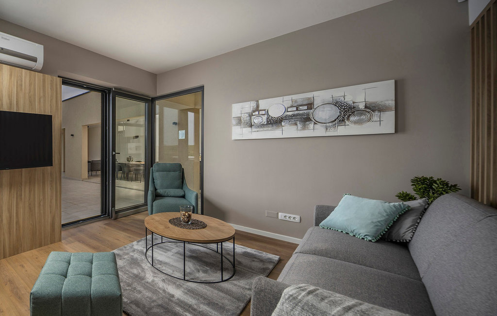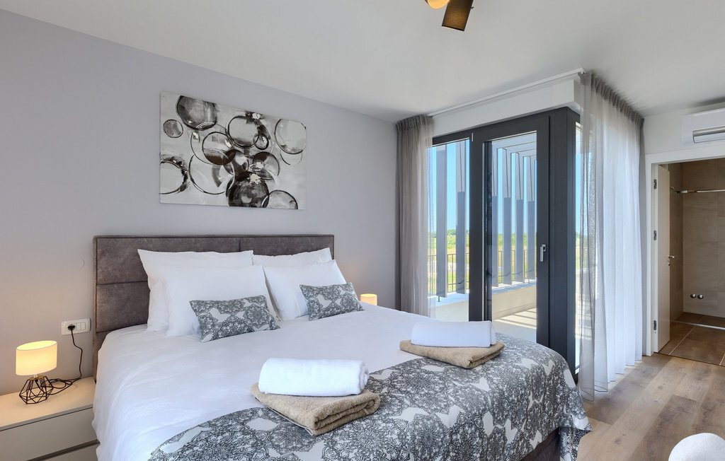 La villa moderne Luna est un véritable havre de paix au cœur de la nature intacte de Brtonigla. C'est un lieu en Istrie qui fait partie des endroits où de nombreux touristes aiment revenir chaque année pour son paysage idyllique et son climat agréable et chaud. Si vous êtes une personne qui aspire à la tranquillité tout en passant des vacances luxueuses, alors Villa Luna est le bon choix pour vous ! Construite en 2021 dans un style architectural moderne, la Villa Luna dispose de 230 m2 de surface habitable et possède en outre un grand jardin idéal pour les jeux des enfants. À l'intérieur, il y a beaucoup de détails luxueux pour rendre vos vacances de rêve encore meilleures et plus belles ! La villa est divisée en rez-de-chaussée et en étage et peut accueillir 10 personnes au maximum et 8 au mieux. Au rez-de-chaussée se trouvent un salon spacieux avec télévision, table basse, canapé et fauteuil, une cuisine avec bar avec 3 places assises, une salle à manger avec table pour 8 personnes ainsi qu'une chambre à coucher et une salle de bain privée avec baignoire. À l'étage supérieur se trouvent 3 autres chambres à coucher avec lit double et 3 salles de bains ensuite avec douches, et à l'intérieur de la villa il y a un autre WC séparé. Chacune des chambres à coucher dispose de sa propre sortie vers la terrasse ou le balcon. Sur la terrasse extérieure se trouve une piscine chauffée de 40 m2 et d'une profondeur de 1,35 mètre. L'équipement supplémentaire de la piscine comprend également le chauffage, mais contre un supplément. Vous pouvez vous rafraîchir agréablement de jour comme de nuit et le jacuzzi à côté de la piscine vous garantit des soirées romantiques autour d'un verre de vin traditionnel d'Istrie. Les bains de soleil sont possibles sur des chaises longues au bord de la piscine. Dans la cour intérieure de la villa se trouve une terrasse spacieuse avec une cuisine d'été équipée d'un barbecue, une table à manger extérieure avec 8 places assises et un canapé d'angle. La villa offre à ses hôtes des installations supplémentaires telles que deux vélos pour adultes, un trampoline, un badminton et des fléchettes. Juste à côté de la Villa Luna se trouve sa sœur, la Villa Sole, qui peut également être louée et qui offre également un séjour agréable et luxueux ! Deux places de parking sont à votre disposition dans la cour et une autre place supplémentaire est disponible à l'extérieur de la cour. Ce qui rend Brtonigla spécial, ce sont ses rues pittoresques, où presque chaque maison a une couleur différente, et ses panoramas, d'où l'on peut profiter de la vue magnifique sur la nature intacte, ravissent chaque visiteur. En bref, c'est un endroit idéal pour les créatifs et les romantiques, en particulier pour ceux qui recherchent une thérapie anti-stress. Parmi les curiosités, on peut citer l'église Sv. Zeno datant du 19e siècle, la galerie commémorative du sculpteur Aleksandar Rukavina, et une visite à Brtonigla ne peut se faire sans déguster les vins des producteurs locaux. Pour les plus petits, Brtonigla abrite également le parc aquatique Istralandia, qui propose de nombreux contenus intéressants qui ne manqueront pas de les enthousiasmer ! Profitez avec vos proches de vacances luxueuses et tranquilles et détendez-vous dans la fabuleuse Istrie ! Bienvenue à la Villa Luna ! Le chauffage de la piscine est disponible moyennant des frais supplémentaires à régler sur place. Les animaux domestiques sont autorisés dans ce logement à la discrétion du propriétaire et moyennant un supplément. Veuillez noter que ce logement n'accepte les groupes de jeunes que contre le paiement d'une caution remboursable de 1000 EUR. Un groupe de jeunes dans ce logement est composé de personnes de moins de 27 ans. Si vous êtes un groupe de jeunes, il vous sera demandé de verser la caution à votre arrivée. Tout montant nécessaire à la réparation des dommages causés au logement pendant votre séjour sera déduit de la caution et vous sera ensuite remboursé.
