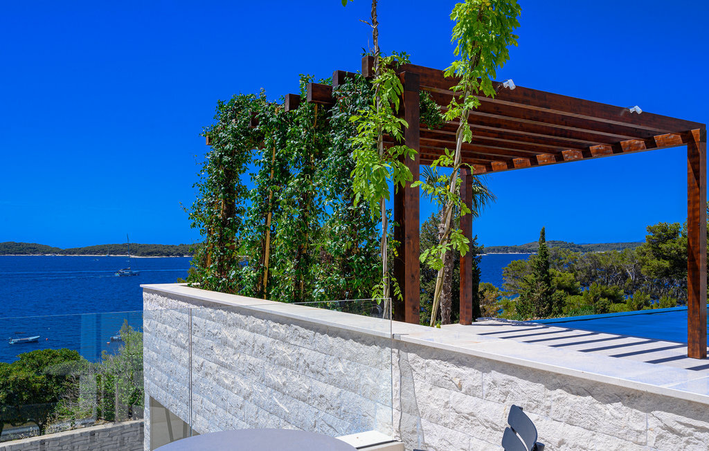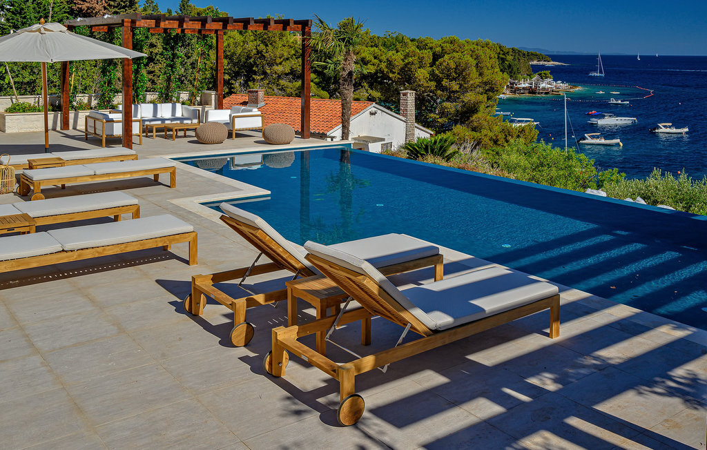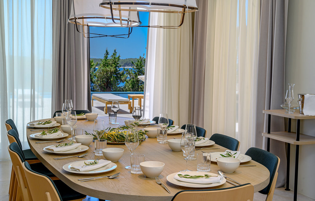 L'élégant espace extérieur, avec sa magnifique piscine à débordement et ses nombreuses terrasses meublées avec goût, vous invite à manger, à bavarder et à vous détendre. Profitez d'un bain de soleil relaxant dans une atmosphère paisible et plongez-vous dans votre lecture de vacances sur de confortables chaises longues. Écoutez le doux bruit des vagues en prenant un verre à l'ombre et terminez les douces soirées d'été en dégustant du vin, des bougies et des délices au barbecue. L'offre de la Villa Harmony 2 comprend également un service de conciergerie complet qui garantit que tous vos souhaits seront satisfaits dans les plus brefs délais.