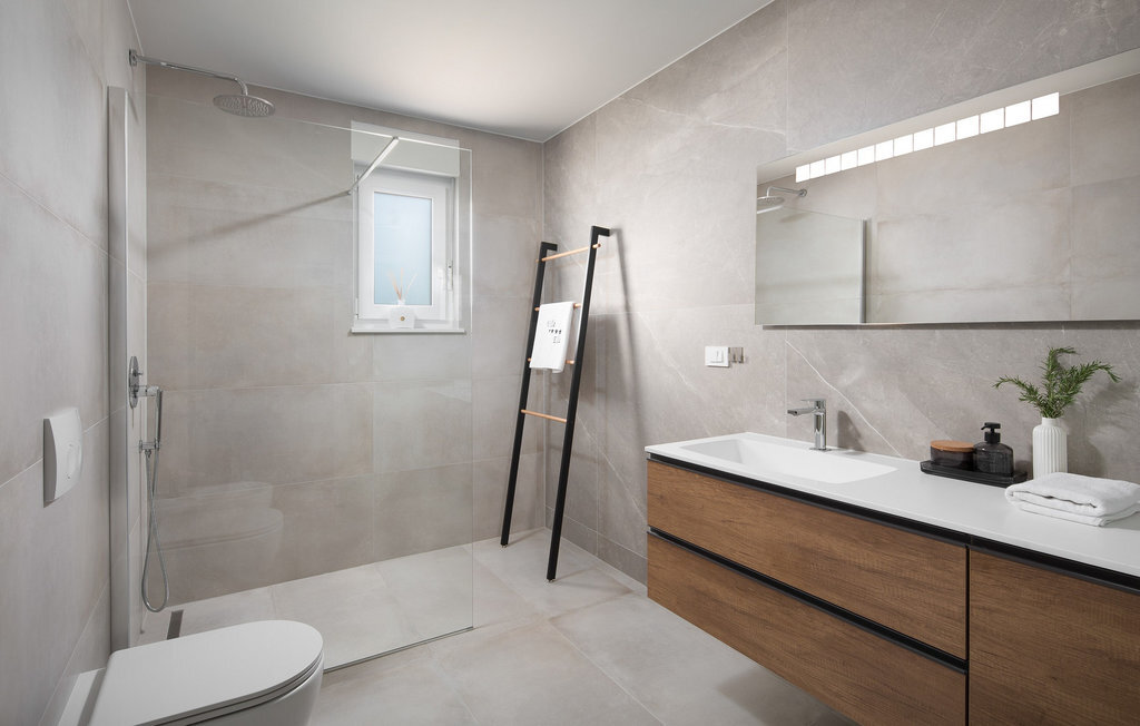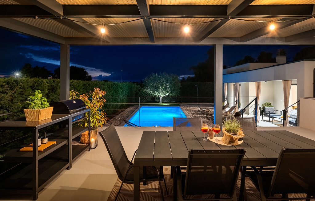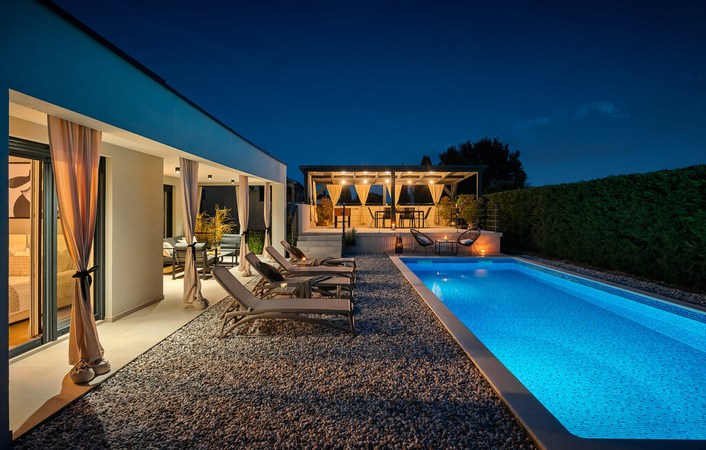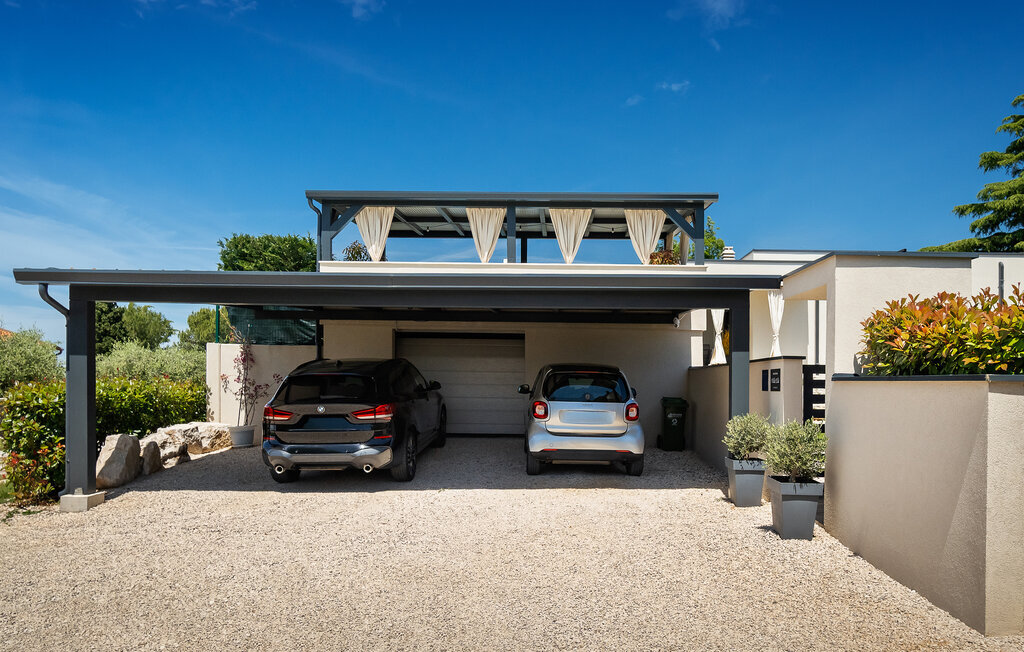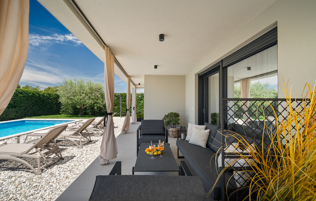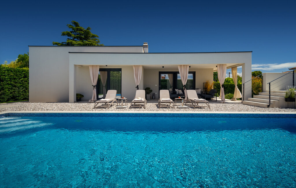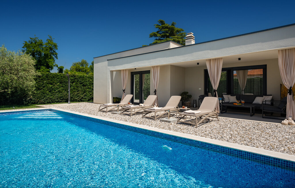 La villa de luxe Ella est située sur la côte ouest de l'Istrie, dans la petite ville de Vabriga, dont la beauté ne laisse personne indifférent. La ville de Vabriga elle-même ainsi que les localités environnantes offrent un contenu varié et intéressant qui ravira les jeunes et les moins jeunes générations. La Villa Ella est le bon choix pour tous ceux qui souhaitent passer des vacances luxueuses dans le calme et la tranquillité et en profiter comme des rois. Si vous aussi, vous avez envie de passer de telles vacances pour échapper au rythme effréné de la vie quotidienne, cette villa est faite pour vous ! La villa Ella a été construite en 2021 dans un style moderne et élégant et dispose de 129 m2 de surface habitable, tandis que la surface totale du terrain est de 798 m2. Elle peut accueillir un maximum de 5 personnes, idéalement 4. Elle se trouve à 2 km de la mer la plus proche et la plage de galets la plus proche est à 2,1 km et s'appelle Santa Marina. Près de la villa, il y a des restaurants, des cafés et des tavernes où vous pourrez déguster de délicieuses spécialités et quelques gouttes des meilleurs vins d'Istrie. Il y a deux chambres à coucher avec salle de bain privée avec douche, l'une avec un lit double (180 x 200) et l'autre avec deux lits simples (90 x 200). Comme lit supplémentaire, il y a un lit pliant (80 x 200) avec un matelas en mousse à mémoire de forme. Dans la cuisine moderne et équipée et la salle à manger avec une table pour 6 personnes, vous pouvez préparer de délicieux repas pour toute la famille. Dans le salon à côté de la salle à manger, vous pouvez vous détendre sur le canapé d'angle, il y a également une télévision et une table basse. Le salon donne directement sur la terrasse extérieure, qui vous coupera le souffle. Une piscine de 33 m² vous rafraîchit agréablement de jour comme de nuit, à côté de laquelle vous pouvez prendre un bain de soleil sur 5 chaises longues, ainsi qu'un canapé d'angle, deux sièges et une table où vous pouvez prendre votre café du matin. En outre, à côté de la piscine, il y a une autre terrasse couverte avec une table à manger pour 6 personnes et un barbecue au charbon de bois. Les autres équipements comprennent une machine à laver, un fer à repasser et, si nécessaire, vous pouvez utiliser un lit d'enfant et un distributeur de nourriture. La Villa Ella est entièrement clôturée, dispose d'un jardin magnifiquement aménagé et de nombreux endroits où les enfants peuvent jouer et se détendre. Dans la cour, deux places de parking privées sont à votre disposition. À Vabriga, il y a plusieurs plages magnifiques où vous pourrez profiter de tous les avantages de la mer Adriatique cristalline. Les plus petits seront certainement ravis par les nombreux contenus intéressants du parc aquatique Lanterna. Parmi les installations intéressantes et les activités locales, on peut citer les visites de vignobles, les tours d'huile d'olive ou la recherche de truffes. L'Istrie est également connue pour son offre gastronomique exceptionnelle, parmi laquelle il faut souligner les vins haut de gamme de renommée mondiale comme la malvasia, le teran ou le merlot. Le vin en Istrie est connu pour sa qualité supérieure en raison de sa situation géographique particulièrement favorable et de la qualité de son sol, connu sous le nom de "Quattro Terre". Cette caractéristique a permis d'obtenir une qualité exceptionnelle non seulement pour la viticulture, mais aussi pour l'huile d'olive extra vierge, qui est appréciée comme numéro un en Europe. La truffe est une autre délicatesse de grande qualité et de prix élevé, dont le goût spécifique et âpre ravira tous les vrais gourmets. Bienvenue dans un véritable petit paradis sur terre, bienvenue à la Villa Ella !