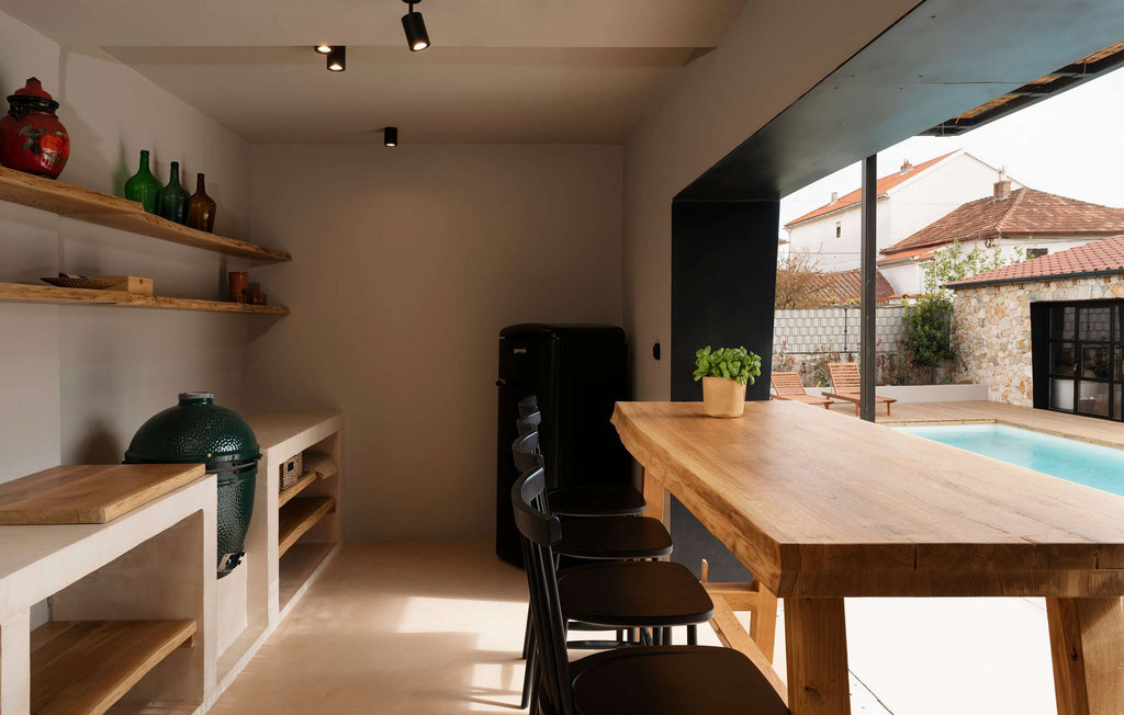 L'espace extérieur enchanteur vous invite à passer de longues heures sous le ciel bleu. Rafraîchissez-vous dans la magnifique piscine, détendez-vous sur de confortables chaises longues sur le grand pont soleil et défiez-vous sur la table de ping-pong. Préparez des plats méditerranéens dans la belle cuisine d'été et célébrez le temps passé ensemble lors de soirées barbecue pleines d'ambiance avec du vin et des bougies.