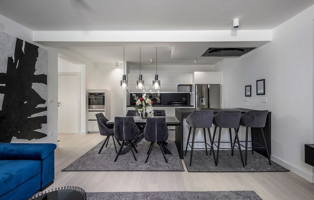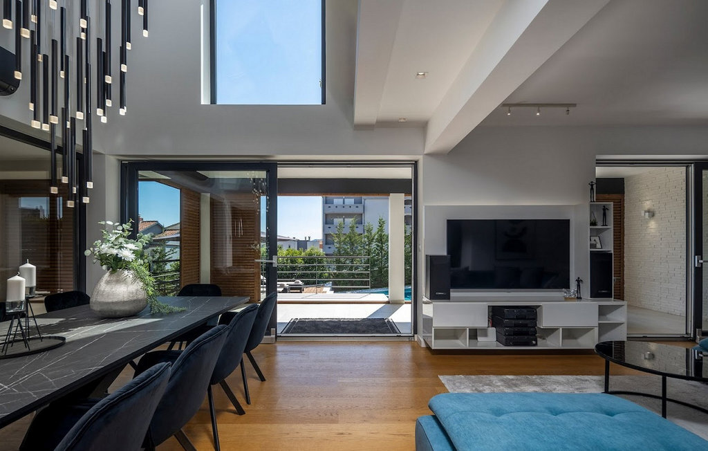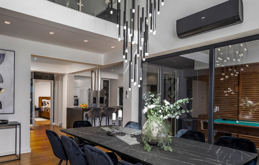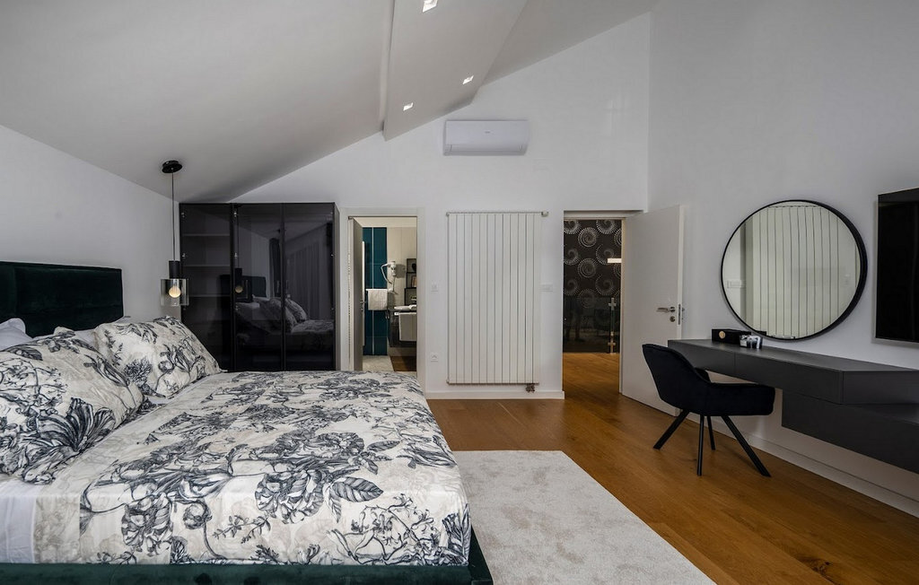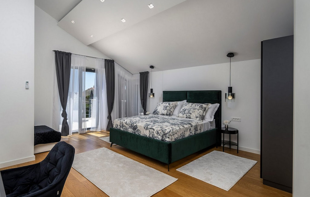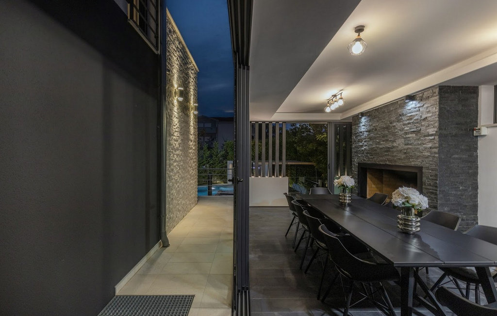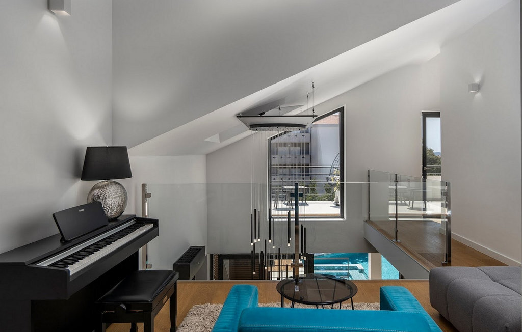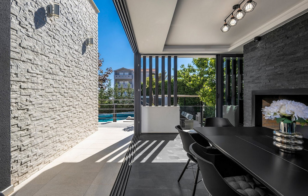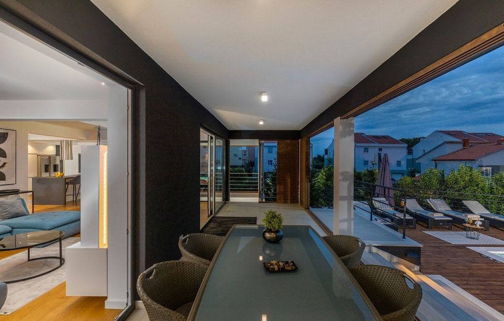 La Villa Bonavia vous accueille dans une ambiance élégante, où des matériaux fins, des lignes claires et des accents artistiques créent un univers de vie exclusif. Profitez d'heures de détente dans le salon spacieux et laissez votre regard se perdre dans les environs verdoyants à travers les grandes baies vitrées. Cuisinez ensemble dans la cuisine élégante et essayez de nouvelles recettes. Jouez de temps en temps au billard et portez ensuite un toast au vainqueur avec un verre de vin.