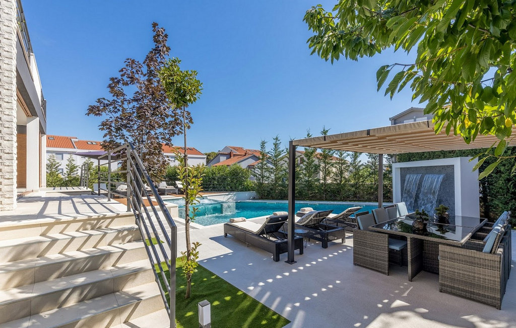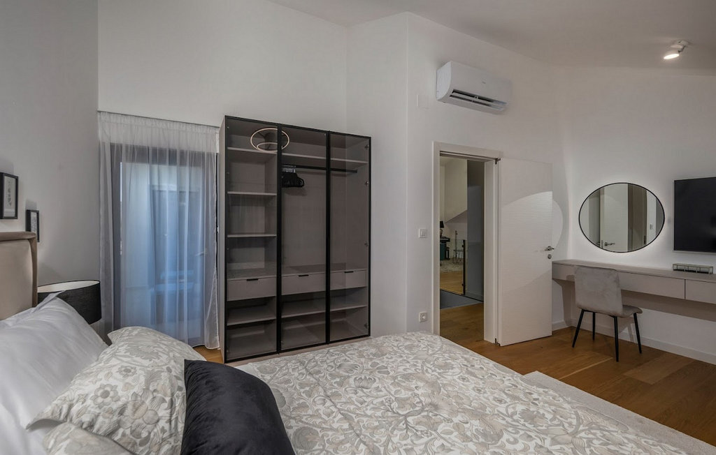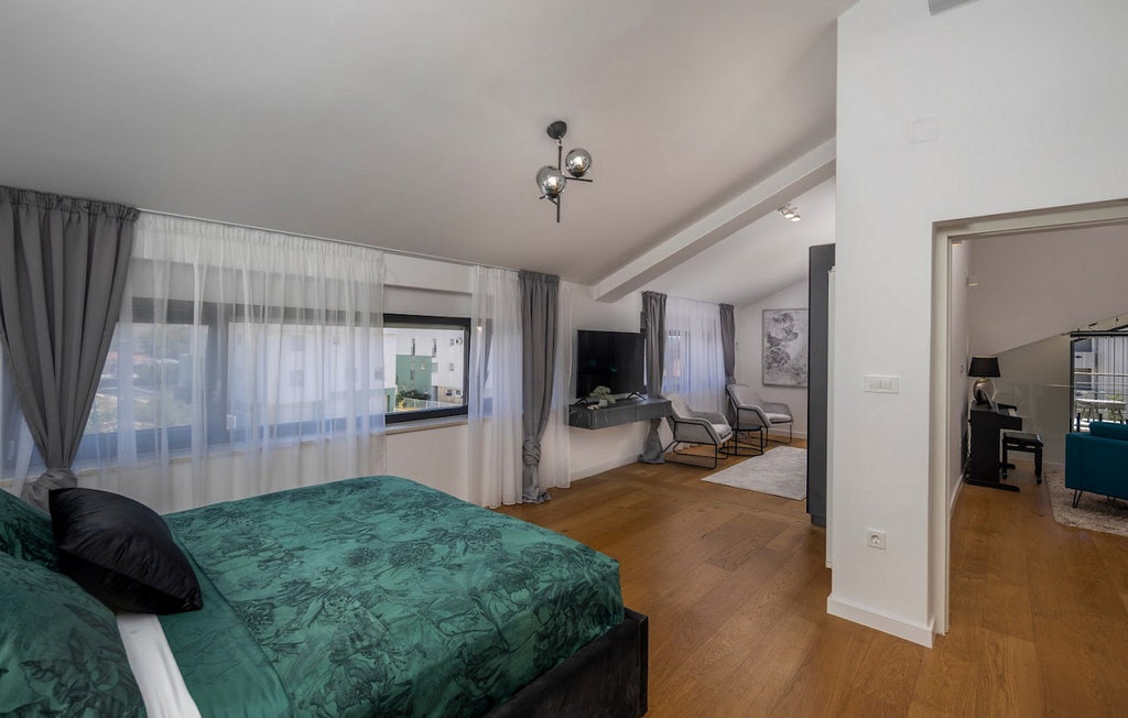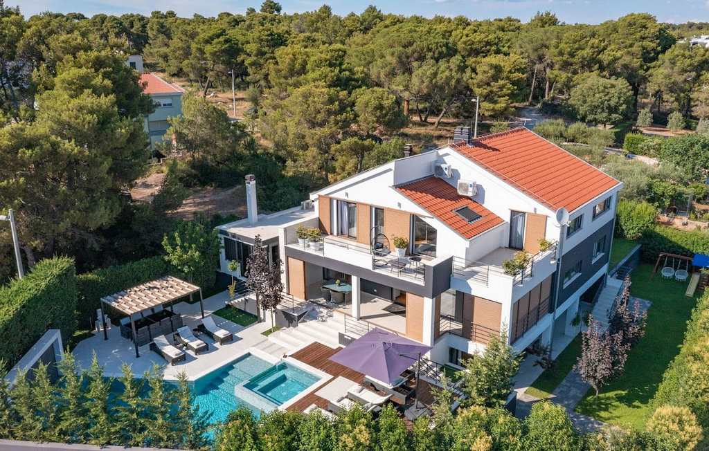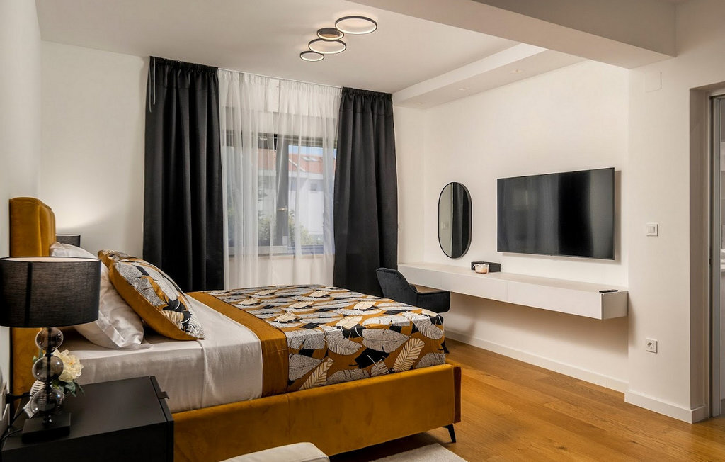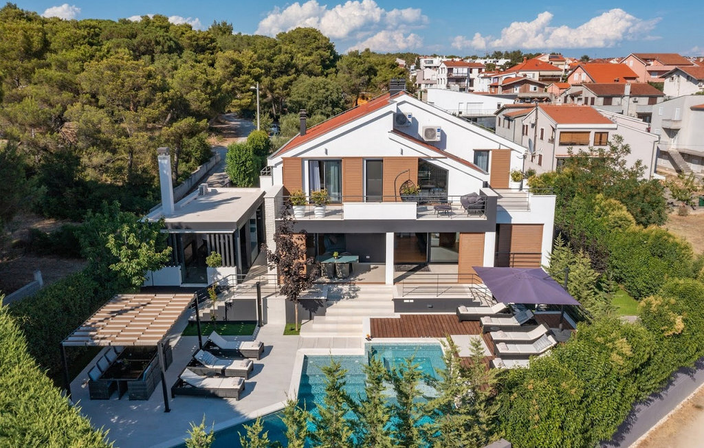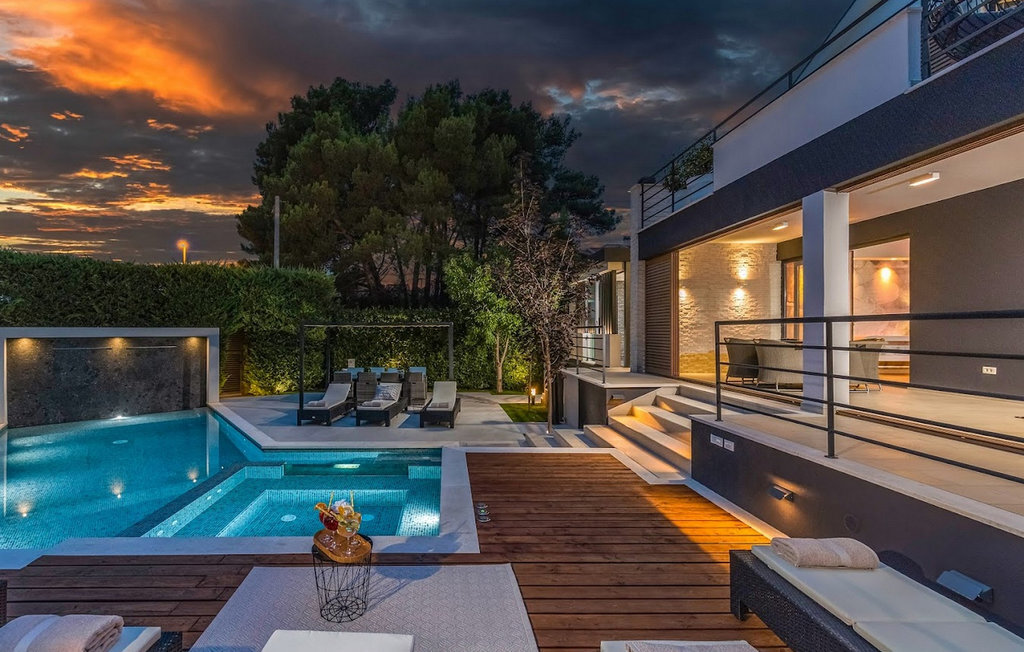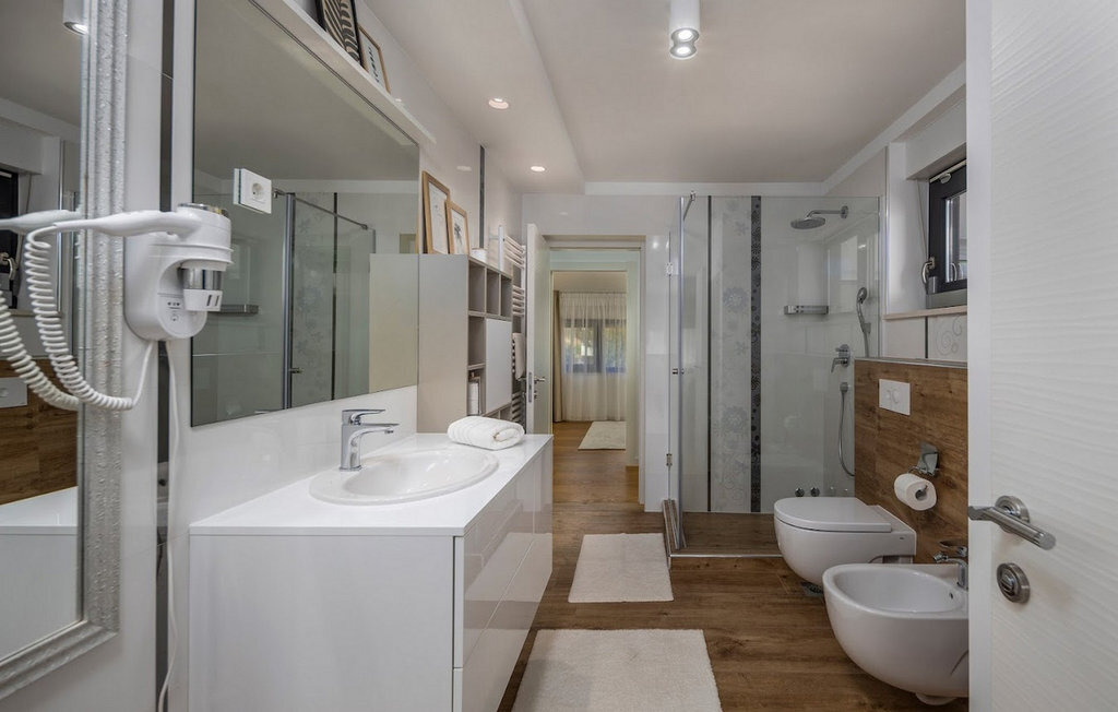 La Villa Bonavia vous accueille dans une ambiance élégante, où des matériaux fins, des lignes claires et des accents artistiques créent un univers de vie exclusif. Profitez d'heures de détente dans le salon spacieux et laissez votre regard se perdre dans les environs verdoyants à travers les grandes baies vitrées. Cuisinez ensemble dans la cuisine élégante et essayez de nouvelles recettes. Jouez de temps en temps au billard et portez ensuite un toast au vainqueur avec un verre de vin.