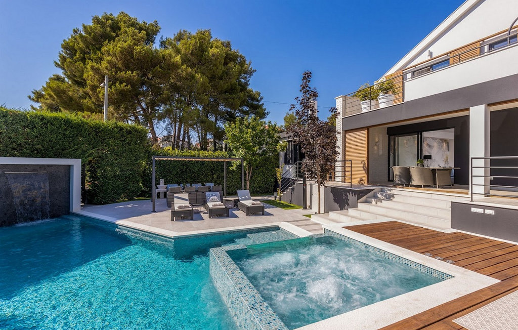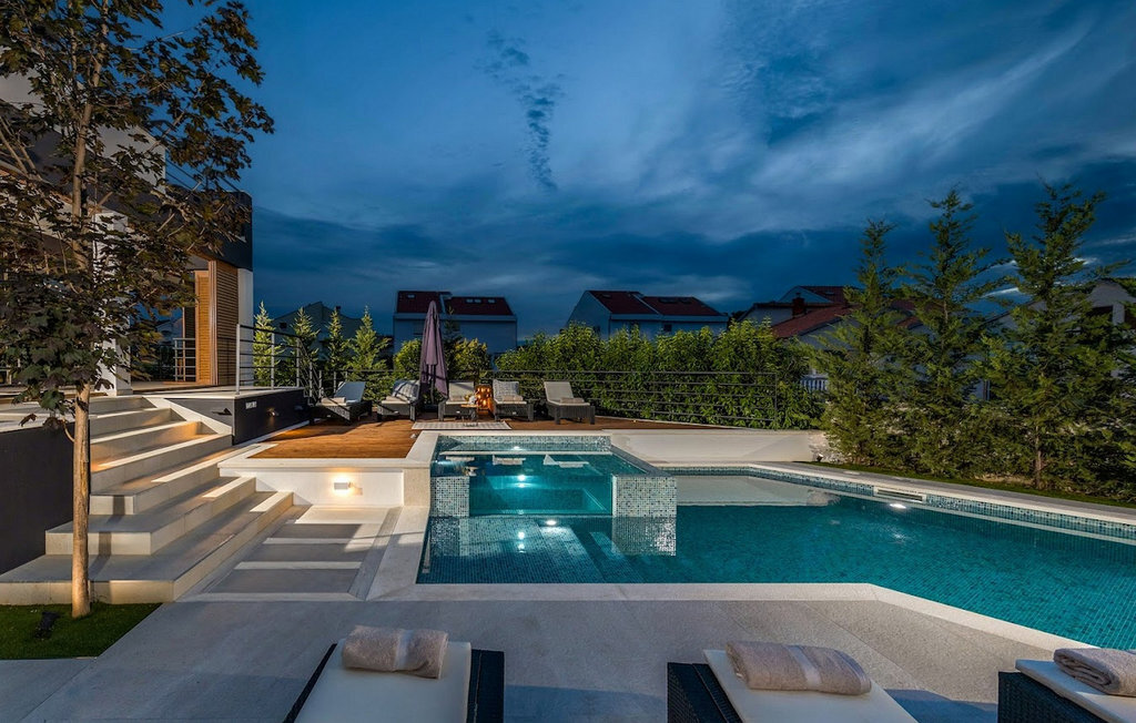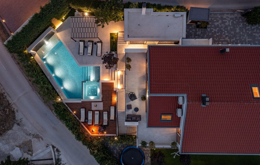 Le matin, profitez de l'air frais sur la terrasse et commencez la journée par un bain dans la piscine ou par un café relaxant à l'ombre de la pergola. Passez l'après-midi sur les chaises longues ou laissez-vous flotter dans le jacuzzi. Observez comment les enfants jouent dans le jardin ou se défoulent sur le trampoline. Enfin, terminez la soirée avec un éclairage d'ambiance et une vue sur le ciel chaud de l'été.