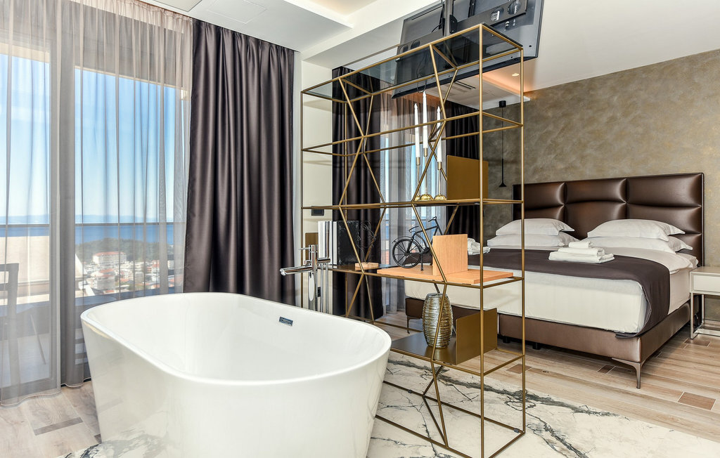La Riviera de Makarska séduit par sa beauté naturelle, ses sites historiques et sa diversité culturelle. Le Skywalk Biokovo, situé sur la chaîne de montagnes Biokovo, est un must absolu. La plate-forme de verre trône à plus de 1.000 mètres d'altitude et offre des vues à couper le souffle sur la mer et les petites îles au large de la côte. Tout aussi impressionnante est la pierre de Brela (Kamen Brela), un îlot rocheux devant la plage de Brela, si marquant qu'il est considéré comme le symbole de la Riviera. Que vous choisissiez d'explorer les montagnes, de vous détendre au bord de l'eau ou de parcourir les vieilles villes historiques comme Makarska elle-même, vous trouverez ici le calme, l'aventure et l'ambiance méditerranéenne.