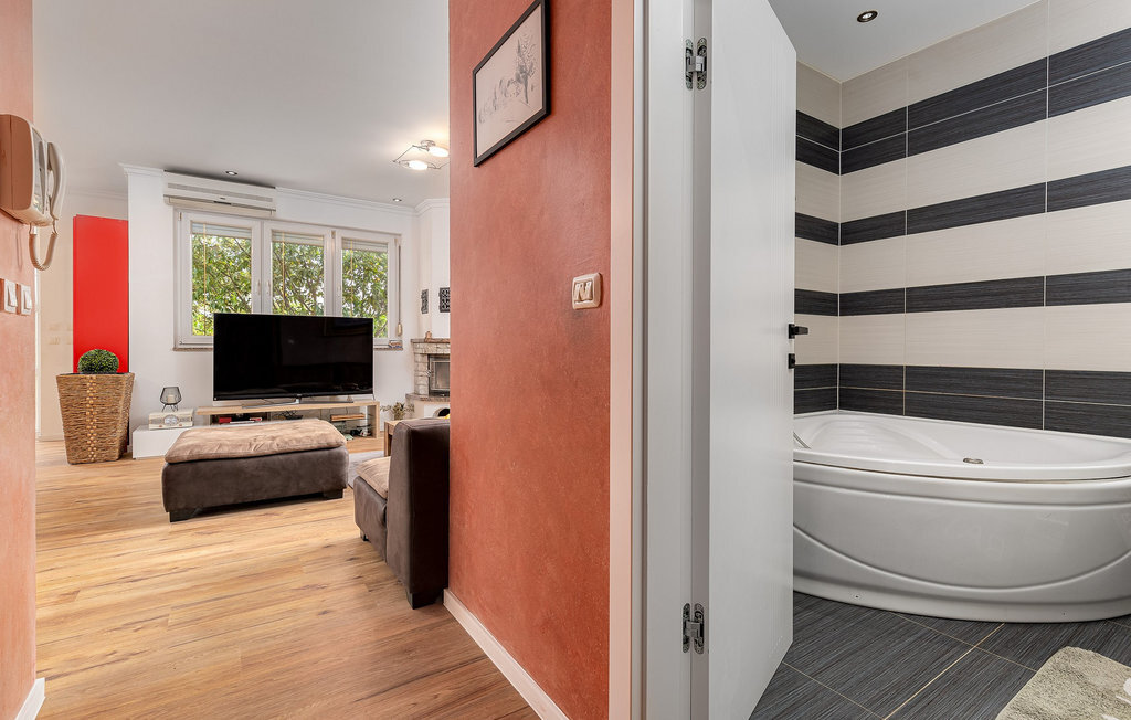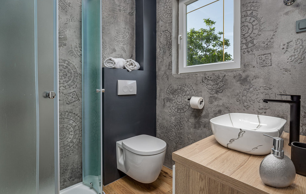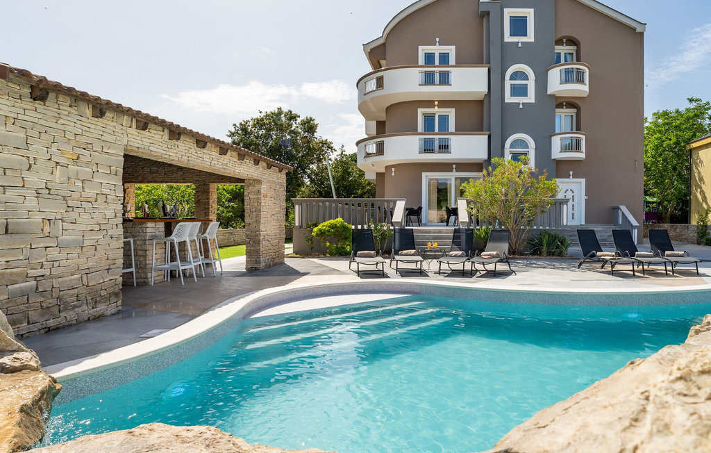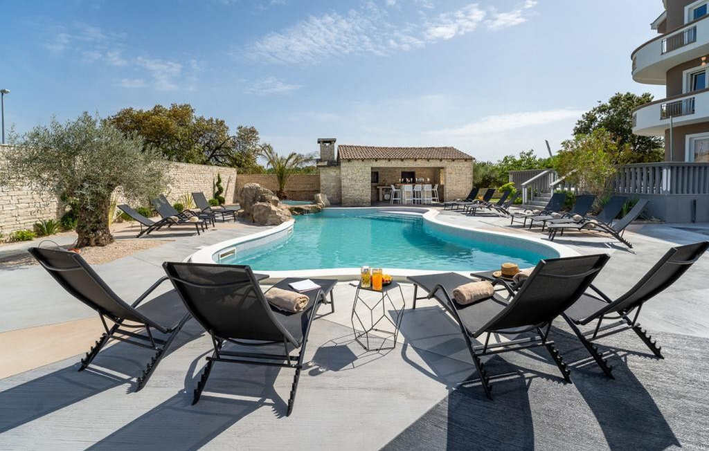 À l'extérieur, une grande piscine chauffée vous attend pour profiter des heures durant du soleil croate, tandis que les enfants s'amusent sur le trampoline ou dans le jardin clôturé. Préparez de délicieux accompagnements pour un barbecue dans la cuisine d'été et laissez-vous imprégner par l'atmosphère authentique de l'agréable taverne.