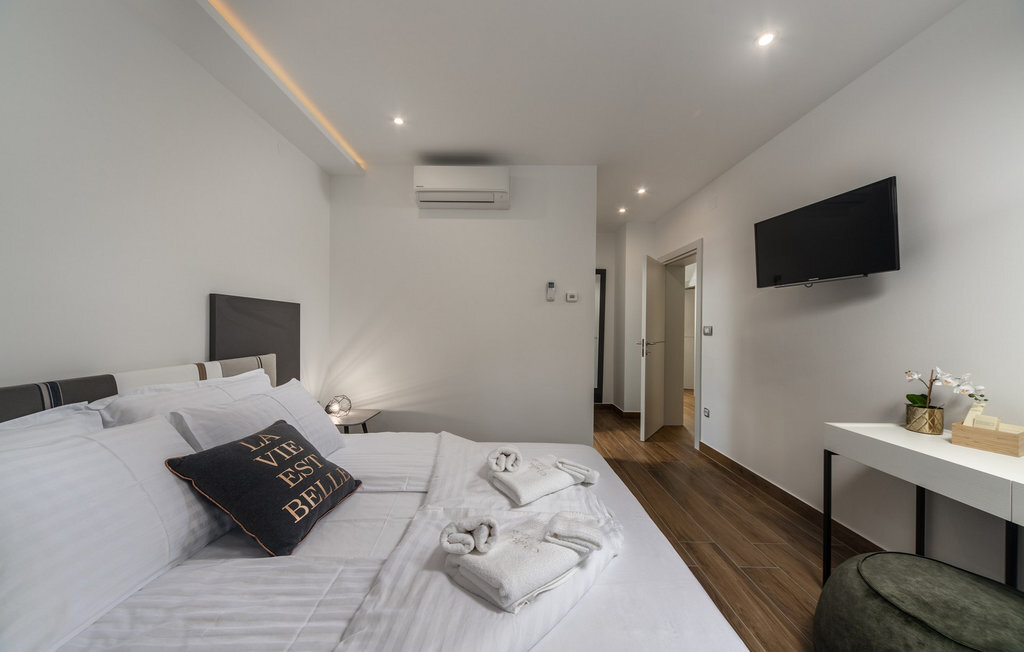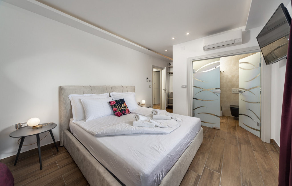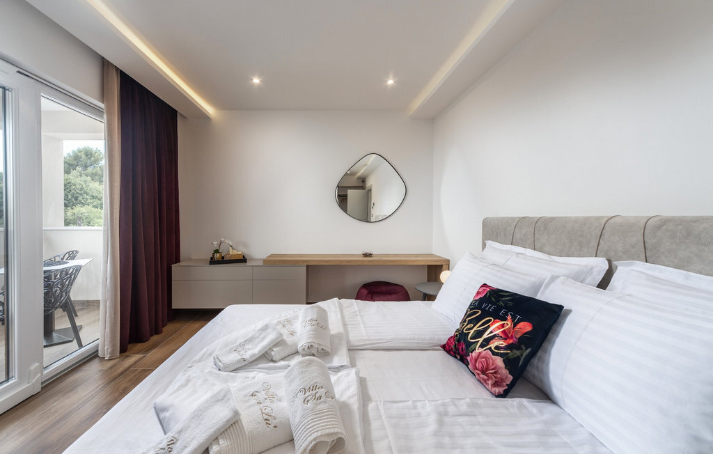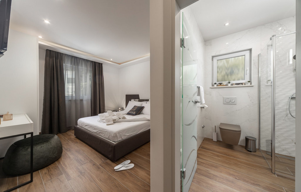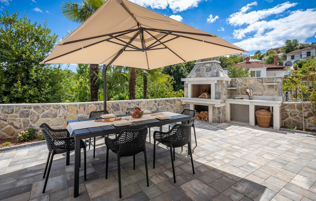 La Villa Salu est située dans la petite ville de Pobri, à seulement deux kilomètres d'Opatija, à la frontière entre le Kvarner et la partie montagneuse de la Croatie. Découvrez le charme de Volosko, bronzez sous les rayons relaxants du soleil et baignez-vous dans les eaux cristallines de la magnifique plage de galets et de béton de ?rnikovica, qui vous offre tout ce dont vous avez besoin pour des vacances parfaites. À proximité de la villa se trouve également la plage du Lido, qui a reçu le Pavillon bleu pour la richesse de son offre et la propreté de sa mer. Au premier étage de la magnifique villa moderne Salu se trouvent trois chambres modernes et climatisées avec un lit double et une salle de bain luxueuse avec douche. Il y a également une salle de fitness climatisée avec des appareils de niveau qui vous aideront à maintenir votre corps au top de sa forme en été. Au rez-de-chaussée, vous trouverez une cuisine fonctionnelle équipée de tous les appareils nécessaires pour cuisiner rapidement et facilement. Vous pouvez également préparer vos spécialités sur le barbecue au charbon de bois à l'extérieur et les servir dans la salle à manger extérieure avec 6 places assises ou dans la salle à manger intérieure avec 8 places assises. Au rez-de-chaussée, il y a également un salon climatisé avec une cheminée électrique et une salle de bain séparée. Devant la villa, il y a un joli coin avec une piscine et 6 chaises longues confortables où vous pourrez profiter du soleil. Piscine chauffée du 15.04. - 01.06. et du 01.09. - 01.10. (selon le temps). Les plus jeunes s'amuseront certainement sur l'aire de jeux en face de la villa ou en faisant du vélo (deux vélos disponibles). L'intimité est assurée par un mur de pierre et une clôture en fer forgé qui entourent la villa. La Villa Salu vous offrira une merveilleuse atmosphère méditerranéenne qui restera certainement gravée dans votre mémoire ! La Villa Salu dispose également d'un sauna finlandais, dont l'utilisation apporte de nombreux effets bénéfiques ! Les fans de vacances actives ne devraient pas manquer l'occasion d'essayer les pistes cyclables et les sentiers de randonnée qui les mèneront à travers des forêts centenaires. Une promenade sur la Riviera d'Opatija vous transportera dans une époque romantique grâce à la magnifique architecture des villas, aux parcs luxueux où poussent des herbes du monde entier et à la richesse de l'offre gastronomique. Le centre de la Riviera d'Opatija est Opatija, mais il y a aussi des endroits attrayants comme Volosko et Ika, I?i?i et Lovran, Medveja et Mo??eni?ka Draga. * La maison privée du propriétaire se trouve juste à côté de la villa. Vous y trouverez également le salon de beauté du propriétaire, qui propose des massages, des pédicures, différents soins du visage et des manucures.