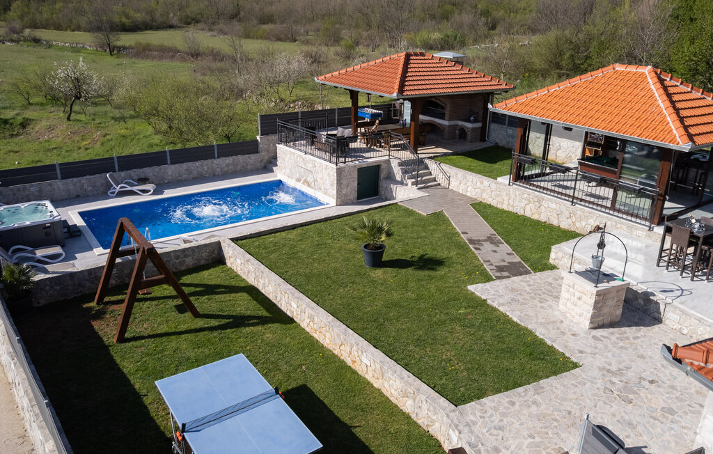 Non loin de Split et nichée dans un paysage pittoresque, la charmante villa Ivand vous accueille. L'intérieur harmonieusement aménagé et doté d'un équipement de qualité vous séduira par ses coins de retraite confortables et vous offrira en même temps de la place pour vous réunir en toute convivialité. Concoctez de délicieux plats dans la cuisine moderne, célébrez le temps passé ensemble lors de repas joyeux dans l'une des deux salles à manger et gardez la forme sur le tapis roulant ou mesurez-vous au billard. Lors des soirées plus fraîches, la cheminée apporte un confort supplémentaire, tandis que vous terminez une longue journée avec un verre de vin ou un jeu de société.