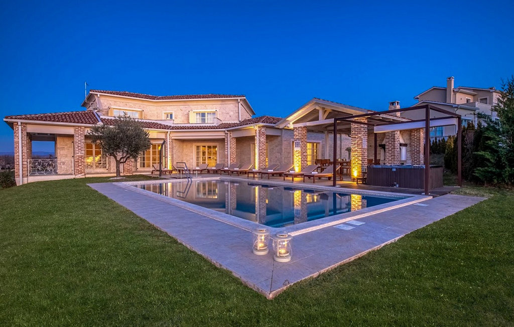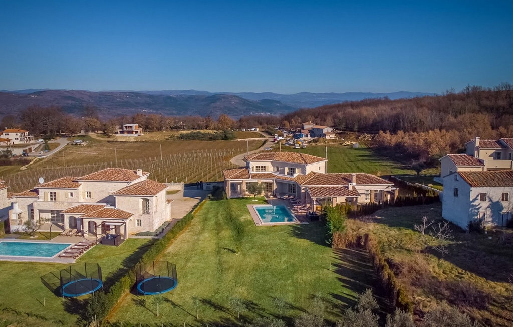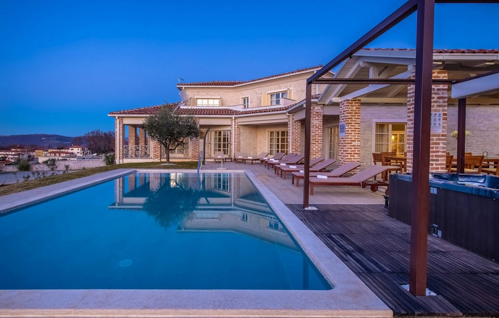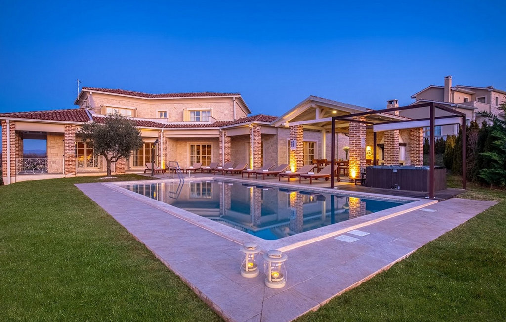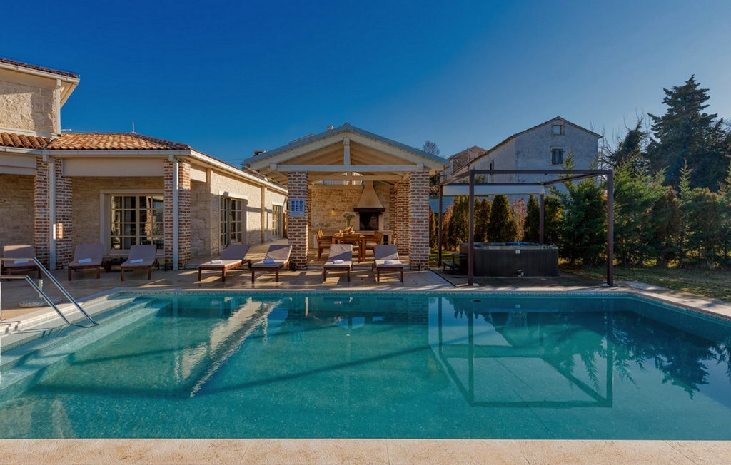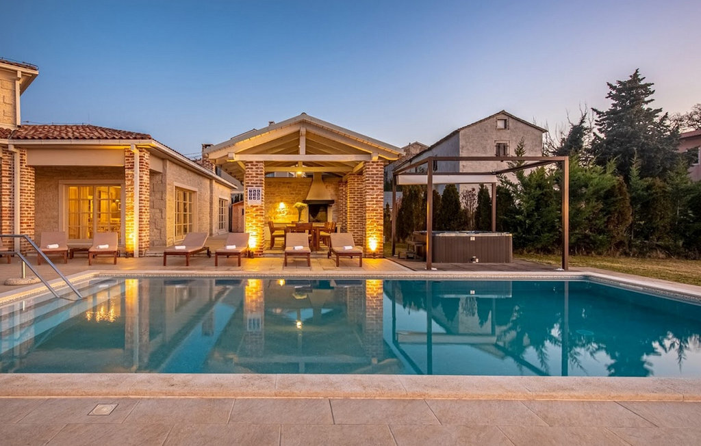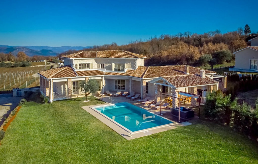 La magnifique Villa Star est située dans le petit village pittoresque de Bajkini en Istrie, qui, en raison de sa situation géographique, attire aussi bien les amoureux de la nature que ceux qui apprécient les vins de qualité et la délicieuse nourriture. Avec son extérieur et son intérieur élégants, Villa Star est un choix idéal pour ceux d'entre vous qui souhaitent profiter de vacances dans une intimité absolue, entourés d'une nature magnifique. Villa Star dispose de 4 chambres spacieuses avec lits doubles ainsi que de 4 salles de bains magnifiquement aménagées et d'un WC séparé. Une charmante cuisine entièrement équipée est reliée à une belle salle à manger où tous les invités peuvent se réunir. Le salon spacieux s'ouvre sur une belle terrasse en pierre qui offre une vue fantastique sur les vignobles voisins. Dans le jardin magnifiquement aménagé de la Villa Star se trouve une grande piscine (66 m²) dans laquelle vous pouvez prendre un bain rafraîchissant chaque jour, tandis qu'un magnifique jacuzzi extérieur est à votre disposition pour votre détente. Le signal WLAN gratuit est disponible dans chaque coin de l'intérieur et de l'extérieur de cette villa entièrement climatisée. Avec une surface habitable de 480 m², la Villa Star est située sur un terrain de 1400 m² et offre absolument tout à ses hôtes : du luxe, des paysages magnifiques, du divertissement et finalement ? des vacances bien méritées. À quelques minutes à pied de la villa se trouve le célèbre vignoble Arman et, à proximité immédiate, quelques-uns des meilleurs domaines viticoles que tout véritable amateur de vin se doit de visiter. Vous trouverez des restaurants, des marchés et des bars de qualité à Vi?inada, à seulement 3 km de la villa. Les grandes villes de Pore ? et Novigrad sont à 10 minutes en voiture, tandis qu'à 5 minutes en voiture de la villa se trouve une magnifique ville médiévale appelée Motovun, connue pour son festival du film qui a lieu chaque année en juillet. Passez vos vacances à la Villa Star, laissez-vous dorloter et découvrez la riche offre gastronomique et touristique de cette magnifique région d'Istrie. Veuillez noter que ce logement n'accepte les groupes de jeunes ou les enterrements de vie de garçon que contre le paiement d'une caution remboursable. Un groupe de jeunes dans ce logement est composé de personnes de moins de 30 ans. Si vous êtes un groupe de jeunes ou un enterrement de vie de garçon, il vous sera demandé de verser la caution à votre arrivée. Tout montant nécessaire à la réparation des dommages causés au logement pendant votre séjour sera déduit de la caution et vous sera ensuite remboursé.