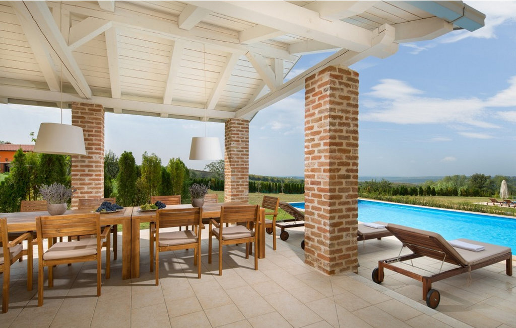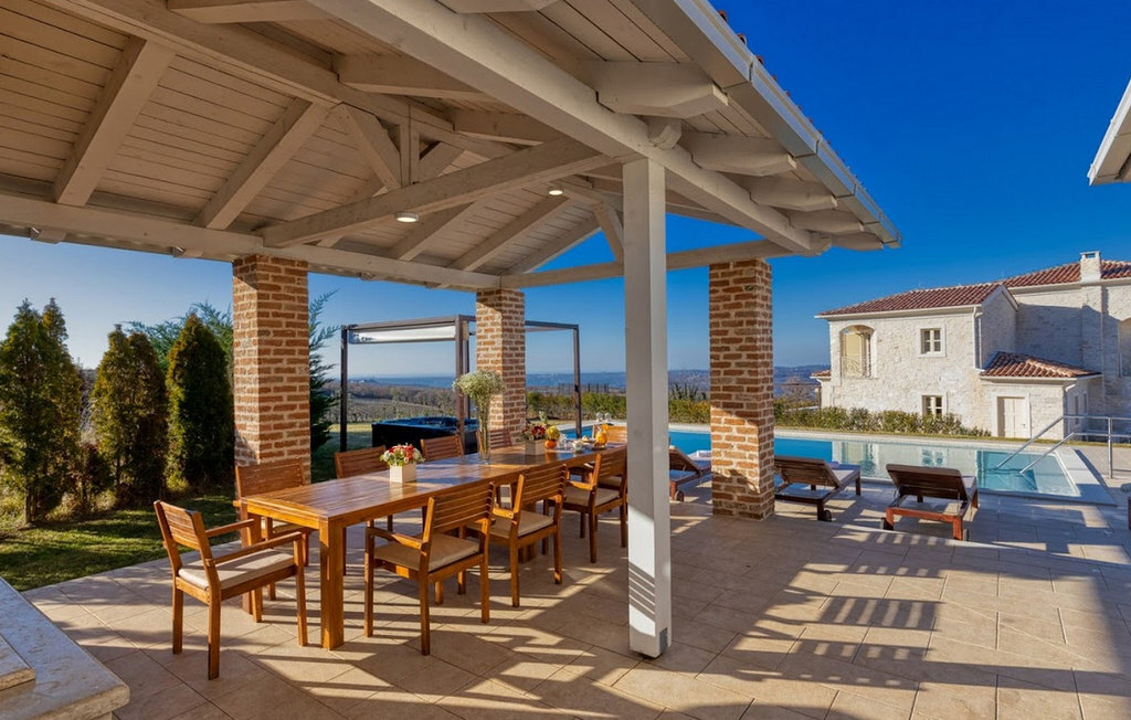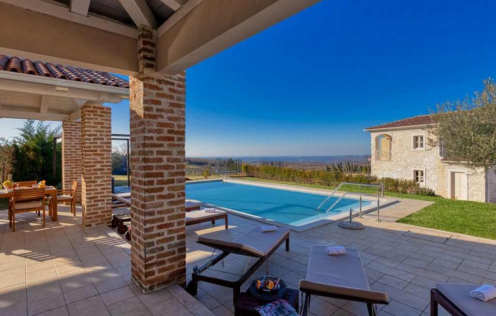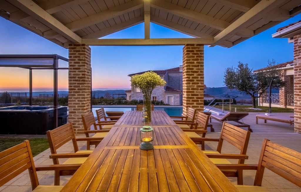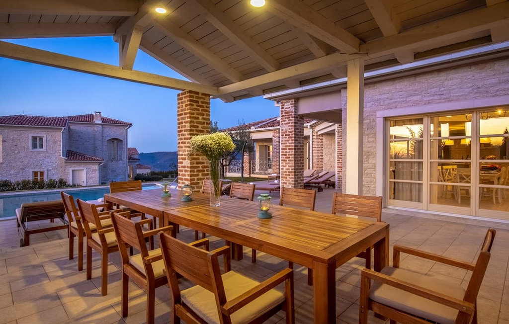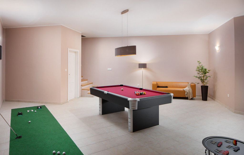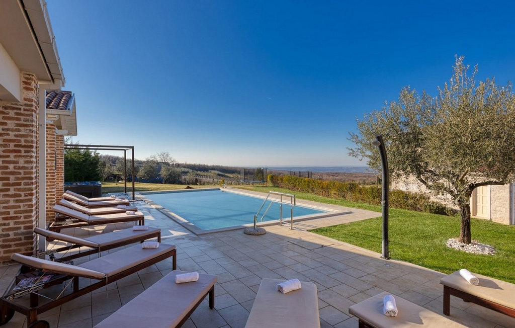 La magnifique Villa Star est située dans le petit village pittoresque de Bajkini en Istrie, qui, en raison de sa situation géographique, attire aussi bien les amoureux de la nature que ceux qui apprécient les vins de qualité et la délicieuse nourriture. Avec son extérieur et son intérieur élégants, Villa Star est un choix idéal pour ceux d'entre vous qui souhaitent profiter de vacances dans une intimité absolue, entourés d'une nature magnifique. Villa Star dispose de 4 chambres spacieuses avec lits doubles ainsi que de 4 salles de bains magnifiquement aménagées et d'un WC séparé. Une charmante cuisine entièrement équipée est reliée à une belle salle à manger où tous les invités peuvent se réunir. Le salon spacieux s'ouvre sur une belle terrasse en pierre qui offre une vue fantastique sur les vignobles voisins. Dans le jardin magnifiquement aménagé de la Villa Star se trouve une grande piscine (66 m²) dans laquelle vous pouvez prendre un bain rafraîchissant chaque jour, tandis qu'un magnifique jacuzzi extérieur est à votre disposition pour votre détente. Le signal WLAN gratuit est disponible dans chaque coin de l'intérieur et de l'extérieur de cette villa entièrement climatisée. Avec une surface habitable de 480 m², la Villa Star est située sur un terrain de 1400 m² et offre absolument tout à ses hôtes : du luxe, des paysages magnifiques, du divertissement et finalement ? des vacances bien méritées. À quelques minutes à pied de la villa se trouve le célèbre vignoble Arman et, à proximité immédiate, quelques-uns des meilleurs domaines viticoles que tout véritable amateur de vin se doit de visiter. Vous trouverez des restaurants, des marchés et des bars de qualité à Vi?inada, à seulement 3 km de la villa. Les grandes villes de Pore ? et Novigrad sont à 10 minutes en voiture, tandis qu'à 5 minutes en voiture de la villa se trouve une magnifique ville médiévale appelée Motovun, connue pour son festival du film qui a lieu chaque année en juillet. Passez vos vacances à la Villa Star, laissez-vous dorloter et découvrez la riche offre gastronomique et touristique de cette magnifique région d'Istrie. Veuillez noter que ce logement n'accepte les groupes de jeunes ou les enterrements de vie de garçon que contre le paiement d'une caution remboursable. Un groupe de jeunes dans ce logement est composé de personnes de moins de 30 ans. Si vous êtes un groupe de jeunes ou un enterrement de vie de garçon, il vous sera demandé de verser la caution à votre arrivée. Tout montant nécessaire à la réparation des dommages causés au logement pendant votre séjour sera déduit de la caution et vous sera ensuite remboursé.