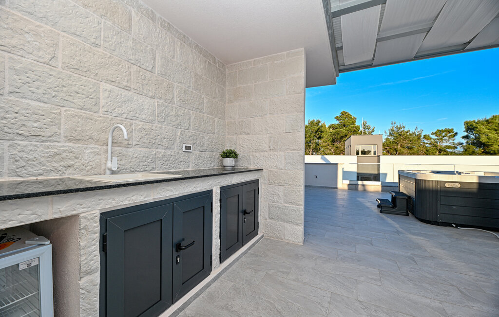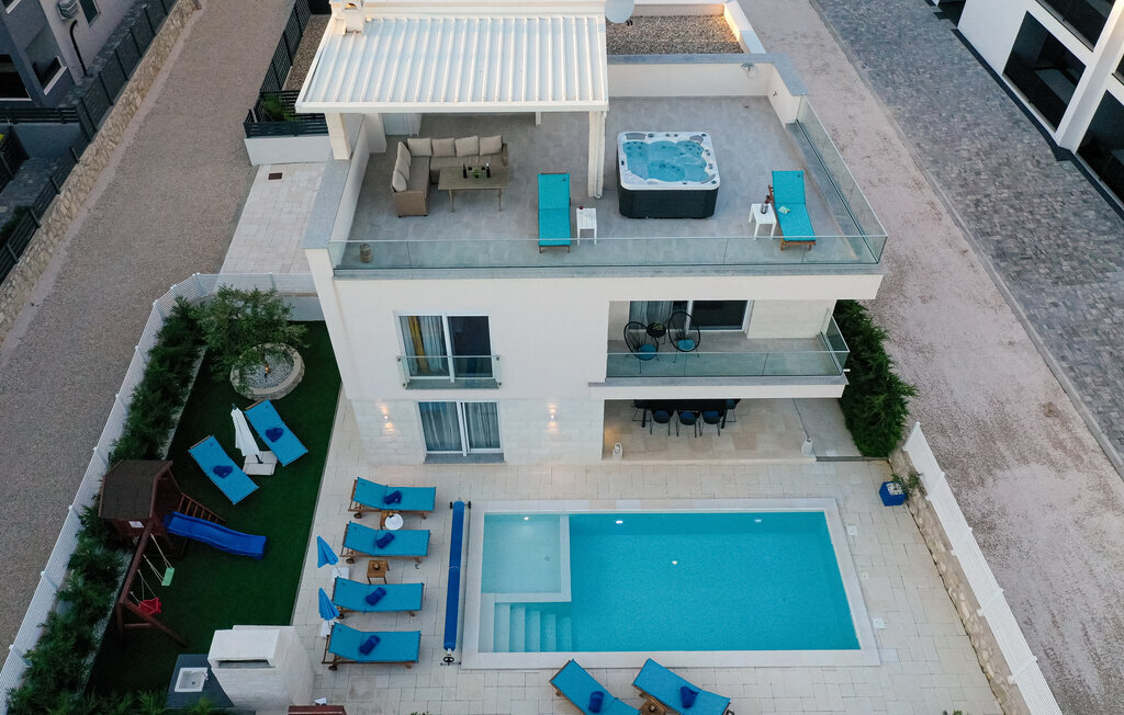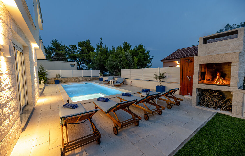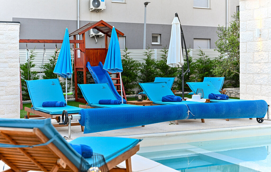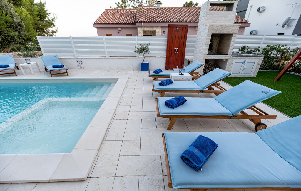 Rafraîchissez-vous dans la piscine avec hydromassage, qui dispose également d'une zone pour enfants pour les plus jeunes. Détendez-vous sur les chaises longues avec une boisson fraîche ou plongez-vous dans votre lecture de vacances. Utilisez le barbecue extérieur et essayez de préparer des plats traditionnels dalmates en plein air. Passez des moments conviviaux sur la terrasse et profitez de l'ambiance méditerranéenne de cet espace extérieur accueillant.