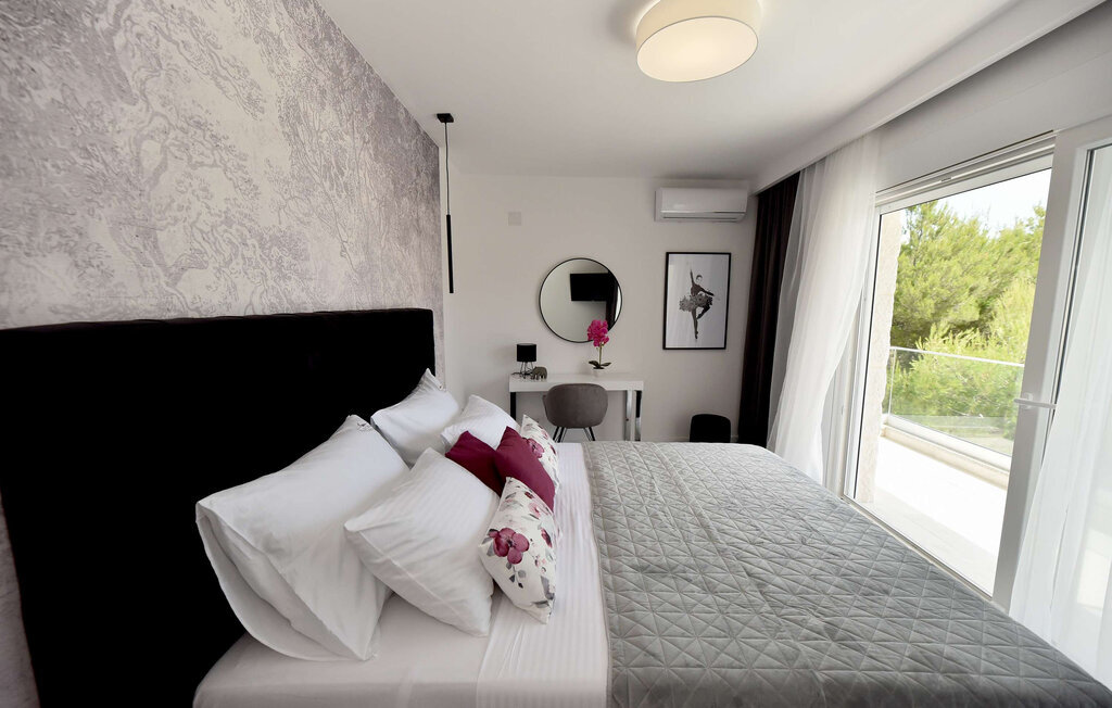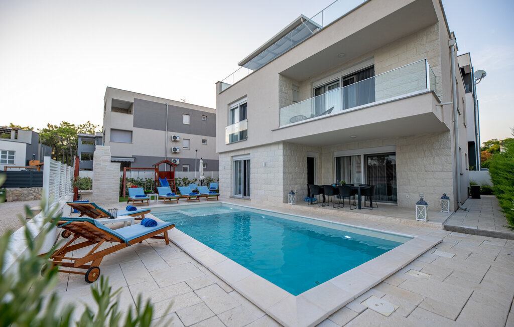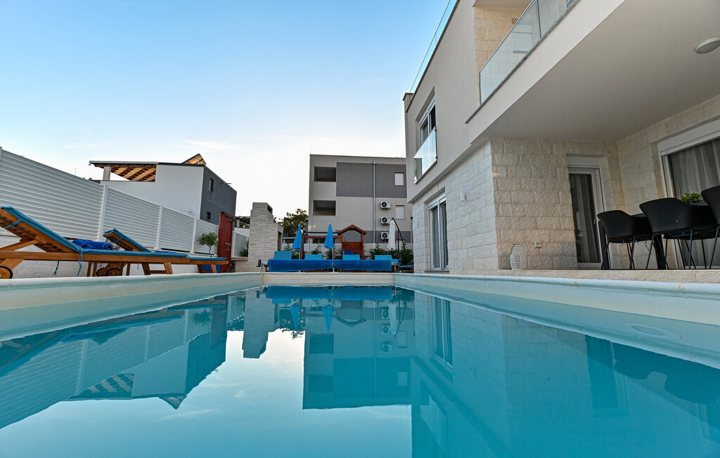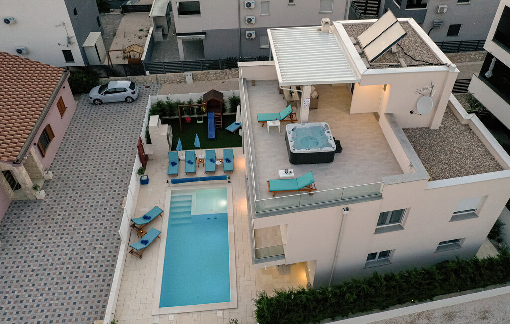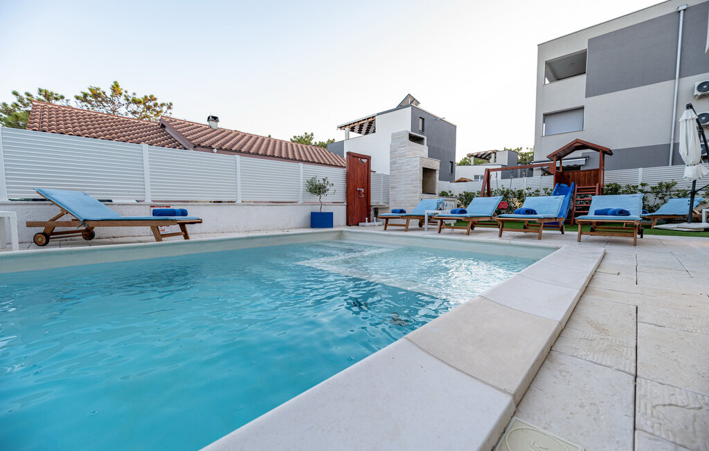 Rafraîchissez-vous dans la piscine avec hydromassage, qui dispose également d'une zone pour enfants pour les plus jeunes. Détendez-vous sur les chaises longues avec une boisson fraîche ou plongez-vous dans votre lecture de vacances. Utilisez le barbecue extérieur et essayez de préparer des plats traditionnels dalmates en plein air. Passez des moments conviviaux sur la terrasse et profitez de l'ambiance méditerranéenne de cet espace extérieur accueillant.