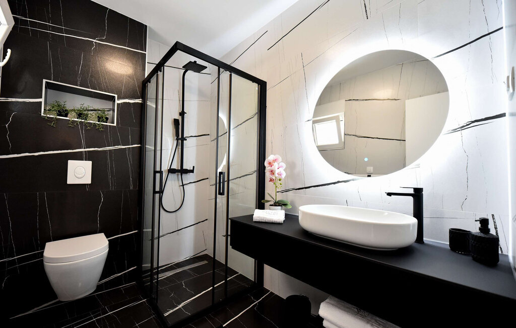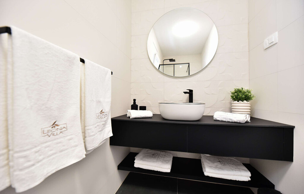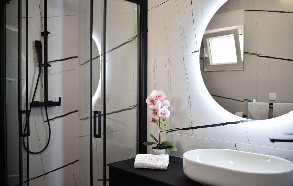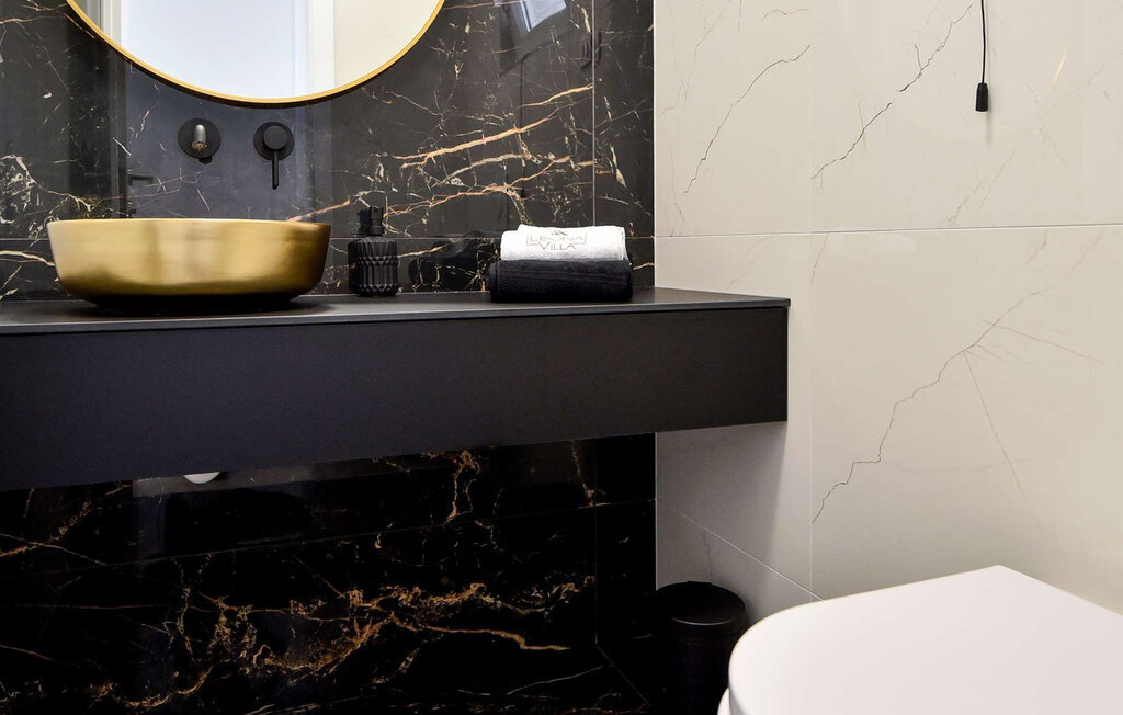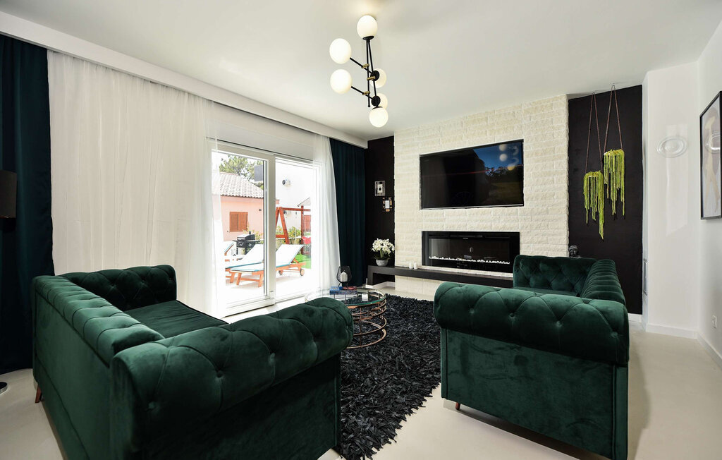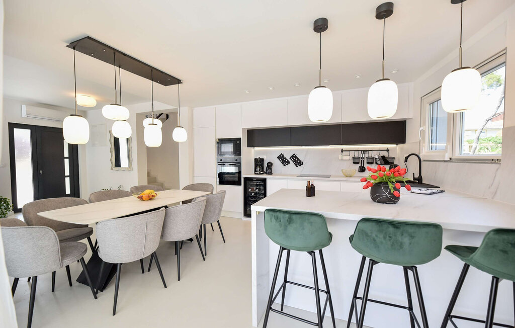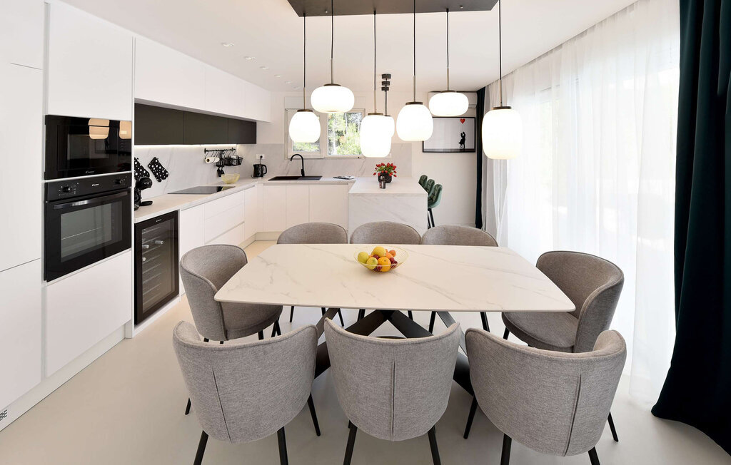 La Villa Leona Vir est le lieu de retraite idéal pour une pause reposante du quotidien. Elle vous accueille dans une atmosphère moderne et lumineuse, où les couleurs élégantes et les lignes épurées créent une atmosphère à la fois élégante et agréable. Profitez d'heures de détente sur les canapés confortables tout en écoutant votre musique préférée. Passez un après-midi joyeux à jouer aux cartes autour de la grande table à manger, cuisinez ensemble dans la cuisine ouverte et savourez ensuite un délicieux repas en toute convivialité.