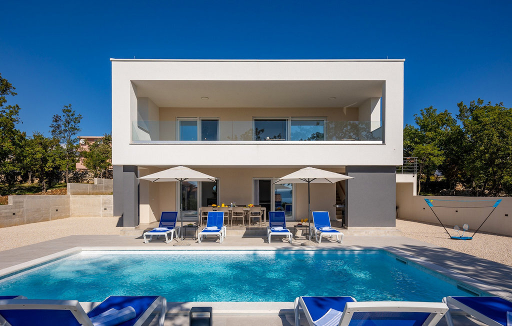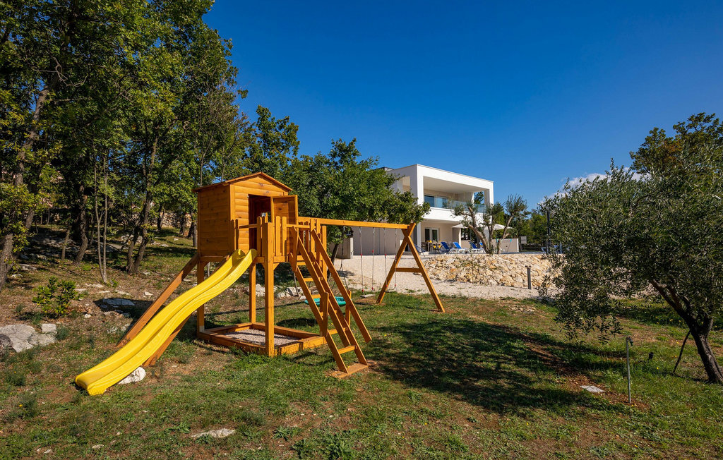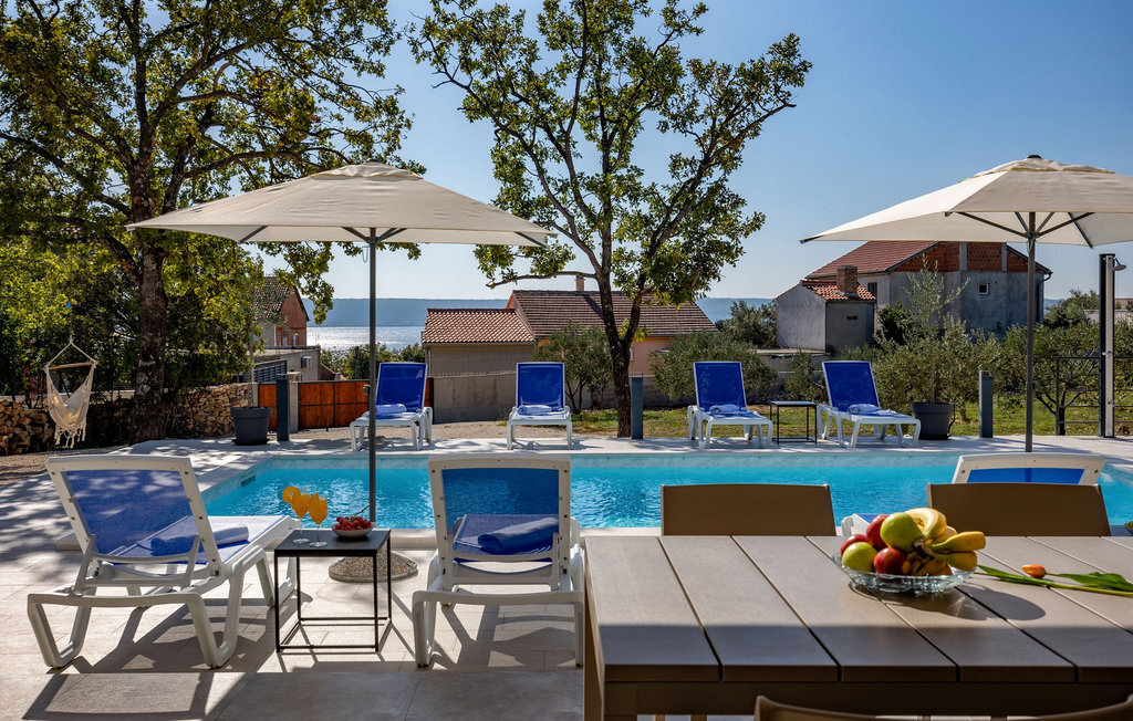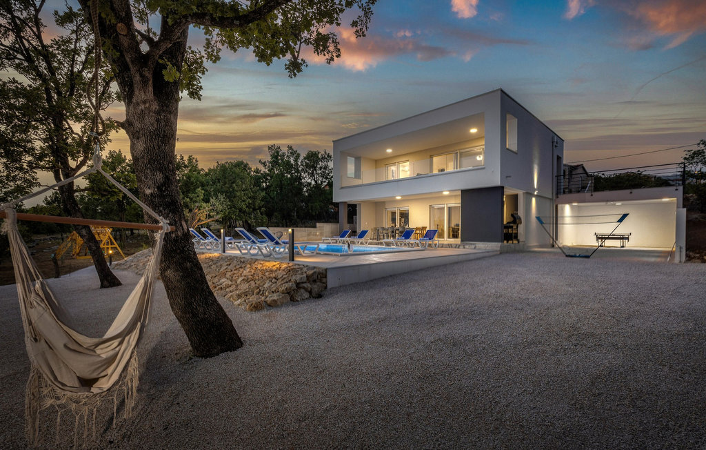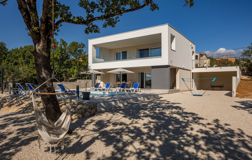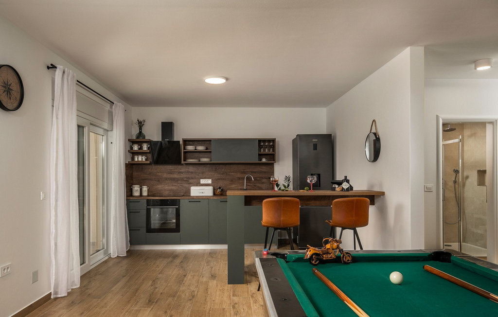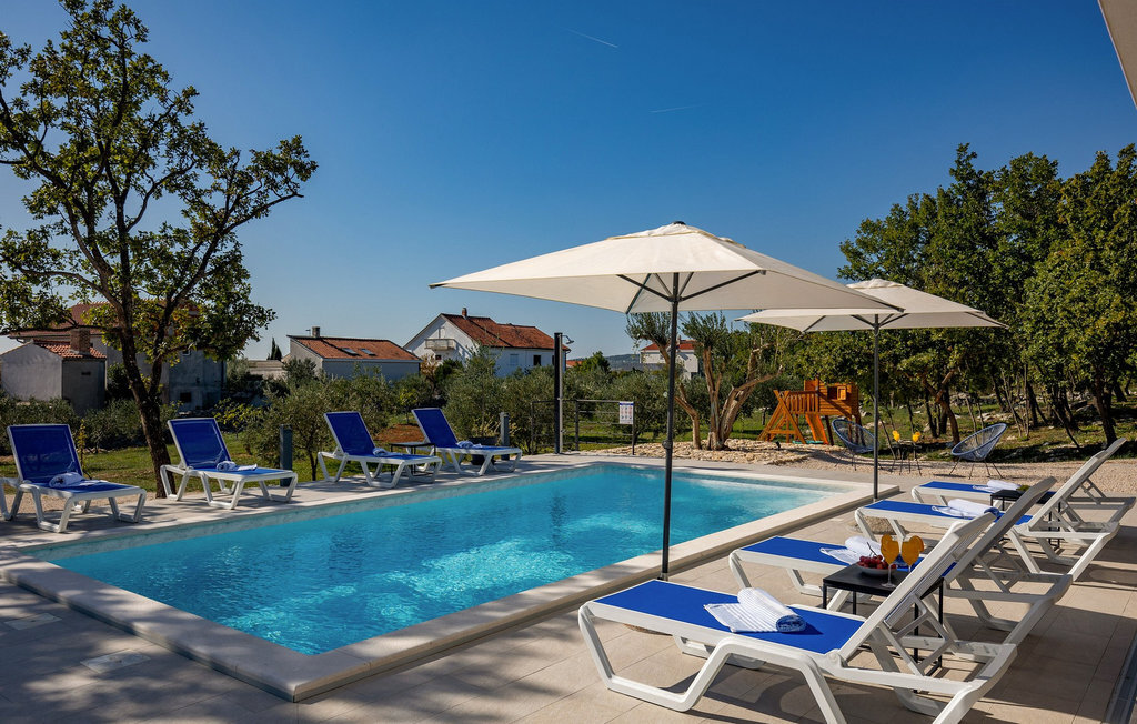 La magnifique villa Deep Green est située à Maslenica, à 28 km de la ville historique de Zadar. Cette villa confortable se trouve à 600 mètres de la côte et surplombe la mer. Elle vous offre les vacances parfaites de vos rêves, que vous veniez en famille ou avec un groupe de vos meilleurs amis. Échappez à l'agitation de la vie quotidienne et offrez-vous des vacances paisibles et heureuses ! La villa Deep Green a été construite dans un style architectural contemporain et offre à ses hôtes 260 m2 de surface habitable, tandis que la superficie totale du terrain est de 10.000 m2. La ferme dispose d'une oliveraie aménagée, entourée d'une forêt de chênes et d'une prairie. Comme elle se trouve à proximité d'une mer propre et claire, vous avez la possibilité de plonger dans les profondeurs de la mer et de prendre un bain de soleil. La villa est entièrement climatisée et peut accueillir un maximum de 8 personnes, idéalement 6, et se compose d'un rez-de-chaussée et d'un étage. Le rez-de-chaussée comprend une cuisine moderne et équipée où vous pourrez préparer des repas pour toute la famille, ainsi qu'un salon spacieux avec un canapé d'angle, une table basse et une télévision. Dans la salle à manger, il y a une table à manger avec 8 places assises. Au rez-de-chaussée, il y a également une salle de bain avec cabine de douche et une terrasse avec des sièges où vous pouvez prendre votre café du matin. À l'étage supérieur, vous trouverez un autre salon et une salle à manger, deux salles de bains avec douche et trois chambres. Dans deux chambres, il y a un lit double (160x200) et dans la troisième, il y a 2 lits simples (90x200) qui peuvent être réunis pour former un lit double. La terrasse extérieure vous ravira avec sa piscine de 32 m² et de 1,5 m de profondeur. À côté, il y a 8 chaises longues pour prendre le soleil et un barbecue à gaz, à charbon ou à bois à l'extérieur. Vous pourrez déguster des plats préparés sur le barbecue autour de la table à manger extérieure couverte pour 8 personnes. Parmi les autres équipements qui vous seront utiles pendant votre séjour, vous trouverez une machine à laver et un fer à repasser. En outre, la villa dispose de toilettes séparées. En cas de besoin, le canapé sert de lit supplémentaire pour deux personnes. La cour intérieure de la Villa Deep Green est entièrement clôturée et vous offre 3 places de parking privées, ainsi que 2 places supplémentaires à l'extérieur. Les enfants seront ravis du parc pour enfants, où ils pourront jouer et s'amuser sur le toboggan et les balançoires. Dans la villa, tout le monde peut jouer aux fléchettes, au ping-pong, au badminton et au billard. Pour ceux qui souhaitent profiter d'une belle nature intacte, le parc national de Paklenica, Starigrad, les gorges de la rivière Zrmanja et la célèbre et remarquable Pari?evacka glavica, dont le lieu de tournage a été utilisé pour le film Winetou, se trouvent à proximité de la villa. Dans les environs de Maslenica, il y a de nombreux endroits intéressants pour se divertir en été, et pour ceux qui souhaitent profiter de promenades romantiques et explorer des antiquités historiques, la ville royale de Nin, dont les rues portent encore les traces des temps passés, se trouve à proximité. Ne manquez pas de visiter l'église St. Kri?a, la plus petite cathédrale du monde, dont l'architecture particulière s'adapte au rythme naturel des saisons. La Dalmatie est également connue pour son excellente offre gastronomique, riche en poissons frais, fruits de mer et huile d'olive. Visitez l'une des authentiques tavernes dalmates dans les petites villes de la côte et découvrez tout le charme de la cuisine dalmate de première classe. Bienvenue à la Villa Deep Green !