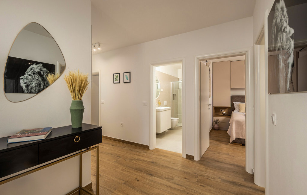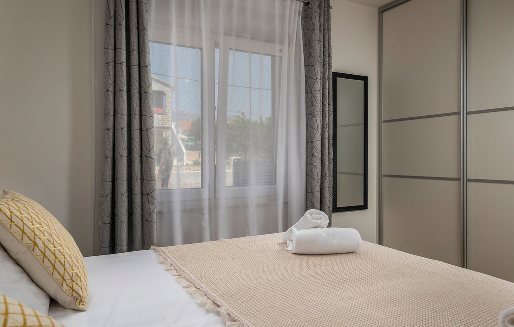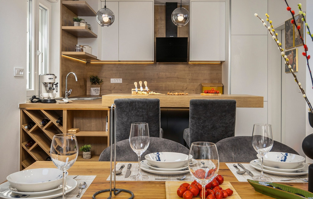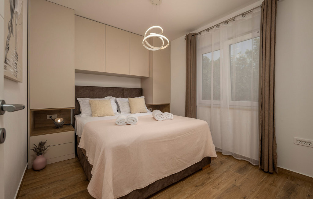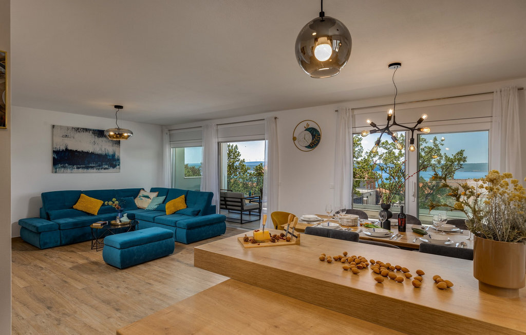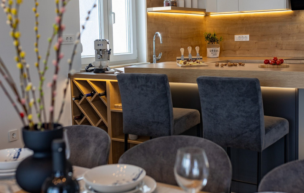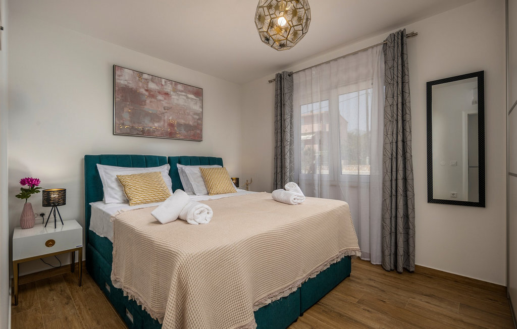 La magnifique villa Deep Green est située à Maslenica, à 28 km de la ville historique de Zadar. Cette villa confortable se trouve à 600 mètres de la côte et surplombe la mer. Elle vous offre les vacances parfaites de vos rêves, que vous veniez en famille ou avec un groupe de vos meilleurs amis. Échappez à l'agitation de la vie quotidienne et offrez-vous des vacances paisibles et heureuses ! La villa Deep Green a été construite dans un style architectural contemporain et offre à ses hôtes 260 m2 de surface habitable, tandis que la superficie totale du terrain est de 10.000 m2. La ferme dispose d'une oliveraie aménagée, entourée d'une forêt de chênes et d'une prairie. Comme elle se trouve à proximité d'une mer propre et claire, vous avez la possibilité de plonger dans les profondeurs de la mer et de prendre un bain de soleil. La villa est entièrement climatisée et peut accueillir un maximum de 8 personnes, idéalement 6, et se compose d'un rez-de-chaussée et d'un étage. Le rez-de-chaussée comprend une cuisine moderne et équipée où vous pourrez préparer des repas pour toute la famille, ainsi qu'un salon spacieux avec un canapé d'angle, une table basse et une télévision. Dans la salle à manger, il y a une table à manger avec 8 places assises. Au rez-de-chaussée, il y a également une salle de bain avec cabine de douche et une terrasse avec des sièges où vous pouvez prendre votre café du matin. À l'étage supérieur, vous trouverez un autre salon et une salle à manger, deux salles de bains avec douche et trois chambres. Dans deux chambres, il y a un lit double (160x200) et dans la troisième, il y a 2 lits simples (90x200) qui peuvent être réunis pour former un lit double. La terrasse extérieure vous ravira avec sa piscine de 32 m² et de 1,5 m de profondeur. À côté, il y a 8 chaises longues pour prendre le soleil et un barbecue à gaz, à charbon ou à bois à l'extérieur. Vous pourrez déguster des plats préparés sur le barbecue autour de la table à manger extérieure couverte pour 8 personnes. Parmi les autres équipements qui vous seront utiles pendant votre séjour, vous trouverez une machine à laver et un fer à repasser. En outre, la villa dispose de toilettes séparées. En cas de besoin, le canapé sert de lit supplémentaire pour deux personnes. La cour intérieure de la Villa Deep Green est entièrement clôturée et vous offre 3 places de parking privées, ainsi que 2 places supplémentaires à l'extérieur. Les enfants seront ravis du parc pour enfants, où ils pourront jouer et s'amuser sur le toboggan et les balançoires. Dans la villa, tout le monde peut jouer aux fléchettes, au ping-pong, au badminton et au billard. Pour ceux qui souhaitent profiter d'une belle nature intacte, le parc national de Paklenica, Starigrad, les gorges de la rivière Zrmanja et la célèbre et remarquable Pari?evacka glavica, dont le lieu de tournage a été utilisé pour le film Winetou, se trouvent à proximité de la villa. Dans les environs de Maslenica, il y a de nombreux endroits intéressants pour se divertir en été, et pour ceux qui souhaitent profiter de promenades romantiques et explorer des antiquités historiques, la ville royale de Nin, dont les rues portent encore les traces des temps passés, se trouve à proximité. Ne manquez pas de visiter l'église St. Kri?a, la plus petite cathédrale du monde, dont l'architecture particulière s'adapte au rythme naturel des saisons. La Dalmatie est également connue pour son excellente offre gastronomique, riche en poissons frais, fruits de mer et huile d'olive. Visitez l'une des authentiques tavernes dalmates dans les petites villes de la côte et découvrez tout le charme de la cuisine dalmate de première classe. Bienvenue à la Villa Deep Green !