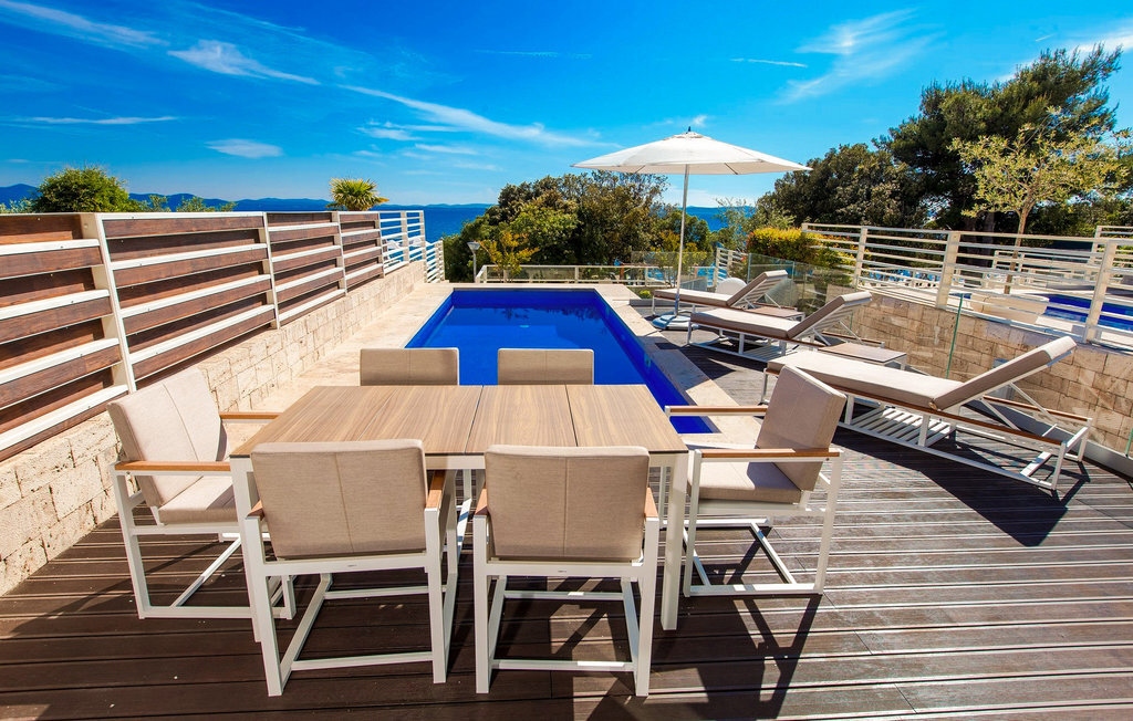 Dans le jardin clôturé, vous pouvez commencer la journée par un bain rafraîchissant dans la piscine chauffée, puis déguster des grillades en plein air - le cadre parfait pour des journées d'été relaxantes. Paressez sur les chaises longues et laissez votre regard se perdre dans la mer.