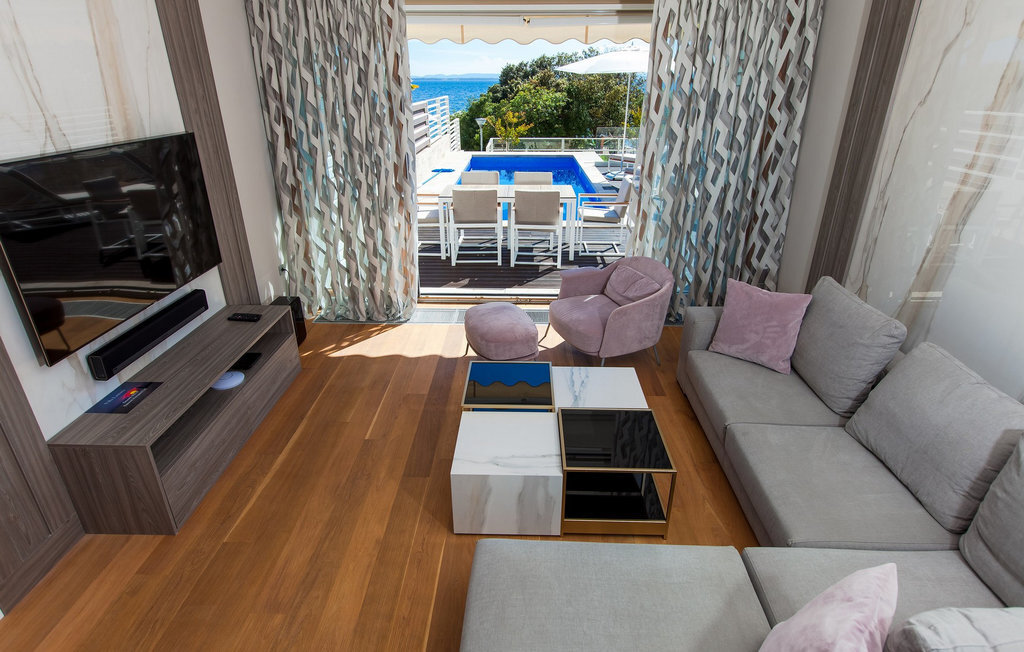 L'élégante villa Lantana se trouve à quelques pas de la mer, dans le charmant village de vacances de Petrane. Le salon inondé de lumière et la cuisine moderne au rez-de-chaussée vous invitent à passer des moments conviviaux avec vue sur la mer. Dans les chambres confortables des deux étages, chacune avec sa propre salle de bain, vous trouverez calme et repos.