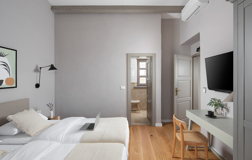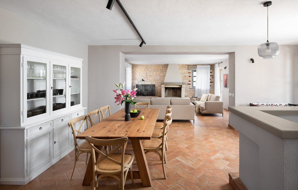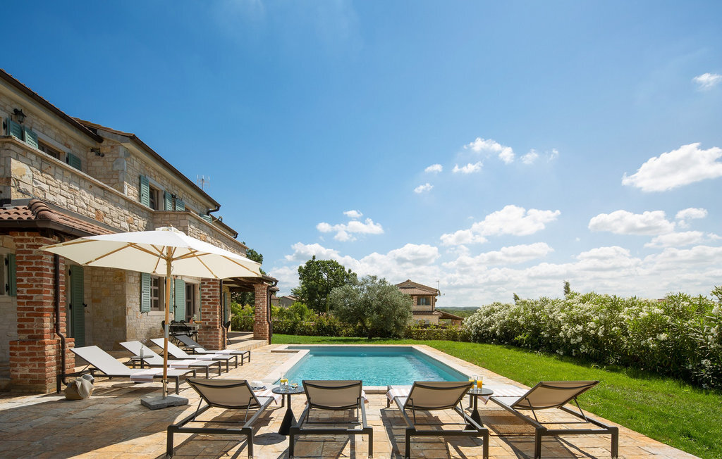 La villa Flower se trouve à Sv. Lovre ?, en Istrie. Cette magnifique maison en pierre autochtone d'Istrie est idéale pour tous les amoureux de la nature et de la verdure et pour tous ceux qui souhaitent passer des vacances calmes et reposantes. Si vous êtes l'un d'entre eux, offrez-vous, à vous et à votre famille, des vacances inoubliables à la Villa Flower ! La villa a été construite en 2009 dans un style rustique, mais a été entièrement rénovée en 2022. Elle offre à ses hôtes 204 m2 de surface habitable, la surface totale du terrain étant de 1154 m2. Villa Flower peut accueillir un maximum de 8 personnes dans 4 chambres, dont trois sont équipées de lits doubles et la quatrième de deux lits simples. Il y a également 4 salles de bain dans la villa, deux d'entre elles disposent à la fois d'une douche et d'une baignoire et deux autres n'ont qu'une baignoire. Chacune des chambres a une sortie sur le balcon, où se trouve un canapé sur lequel vous pouvez prendre un café le matin ou vous détendre le soir. Dans le salon, vous vous reposez sur deux canapés, il y a également une table basse, une télévision et des chaises. La salle à manger dispose d'une table pour 8 personnes et il y a aussi une cuisine moderne équipée de tout ce dont vous avez besoin pour préparer de délicieux repas. Sur la terrasse extérieure se trouve une piscine de 32 m2 et d'une profondeur de 1,5 mètre. À côté, il y a 8 chaises longues pour prendre le soleil, un barbecue au charbon ou au bois à l'extérieur et une table à manger couverte à l'extérieur. Si des enfants vous accompagnent en vacances, vous pouvez utiliser une mangeoire et un lit bébé. La villa est clôturée et offre 3 places de parking privées. Devant la villa, il y a un grand jardin où les enfants peuvent jouer et s'amuser. Chaque année, de nombreux touristes locaux et étrangers viennent en Istrie, et chacun peut trouver quelque chose d'amusant et d'intéressant pour lui. Ainsi, vous pourrez vous aussi explorer des lieux istriens qui se prêtent idéalement à de longues promenades à pied ou à vélo, et vous goûterez à l'offre gastronomique d'excellents délices dans différentes tavernes ou restaurants. Osez visiter l'Istrie, le lieu de Saint Lovre ? et la Villa Flower. Soyez les bienvenus ! Les animaux domestiques sont autorisés dans ce logement à la discrétion du propriétaire ou moyennant un supplément.