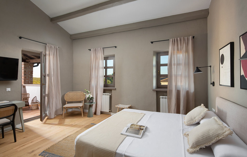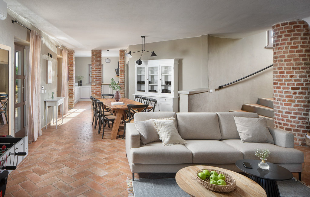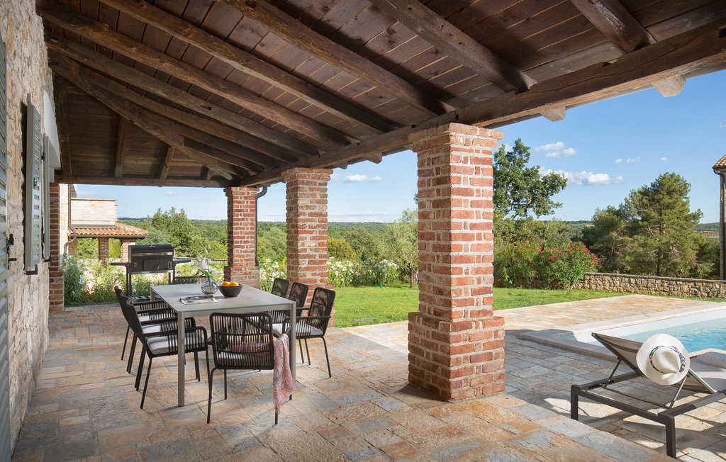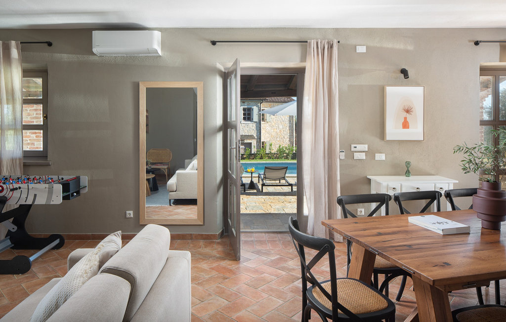 La villa Iskra est située dans la partie occidentale de la péninsule d'Istrie, dans la ville de Sveti Lovre ? Sveti Lovre ? est un lieu réputé qui représente le choix parfait pour tous les hôtes qui souhaitent échapper à l'agitation de la vie quotidienne et au style de vie trépidant. De même, vous profiterez dans cette villa d'une tranquillité absolue en compagnie de votre propre famille ou d'un groupe d'amis. Sveti Lovre ? est, comme on dit, un joyau caché et l'une des villes médiévales les mieux conservées d'Istrie. La villa Iskra est une beauté rustique construite en 2009 et entièrement rénovée en 2022. Elle vous offre 196 m2 de surface habitable, tandis que la surface totale du terrain est de 1174 m2. La mer et la plage les plus proches ainsi que la ville de Pore ? ne sont qu'à 15 km et le restaurant le plus proche est à 400 m de la villa. Un maximum de 8 personnes peut séjourner dans la villa, qui est répartie sur quatre chambres à coucher, dont deux se trouvent à l'étage et les deux autres au rez-de-chaussée. Dans trois chambres, il y a trois lits doubles et dans la quatrième, deux lits simples. En outre, trois salles de bains avec baignoire sont à votre disposition, dont deux disposent en plus d'une cabine de douche. Au rez-de-chaussée, il y a également un salon avec deux canapés, une table basse, une télévision et des chaises. Une cuisine moderne et une salle à manger avec une table pour 8 personnes se trouvent à proximité immédiate du salon. Vous y préparerez et dégusterez des plats délicieusement préparés pour toute la famille. Sur la terrasse extérieure se trouve également une piscine de 32 m2 et de 1,5 m de profondeur. Sur la pelouse à côté de la piscine, 8 chaises longues sont disponibles pour prendre un bain de soleil. Sur la terrasse, il y a également une table à manger en plein air ainsi qu'un barbecue au charbon ou au bois. Les autres commodités de la Villa Iskra comprennent une machine à laver et un fer à repasser ainsi que des toilettes séparées. Sur demande préalable, vous pouvez également profiter du service de conciergerie. Si des enfants vous accompagnent en vacances, vous pouvez utiliser une mangeoire et un lit bébé. La cour intérieure de la villa offre 3 places de parking privées. La cour est ouverte et offre suffisamment d'espace pour que les enfants puissent jouer et s'amuser. Chaque année, de nombreux touristes locaux et étrangers viennent en Istrie, et chacun peut trouver quelque chose d'amusant et d'intéressant pour lui. Ainsi, vous pourrez vous aussi explorer des lieux istriens qui se prêtent idéalement à de longues promenades à pied ou à vélo, et vous goûterez à l'offre gastronomique d'excellents délices dans différentes tavernes ou restaurants. Osez visiter l'Istrie, le lieu de Saint Lovre ? et la villa Iskra. Soyez les bienvenus ! Les animaux domestiques sont autorisés dans ce logement à la discrétion du propriétaire ou moyennant un supplément.