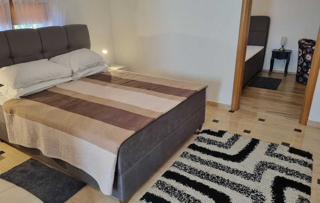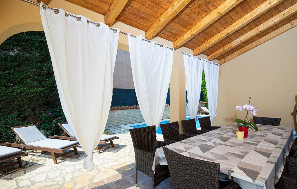 La magnifique villa Luces se trouve à Jadre?ki, une zone résidentielle et touristique très prisée, idéale pour ceux qui souhaitent échapper à l'agitation des grandes villes et profiter de la nature intacte de l'Istrie. Jadre?ki se trouve à seulement 8 km de Pula et offre à la fois une retraite de la vie quotidienne et la proximité de restaurants, de bars et de diverses activités sportives. Si vous êtes à la recherche d'un endroit où vous pourrez vous offrir une semaine de détente et profiter des eaux cristallines et des plages rocheuses de la mer Adriatique, vous avez trouvé l'endroit idéal pour vos vacances. Villa Luces propose un hébergement exclusif, idéal pour les familles ou les groupes d'amis. Elle est confortablement aménagée et fait en sorte que vous vous sentiez comme chez vous. La taille de cette magnifique villa est de 180 m² et s'étend sur un terrain de 700 m². La villa se compose de six chambres à coucher confortablement aménagées. Quatre chambres sont équipées de lits doubles, une de trois lits simples et une d'un lit simple. Les chambres sont spacieuses, aérées et lumineuses. Trois salles de bains confortables sont à la disposition des hôtes. La villa dispose également d'une cuisine moderne entièrement équipée et d'un grand salon avec cheminée. La villa dispose de nombreux divertissements ? une salle de jeux avec baby-foot, billard, fléchettes électroniques, console PlayStation 3 et tapis roulant. L'espace extérieur est équipé d'un barbecue et d'une salle à manger en plein air, où les hôtes peuvent déguster des repas fraîchement préparés avec leur famille et leurs amis. La villa dispose également d'une belle piscine (25 m²) entourée de chaises longues. Les enfants aimeront passer leur temps dehors sur la petite aire de jeux avec balançoires et bascules. Avec son contenu varié, la Villa Luces répondra à tous vos besoins ! Les animaux domestiques sont admis dans ce logement à la discrétion du propriétaire ou moyennant un supplément.