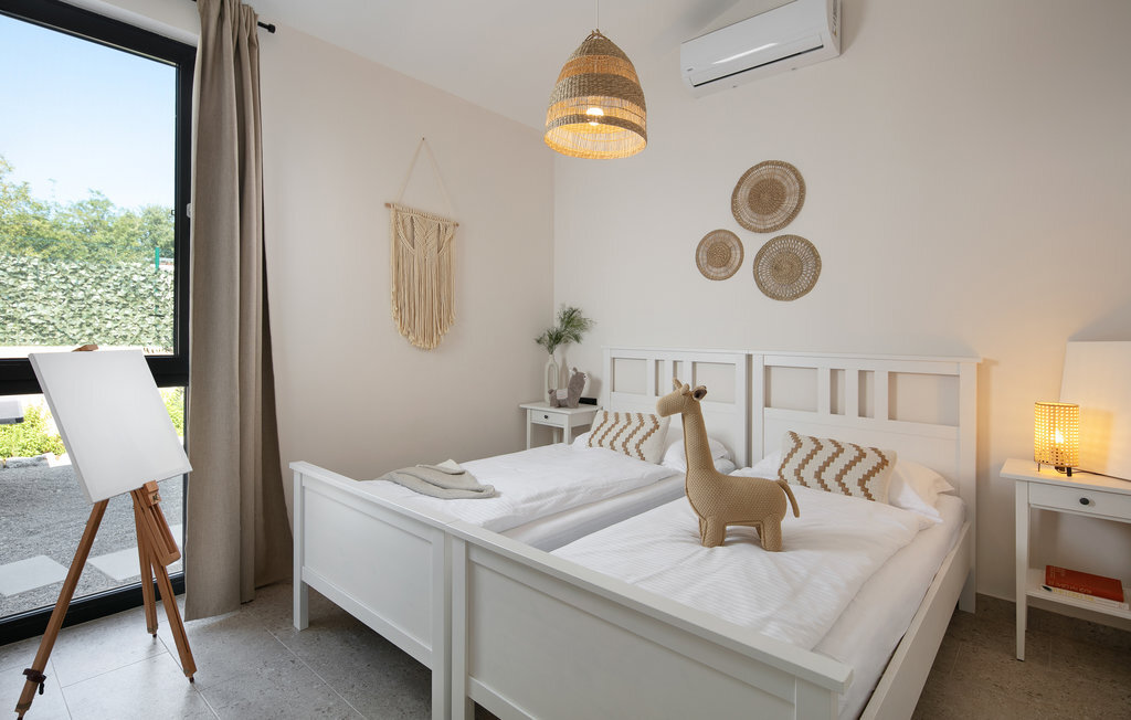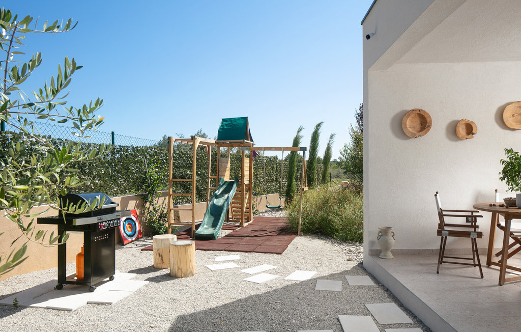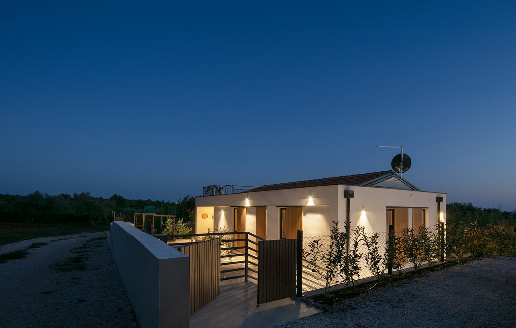 Vous imaginez des vacances parfaites dans un environnement calme et une intimité absolue ? Si votre réponse est "oui", alors la Villa Eco est exactement ce qu'il vous faut ! La villa est située dans la ville de Sv. Lovre ? se trouve au cœur de l'Istrie et est connue comme l'une des principales destinations touristiques qui vous enthousiasmera totalement. Offrez-vous une pause dans votre quotidien trépidant et passez-la en famille ou entre amis dans la magnifique Villa Eco ! Construite en 2023 dans un style architectural contemporain, la villa offre à ses hôtes 100 m2 de surface habitable, tandis que la surface totale du terrain est de 800 m2. La villa peut accueillir un maximum de 5 personnes, le nombre optimal d'invités étant de 4. Elle est entièrement climatisée et les invités sont confortablement installés dans les 2 chambres à coucher du rez-de-chaussée. Une chambre dispose d'un lit double (160 x 200), tandis que l'autre chambre dispose de deux lits simples (90 x 200). La villa dispose d'une salle de bain privée avec douche et d'une autre salle de bain normale, également avec douche. Une cinquième personne peut dormir sur le canapé du salon. Dans le salon magnifiquement aménagé, vous vous détendrez sur le canapé, à côté duquel se trouvent une table basse, une chaise et une télévision. Non loin du salon se trouve bien sûr la salle à manger avec une table pour 4 personnes. Juste à côté de la salle à manger se trouve une cuisine moderne avec tout ce dont vous avez besoin pour préparer avec amour des repas pour toute la famille. Dans le salon, vous trouverez un tourne-disque, des livres et des jumelles, ainsi que des jeux de société et une Xbox. Depuis le salon et la salle à manger, vous avez un accès direct à la terrasse extérieure, qui est entourée d'un jardin magnifiquement aménagé et de beaucoup de verdure que vous apprécierez. Nager dans la piscine de 50 m² n'est qu'un des avantages offerts par la Villa Eco. La piscine a une profondeur de 1,3 mètre et à côté se trouve une pelouse avec 4 chaises longues où vous pouvez prendre le soleil et lire des livres. En outre, il y a un espace lounge sur la terrasse où vous pouvez prendre votre café du matin, et il y a aussi un barbecue à gaz à l'extérieur. Vous pourrez déguster les plats préparés sur la table à manger en plein air. Au dernier étage de la Villa Eco, vous avez la possibilité de vous amuser sur le toit-terrasse avec vue sur la mer, et dans le jardin devant la maison, il y a également un foyer avec des chaises longues. C'est l'endroit idéal pour passer des soirées avec vos proches jusqu'à tard dans la nuit. Parmi les autres installations dont vous pourrez profiter pendant votre séjour à la villa, il y a une machine à laver et un fer à repasser. La Villa Eco est entièrement clôturée et dispose de deux places de parking à l'extérieur de la cour. Les enfants se réjouiront du toboggan et de la balançoire dans le jardin devant la villa. Les adultes ont la possibilité de jouer au ping-pong. Il y a également un pont de yoga et des caisses vertes de légumes. Certaines des choses intéressantes qui rendront la Villa Eco encore meilleure pour vous sont que son concept maintient la philosophie d'une vie en harmonie avec la nature, ce qui signifierait que la maison est entourée d'oliviers et située dans un village tranquille. De même, la villa s'inspire de la règle du "sans plastique" et évite l'utilisation de plastique sous toutes ses formes. Ce qui vous réjouira peut-être le plus, c'est le fait qu'un partenariat spécial a été conclu avec la société "Grow my tree" et qu'à chaque réservation, un arbre est planté dans le but de réduire les émissions de CO2, pour lequel les hôtes reçoivent un certificat spécial. *Possibilité d'acheter chez les voisins du vin et de l'huile d'olive locaux, produits par les mêmes oliviers qui ornent le jardin et entourent la Villa Eco ! Le village de St. Lovre ? est situé dans la partie occidentale de la péninsule d'Istrie et est considéré comme un joyau caché et comme l'une des villes médiévales les mieux conservées d'Istrie. L'Istrie vous offre de magnifiques couchers de soleil, de nombreuses possibilités d'excursions d'une journée et la proximité de villes où vous pouvez vous rendre à pied ou à vélo. De même, vous pourrez goûter dans différentes tavernes ou restaurants à l'offre gastronomique parfaite d'excellents délices qui raviront tous les palais ! Bienvenue à la Villa Eco !