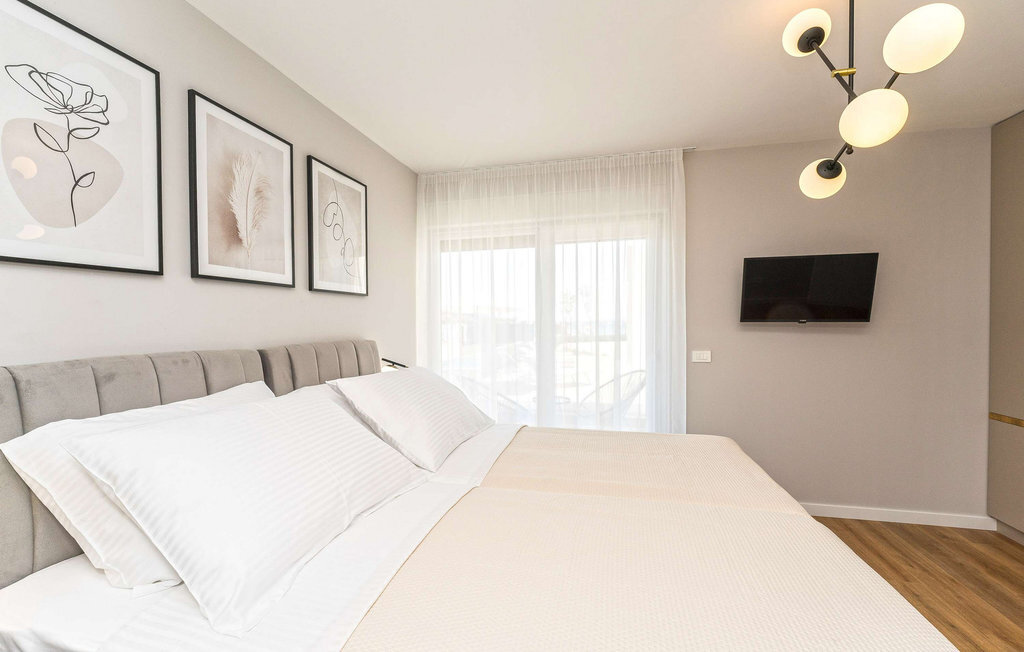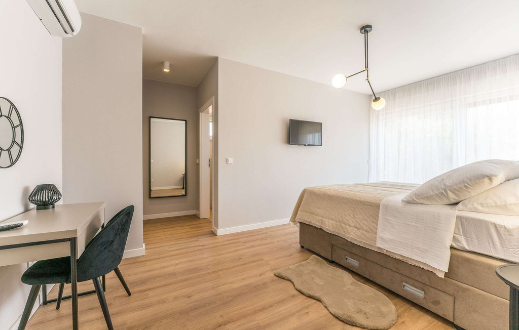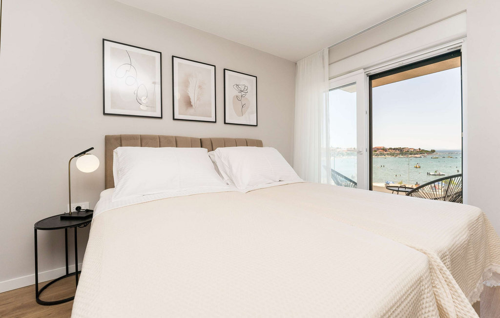 La plage se trouve juste devant votre porte, idéale pour plonger dans l'eau transparente le matin ou pour profiter de la journée sous les pins ombragés. Explorez l'île de Vir, reliée au continent par un pont, et découvrez des curiosités comme la forteresse vénitienne Katelina, le phare datant de 1881 et l'église Saint-Jean-Baptiste. Les familles trouveront de quoi s'amuser et se divertir sur la très populaire plage de Jadro, avec son parc aquatique et ses petits toboggans. En été, l'île se transforme en une scène animée, pleine de musique, de culture et d'ambiance festive, où vous pourrez profiter pleinement de la joie de vivre méditerranéenne.