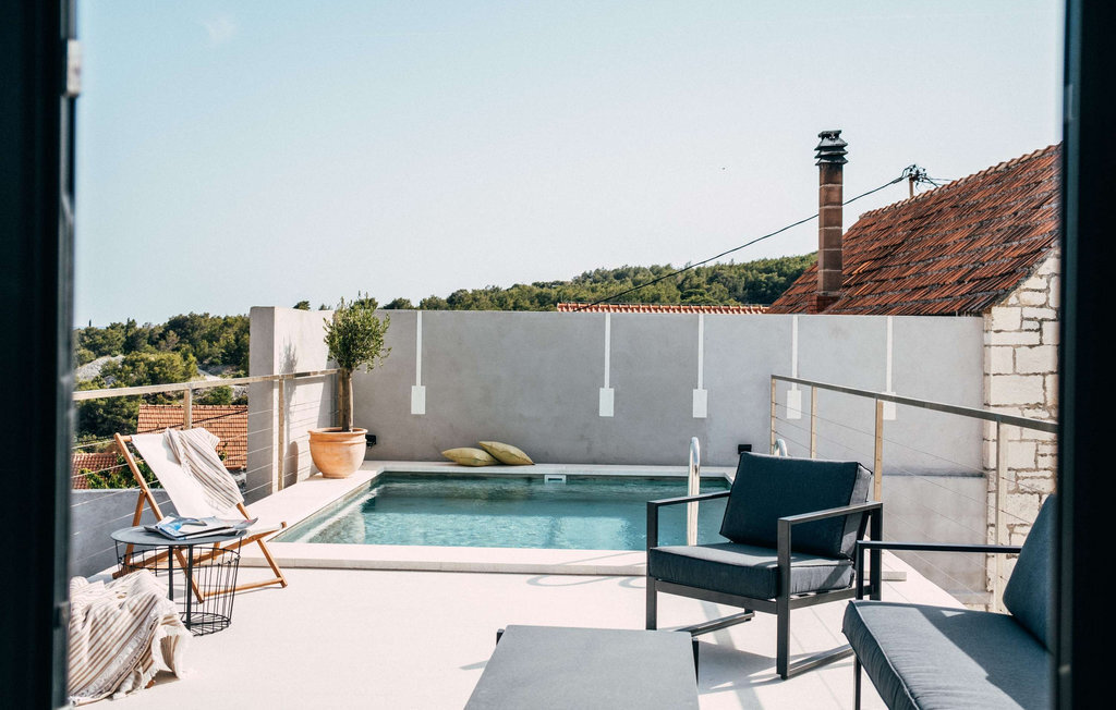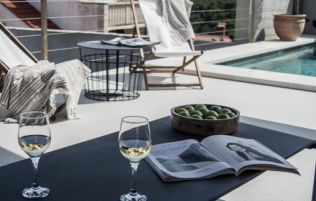 Sur l'élégante terrasse sur le toit, une magnifique piscine vous attend pour vous rafraîchir pendant les chauds mois d'été. Laissez votre regard se poser sur la baie de Sumartin en dégustant un vin bien frais, faites le plein d'énergie sur les confortables chaises longues et bavardez à la lueur des bougies et du vin pendant les douces nuits.