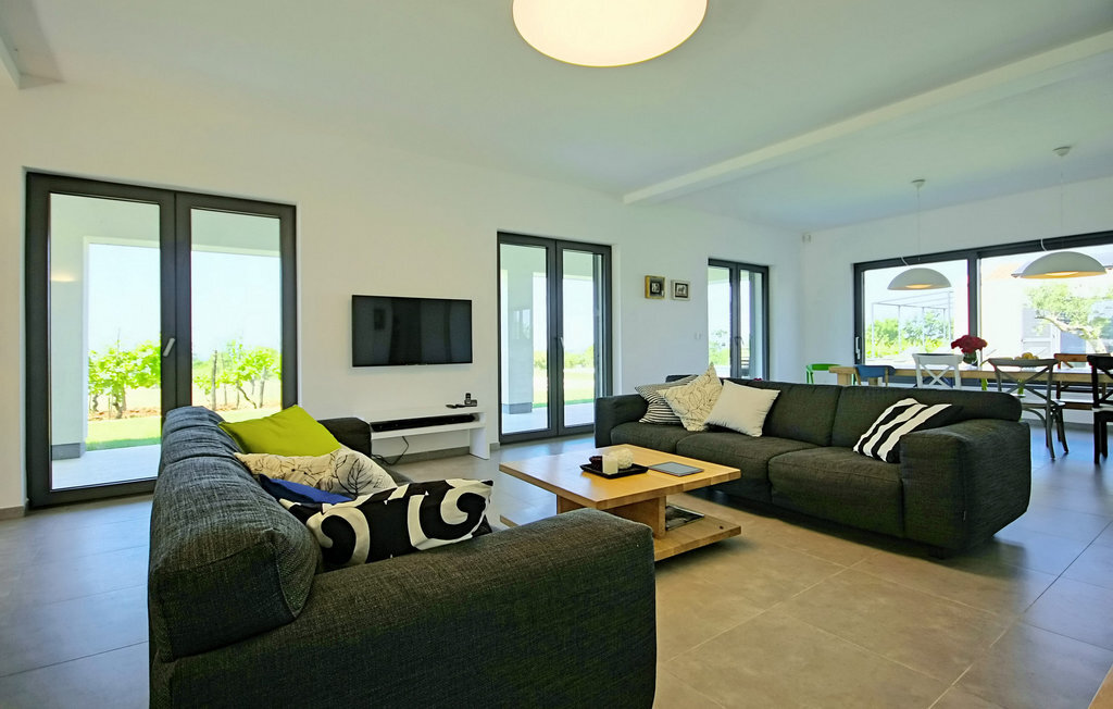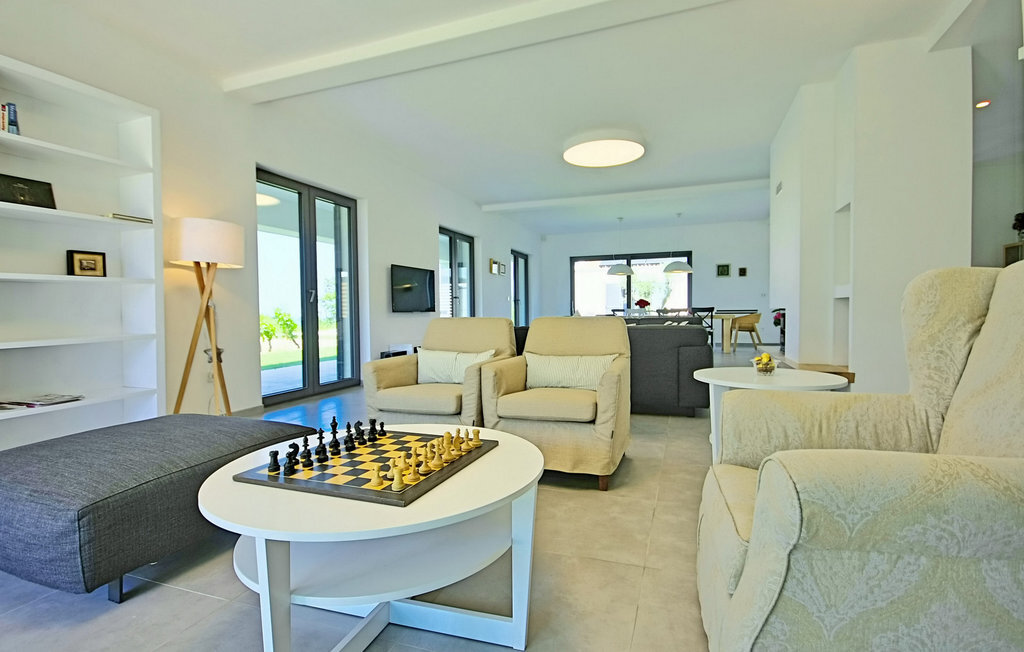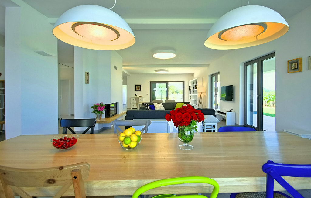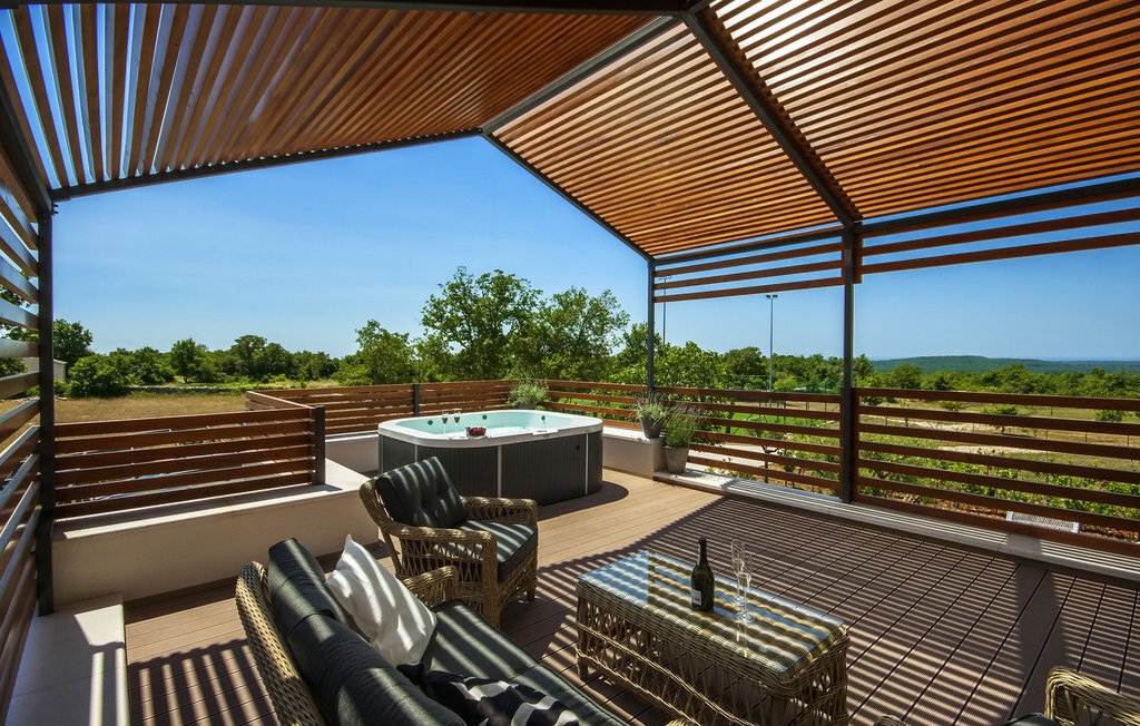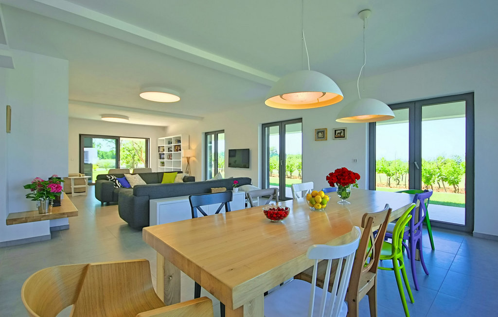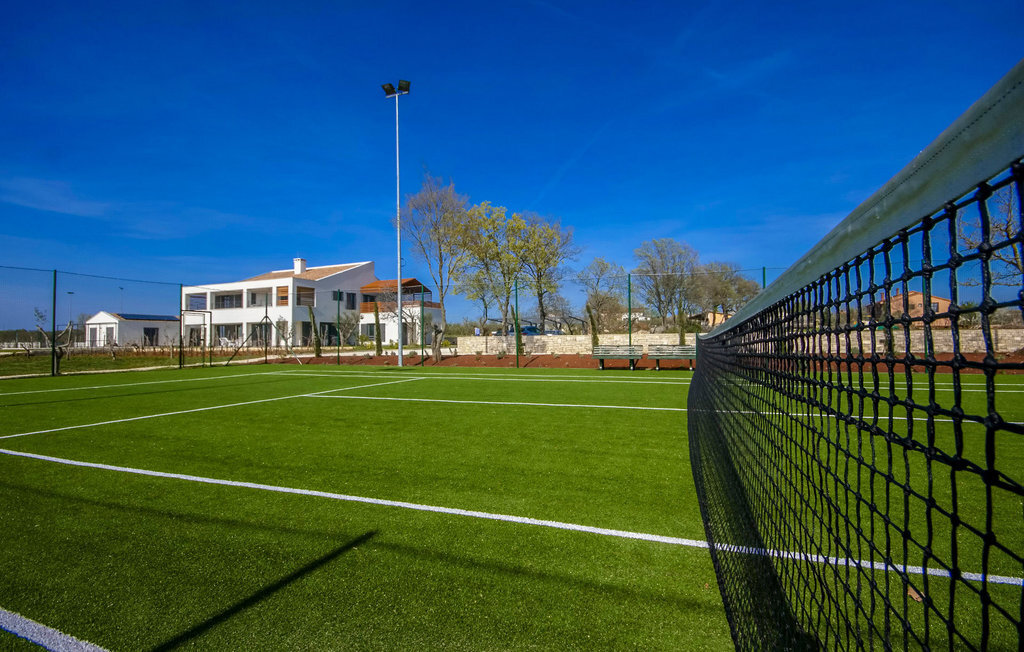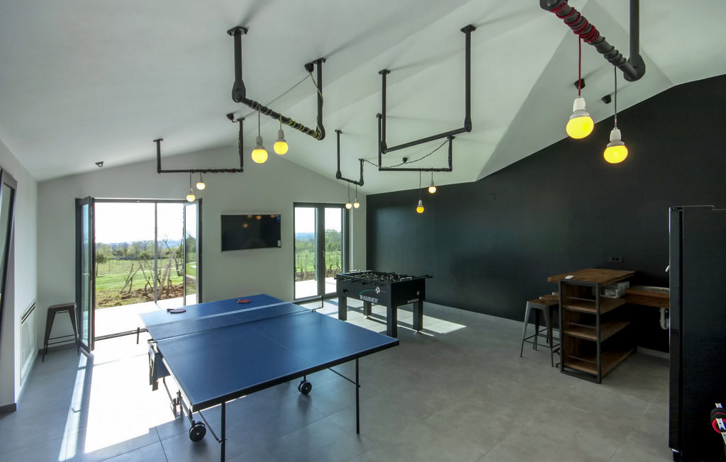 La magnifique Villa Bianca se trouve dans la ville pittoresque de Svetvin?enat, tout au sud de la presqu'île d'Istrie, qui ne manquera pas de vous séduire par sa riche offre touristique, ses nombreux délices gastronomiques ainsi que ses monuments et sites culturels et historiques. Cette villa moderne et entièrement climatisée de 600 m² dispose de 4 chambres à coucher spacieuses, dont 3 se trouvent au premier étage et ont une terrasse commune, tandis qu'une dispose également d'une galerie avec un lit double. Toutes les chambres sont équipées d'un lit double, tandis que le bureau dispose d'un lit pliant. En outre, chaque chambre dispose d'une salle de bain privée avec chauffage au sol et radiateur. Une salle de bain supplémentaire se trouve dans l'annexe, près de la piscine et du sauna. La villa dispose également d'une cuisine moderne entièrement équipée avec salle à manger et salon avec TV, console PlayStation et cheminée, ainsi que d'un autre WC séparé et d'une cave à vin avec une riche sélection de vins istriens de qualité. Le jardin de 7000 m2 de la Villa Bianca, entièrement clôturé, dispose d'une piscine (50 m2) avec chauffage et possibilité de massage, entourée de chaises longues. À côté de la piscine, il y a une salle de jeux avec un baby-foot, un billard, une table de ping-pong et un sauna, à côté de laquelle se trouvent un barbecue et un coin repas en plein air. Les hôtes ont également à leur disposition une chaîne stéréo avec haut-parleurs externes dans l'objet près du barbecue. L'offre de divertissement de la villa comprend 8 vélos, un court de tennis éclairé, un terrain de football et de volley-ball clôturé ainsi qu'un jacuzzi pour 4 personnes. Les hôtes de la Villa Bianca ont également à leur disposition 3 places de parking privées, sur lesquelles deux autres véhicules peuvent être garés. L'utilisation du terrain de tennis pendant la nuit est soumise à une taxe de 10 ? par heure, payable sur place. L'utilisation quotidienne est gratuite. La piscine est fermée de novembre à avril. Les animaux domestiques sont admis dans ce logement à la discrétion du propriétaire ou moyennant un supplément. Veuillez noter que ce logement n'accepte les groupes de jeunes ou les enterrements de vie de garçon que contre le paiement d'une caution remboursable. Si vous êtes un groupe de jeunes ou un enterrement de vie de garçon, il vous sera demandé de verser la caution à votre arrivée. Tout montant nécessaire à la réparation des dommages causés au logement pendant votre séjour sera déduit de la caution et vous sera ensuite remboursé.