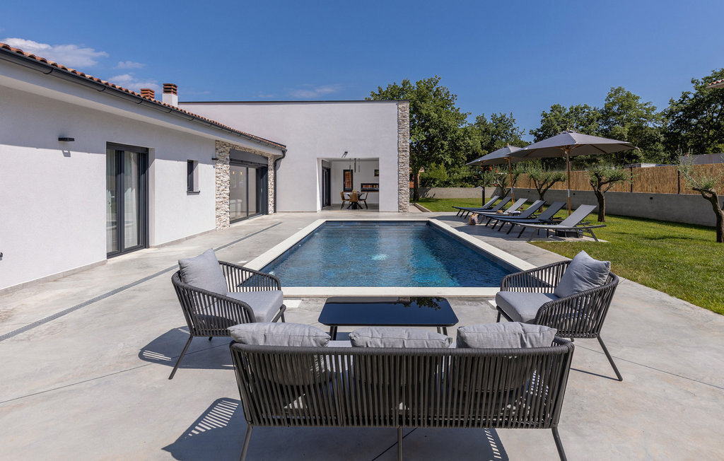 Villa Nia est située dans la partie orientale de l'Istrie, dans la ville de Kr?an, connue pour ses magnifiques paysages riches en plantes sauvages et en végétation méditerranéenne. La commune de Kr?an est basée sur la différenciation de l'offre touristique, rendue possible par la richesse de son patrimoine naturel et culturel, son environnement préservé, ses paysages uniques et sa mer limpide. La villa moderne Nia se compose de deux chambres à coucher climatisées avec un lit double et d'une chambre à coucher climatisée avec deux lits simples. En outre, le salon spacieux et moderne dispose d'un lit supplémentaire sous la forme d'un canapé-lit. Les chambres à coucher disposent d'une salle de bain privée avec douche, dont l'une est également équipée d'une baignoire spacieuse. L'intérieur de la villa est ouvert et depuis chaque pièce, vous pouvez accéder facilement et confortablement au jardin avec piscine. Villa Nia dispose d'une cuisine fonctionnelle, riche en appareils utiles au quotidien, et d'une cuisine d'été moderne au design industriel avec un poêle à bois et une salle à manger qui communique directement avec le grand jardin. Dans le jardin, il y a une piscine autour de laquelle sont disposées des chaises longues pour se détendre et profiter du soleil d'été. La villa Nia est entourée d'un long mur et vous offre une intimité et une tranquillité absolues pendant vos vacances. La plage de galets de Dra?ine, où vous pourrez découvrir la beauté des plages d'Istrie, vous offrira une pause dans votre quotidien. À proximité se trouvent des destinations touristiques comme Rabac, Lovran et Opatija ainsi que les îles de Krk et Cres. Vous pouvez également visiter le parc naturel d'U?ka, qui offre de nombreuses installations de loisirs et une vue magnifique sur la côte est de l'Istrie. Veuillez noter que ce logement n'accepte pas les groupes de jeunes ou les enterrements de vie de garçon. Un groupe de jeunes dans ce logement est composé de personnes de moins de 30 ans. Ne réservez pas ce logement si vous êtes un groupe de jeunes ou un enterrement de vie de garçon, car votre réservation sera refusée après la réservation, ce qui peut également être le cas à l'arrivée au logement ou pendant votre séjour, et vous ne serez pas remboursé.