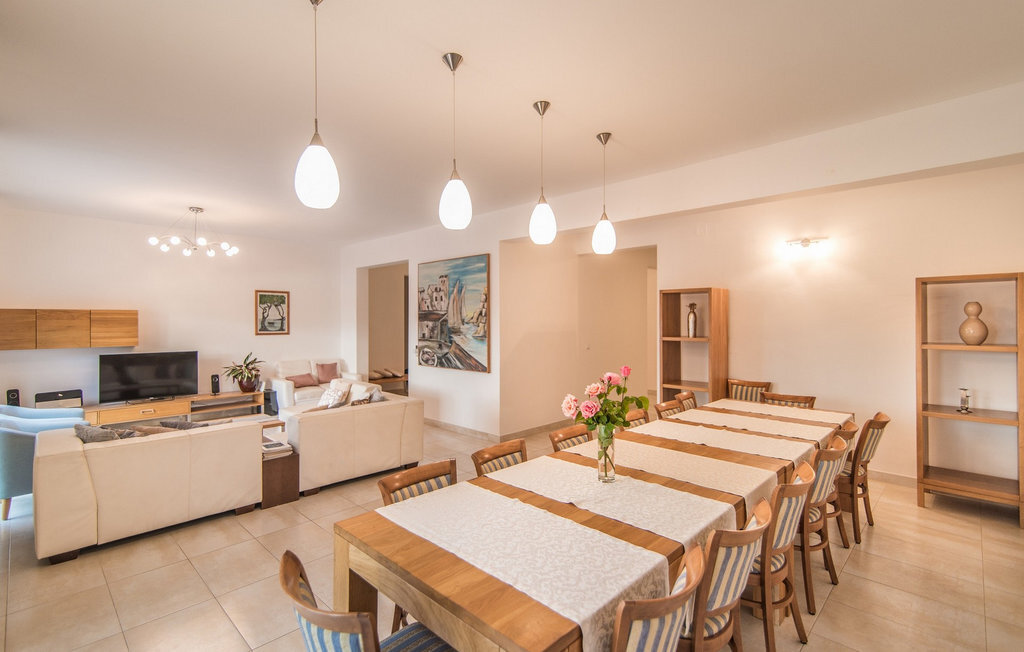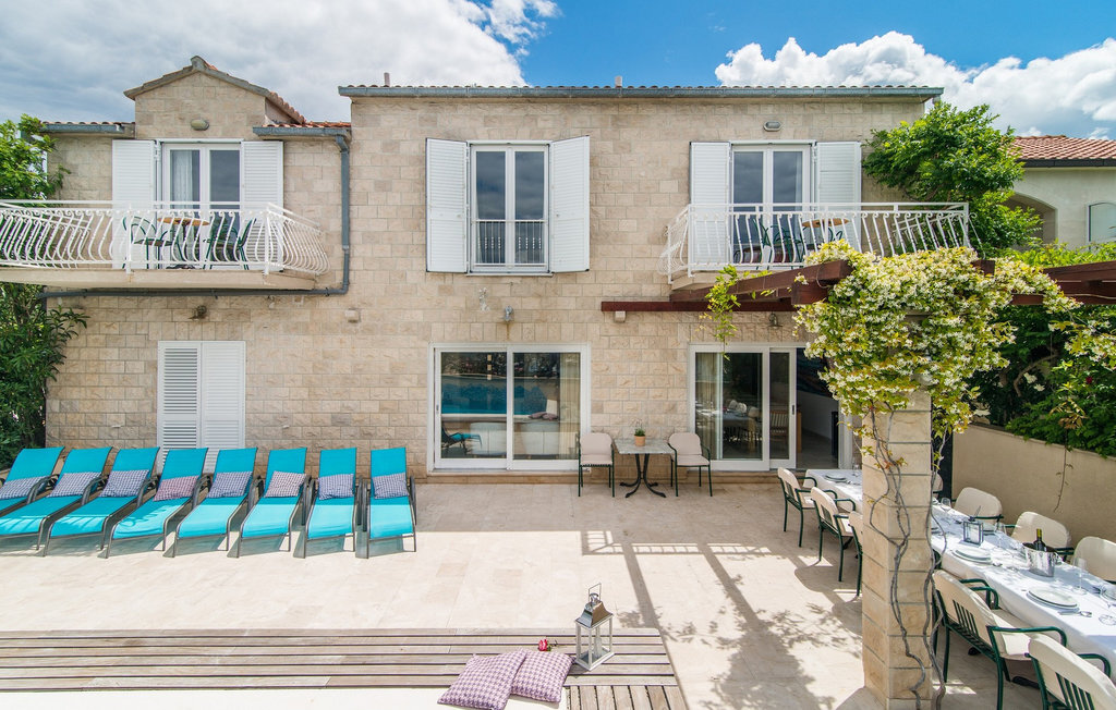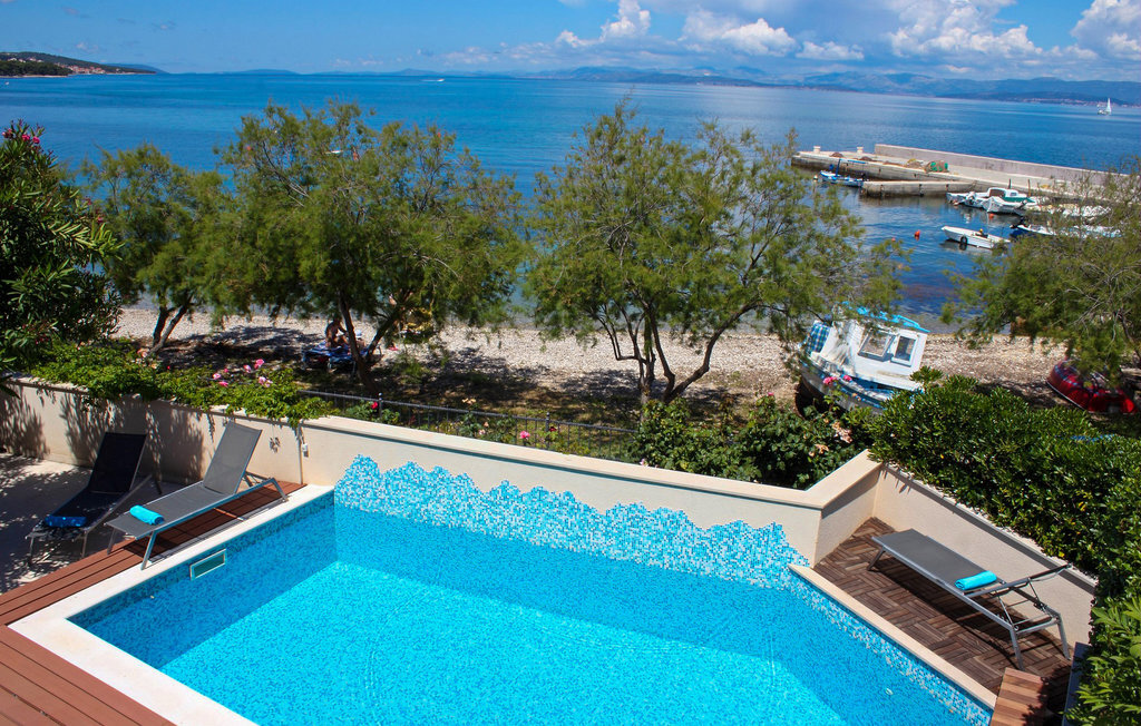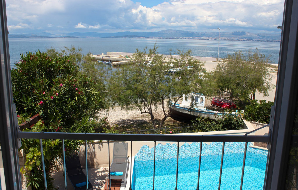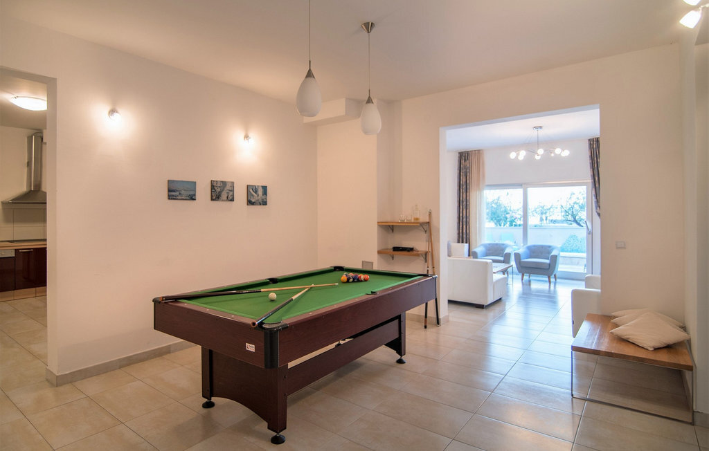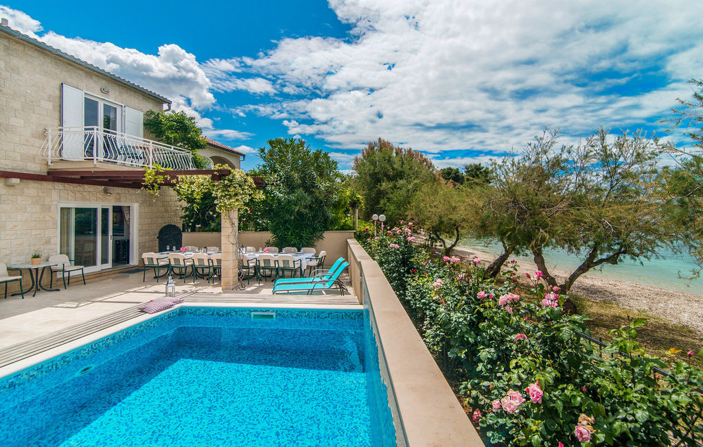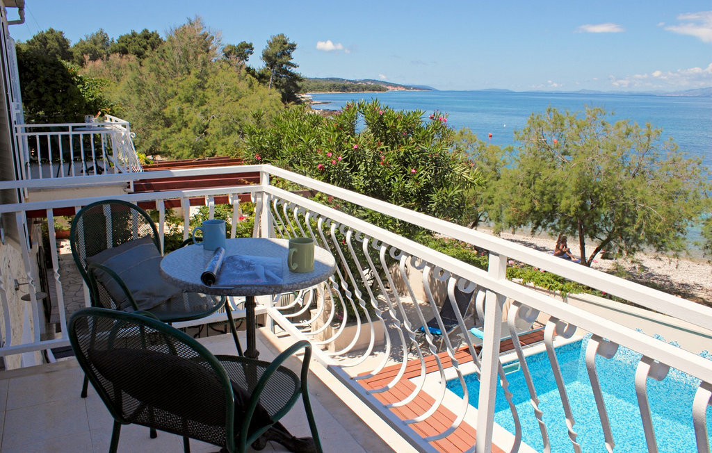 Commencez la journée par un bain rafraîchissant dans la piscine, puis laissez-vous bercer par le soleil sur l'une des chaises longues. Depuis la terrasse, profitez de la vue magnifique sur la verdure, la plage et le bleu de la mer Adriatique. Le soir, servez-vous un verre de vin ou de champagne pétillant et terminez la journée en toute convivialité, tandis que les vagues roulent doucement vers le rivage.