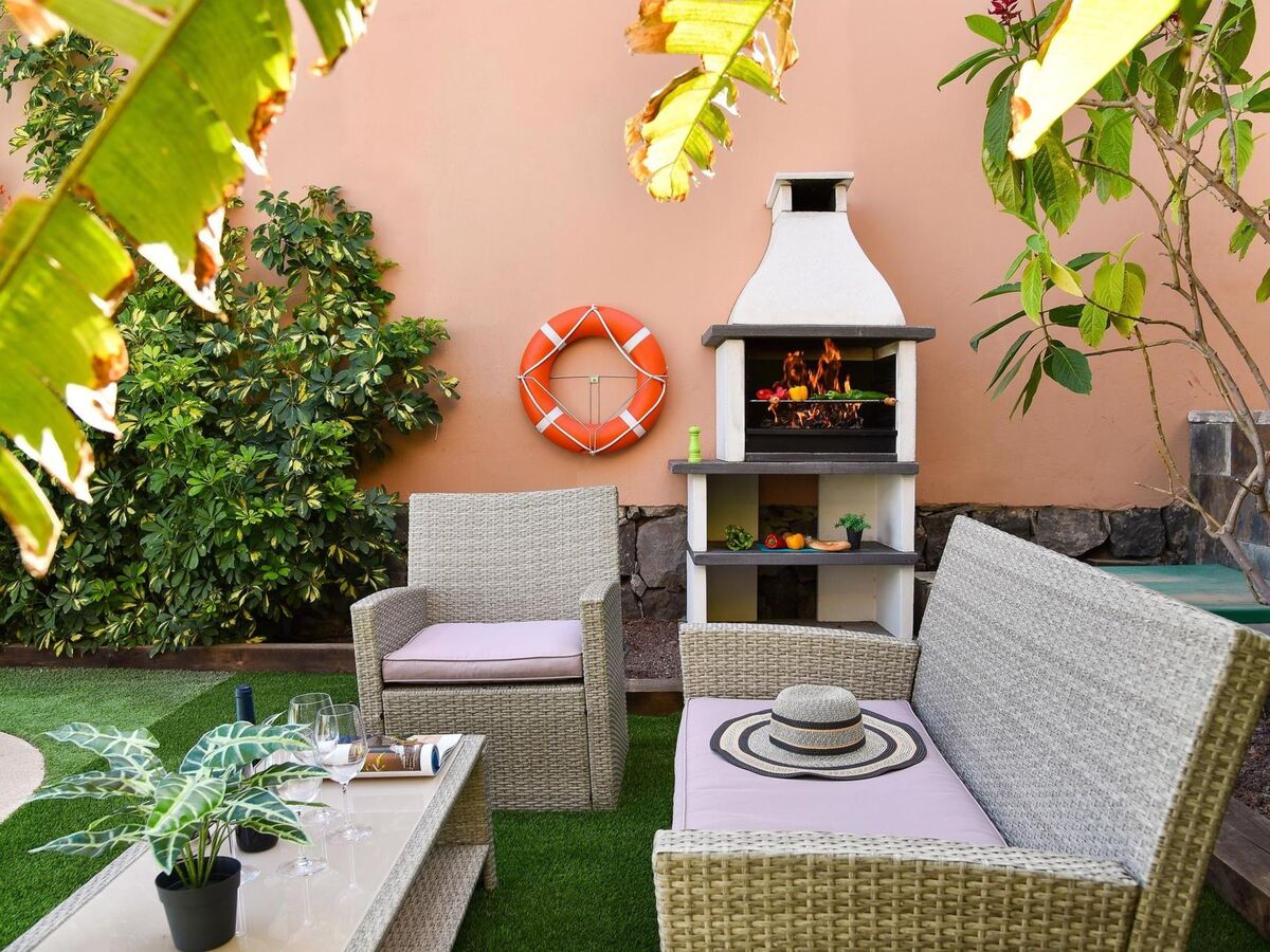 Meubles de terrasse, mobilier de balcon, barbecue, chaises longues.