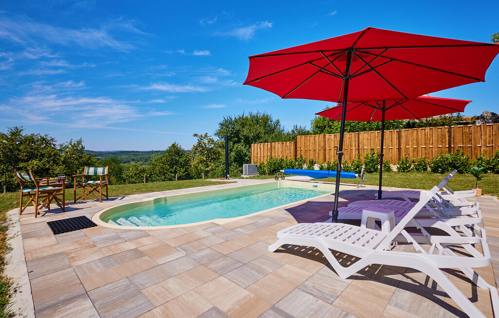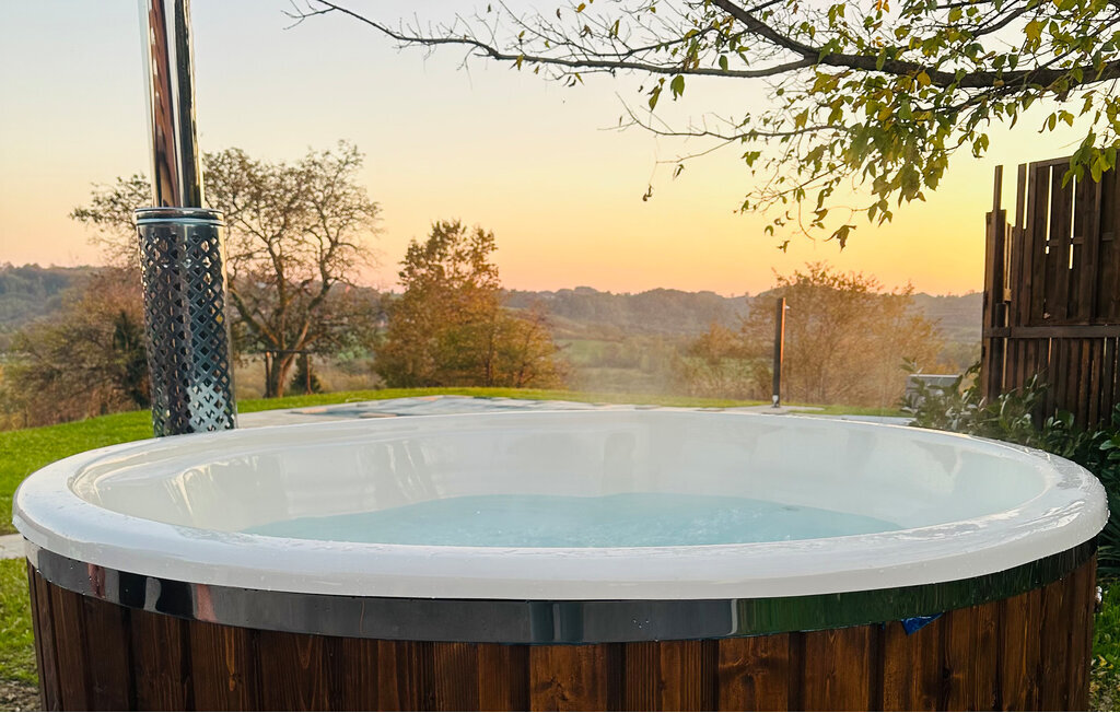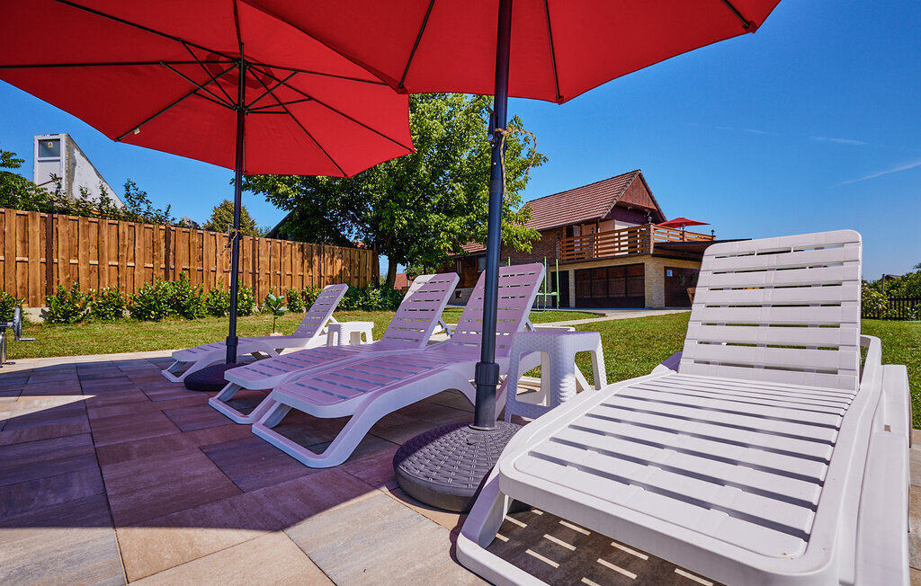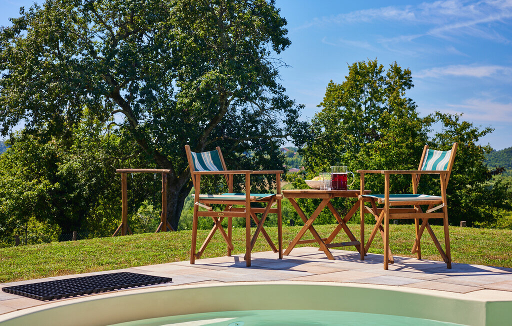Bien-être à l'extérieur : Location de vacances disposant de chaises-longues et d'un ou plusieurs équipements tels que piscine extérieure, jacuzzi extérieur, lit à baldaquin de jardin etc...