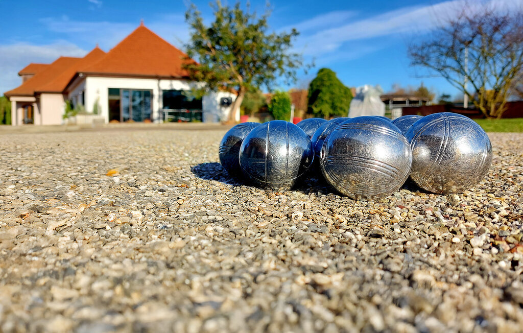 Activités de plein air : Cette location de vacances propose au moins 3 activités de plein air pour toute la famille comme par exemple une table de ping-pong, un trampoline, des boules de pétanques, un panier de basket avec son ballon etc...