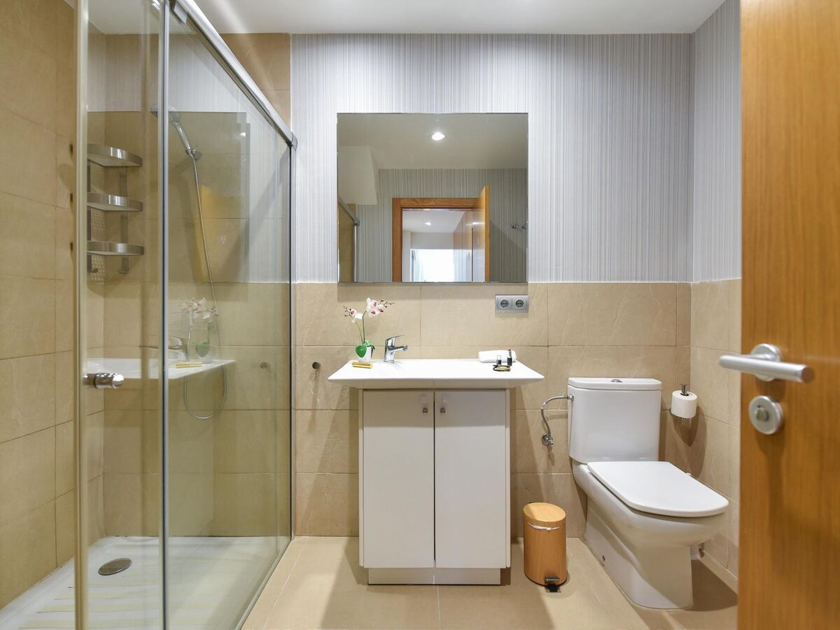 1 chambre avec 1 grand-lit, douche/WC et air-conditionné.