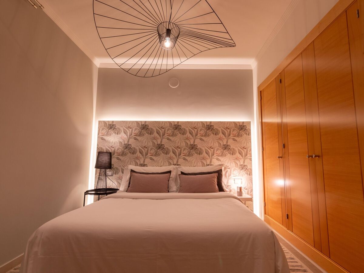 1 chambre avec 1 grand-lit (150 cm, longueur 190 cm), bain/WC et air-conditionné.