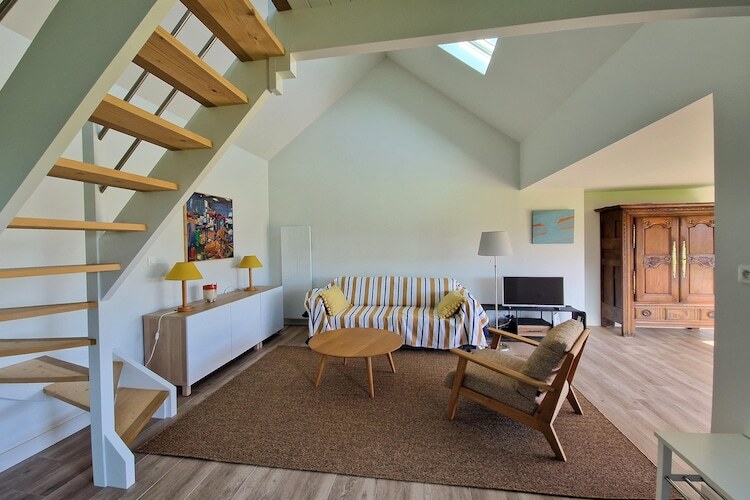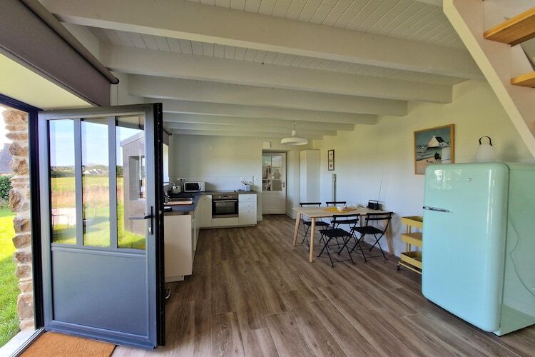 Charmante maison de vacances, idéale pour un couple, pouvant toutefois accueillir 4 personnes, grâce au confortable canapé-lit du salon. L’espace nuit en mezzanine est accessible par un escalier très design. L’ensemble a été rénové parfaitement en alliant confort moderne et éléments traditionnels bretons. Vous apprécierez également l’environnement calme et paisible à quelques minutes à pied de seulement de la plage du Guerzit (1 km).