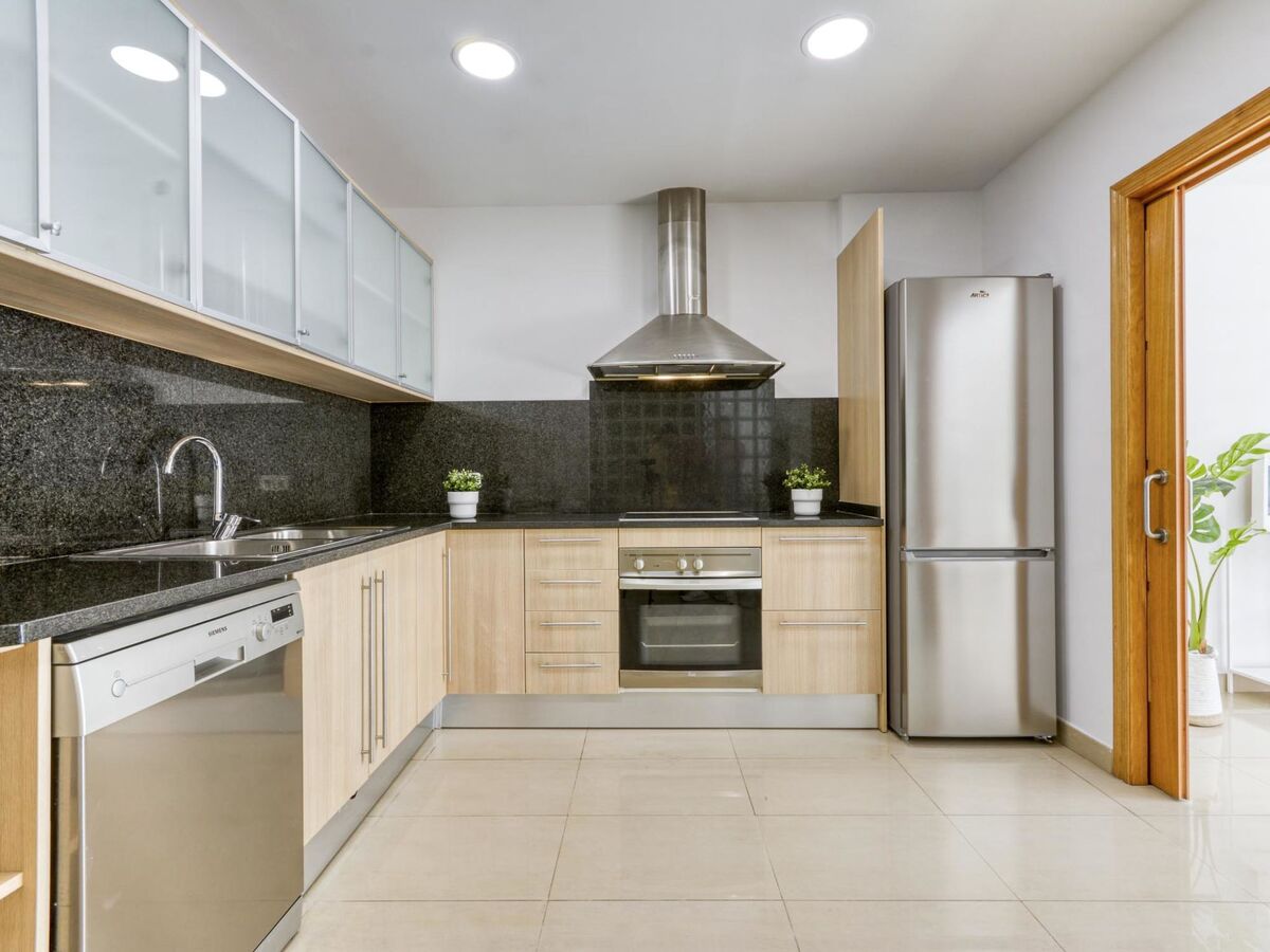 Grande cuisine (four, lave-vaisselle, 3 plaques vitrocéramiques, grille-pain, bouilloire électrique, micro-ondes, congélateur, cafetière électrique).