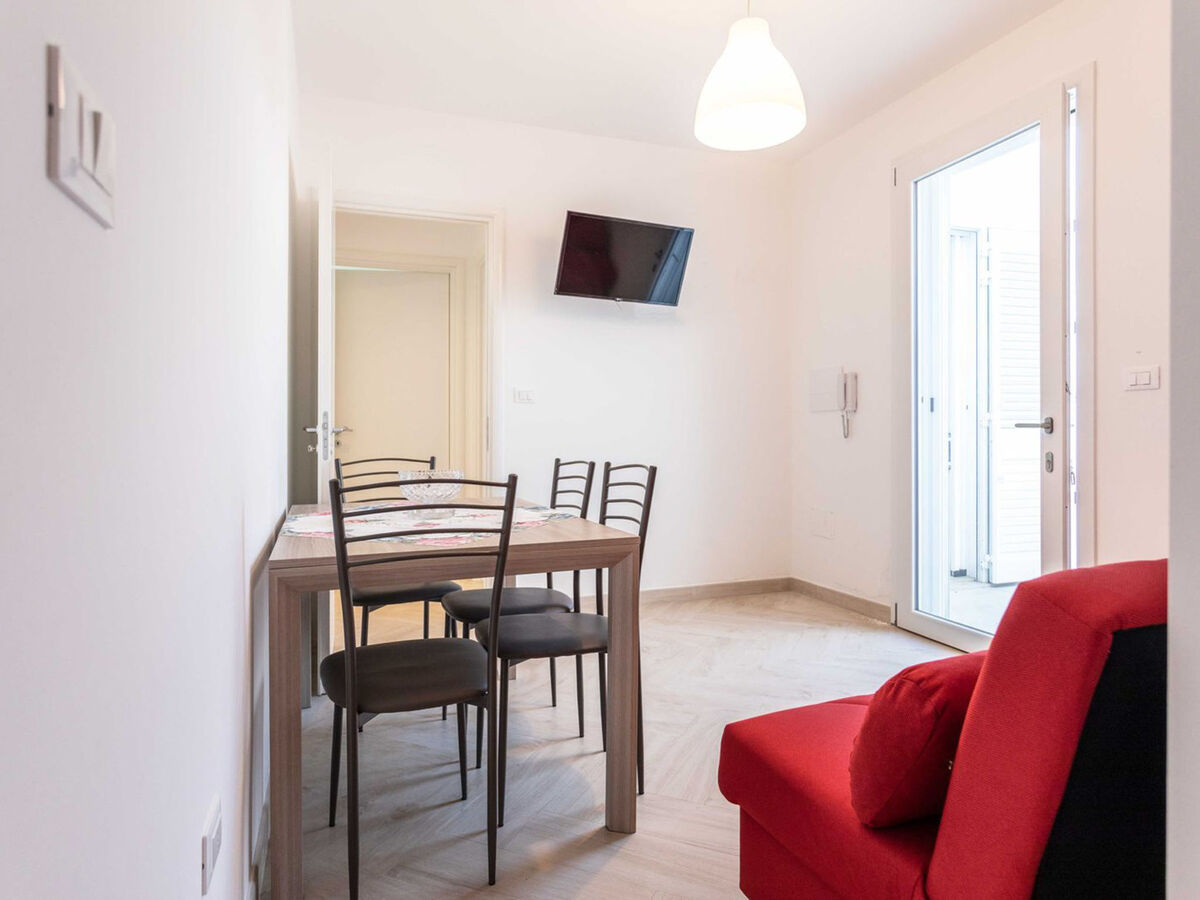 Clair, aménagement fonctionnel et moderne: séjour/salle à manger avec 1 divan-lit, table pour les repas, coin-cuisine et TV (écran plat), air-conditionné.