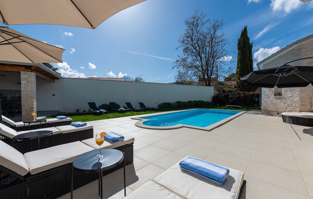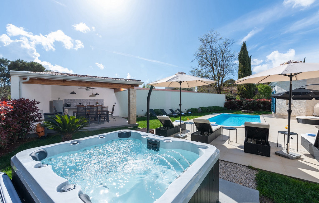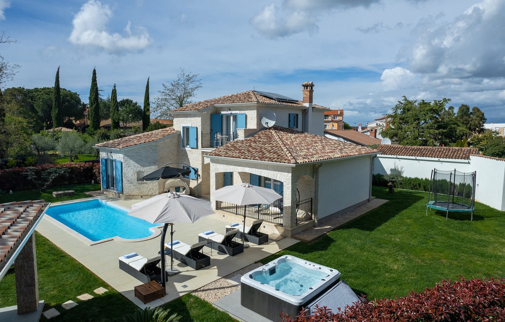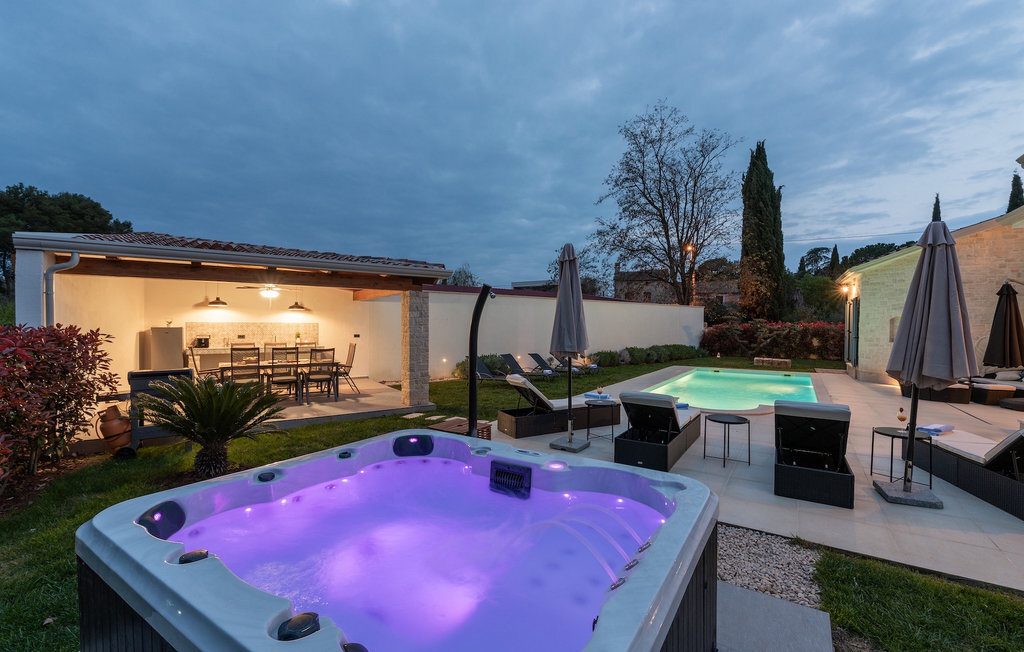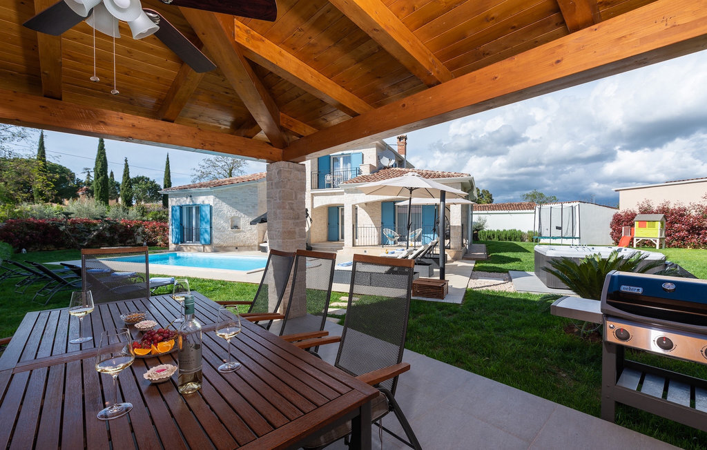 Avec son équipement et sa situation fantastique près de la mer, la Villa LaDora est l'endroit idéal pour passer des vacances relaxantes en famille ou entre amis. Réservez dès maintenant et profitez bientôt d'un séjour de rêve en Istrie!La Villa LaDora est située dans le petit village paisible de Tar, à seulement 8 km de la célèbre ville côtière touristique de Porec, sur la côte ouest de l'Istrie. La plage de galets la plus proche, idéale pour les familles, n'est qu'à 2,5 km, mais il y a une multitude d'autres plages et baies à découvrir pendant que vous passez vos vacances sous le soleil d'Istrie.