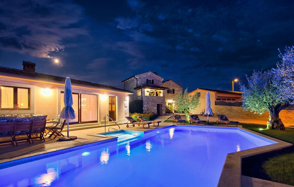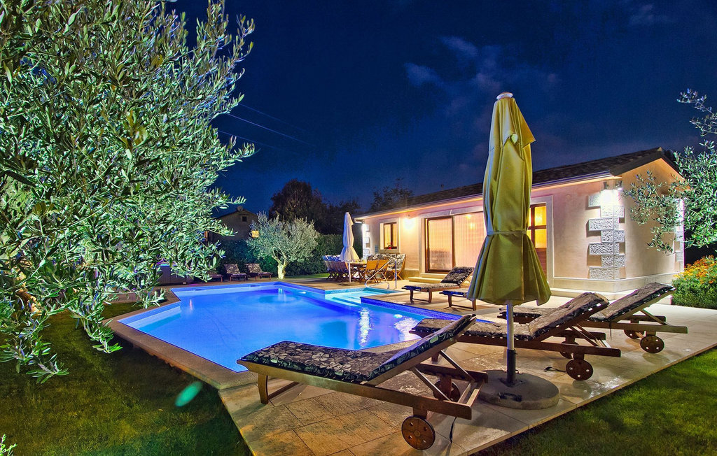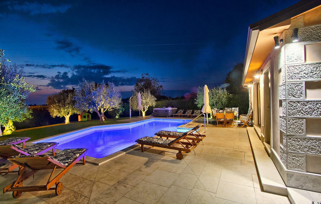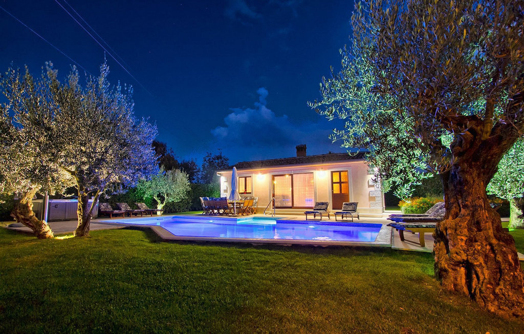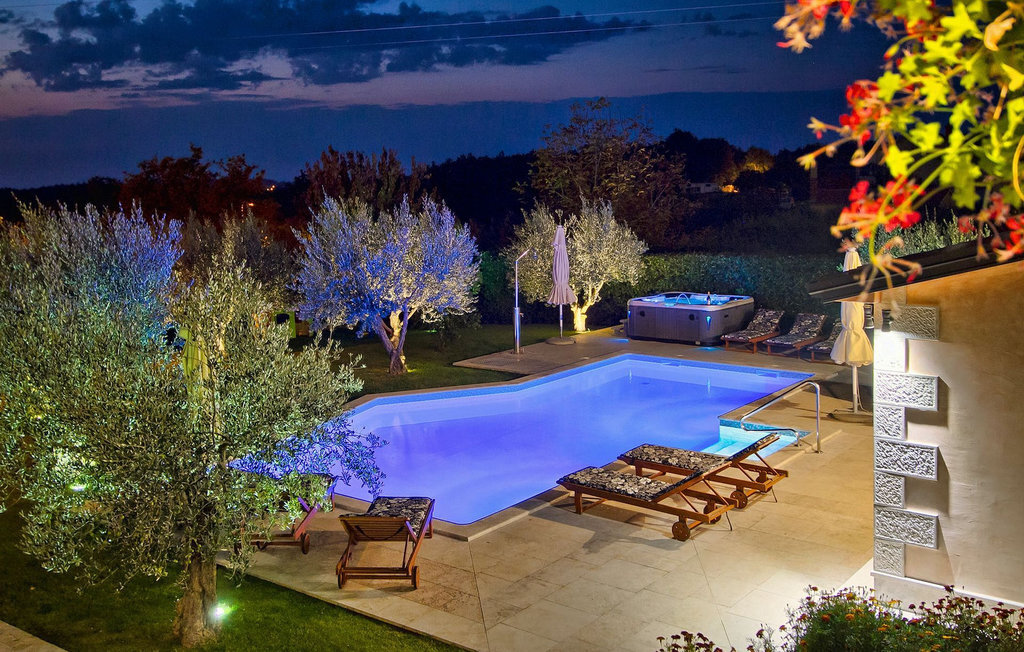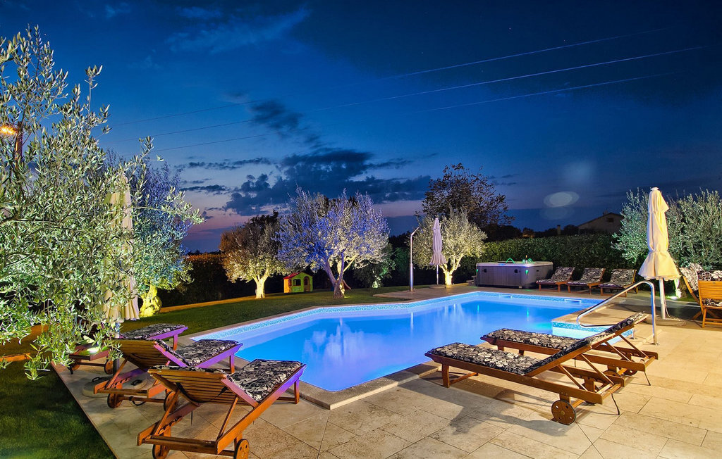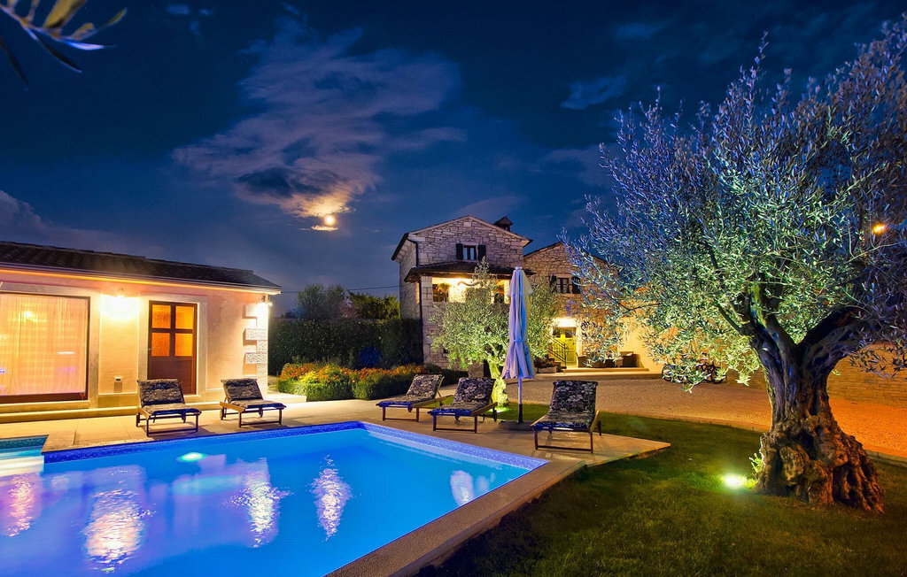 La nuit, vous pourrez profiter des effets de lumière au bord de la piscine, sous les oliviers, qui créent une atmosphère particulière.