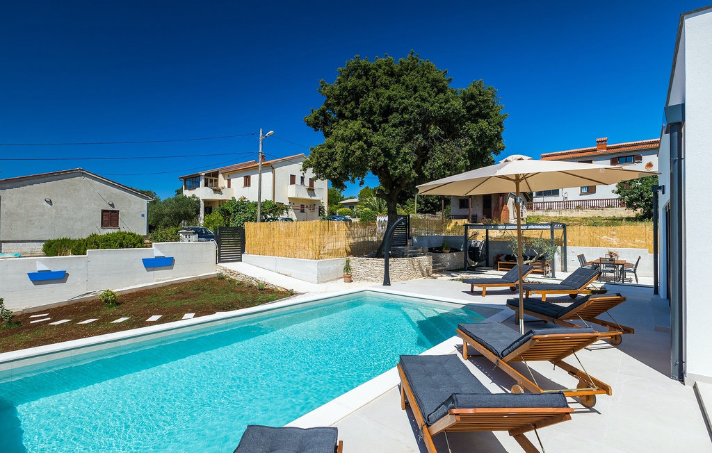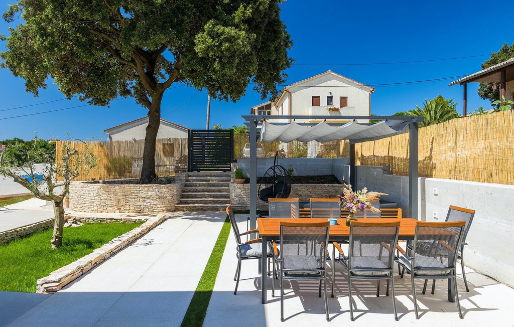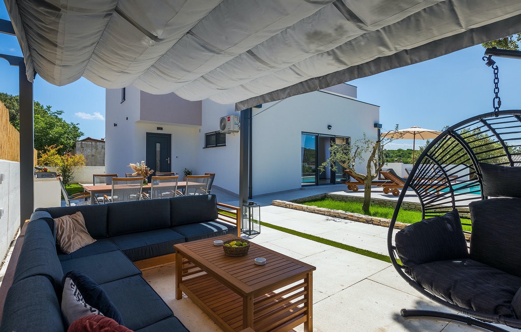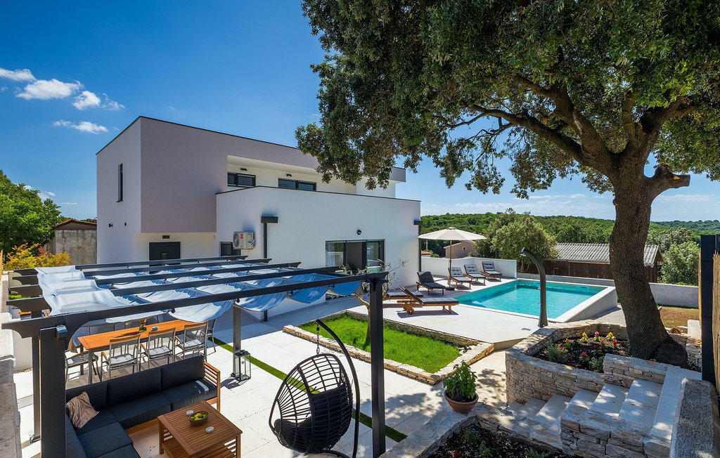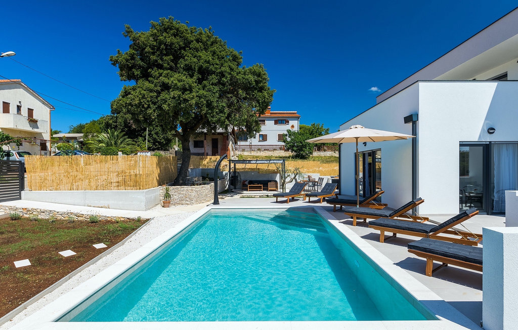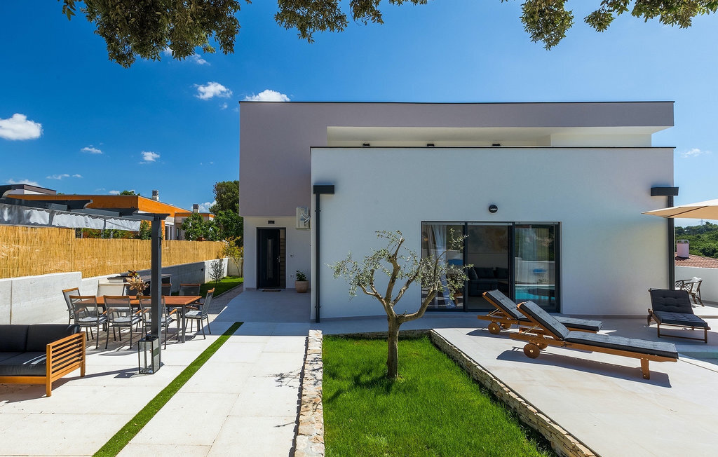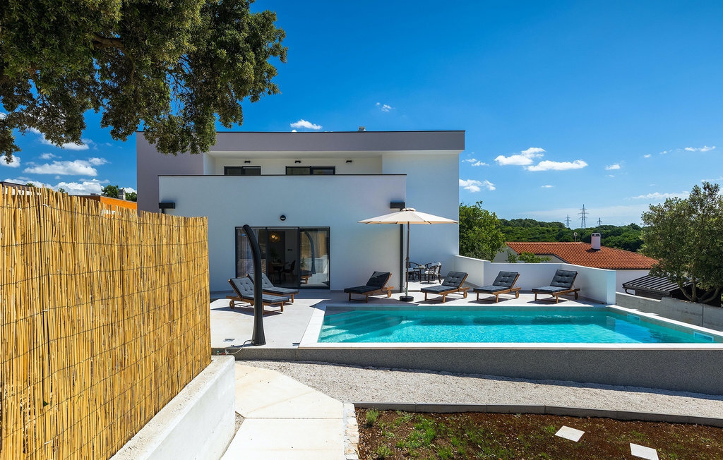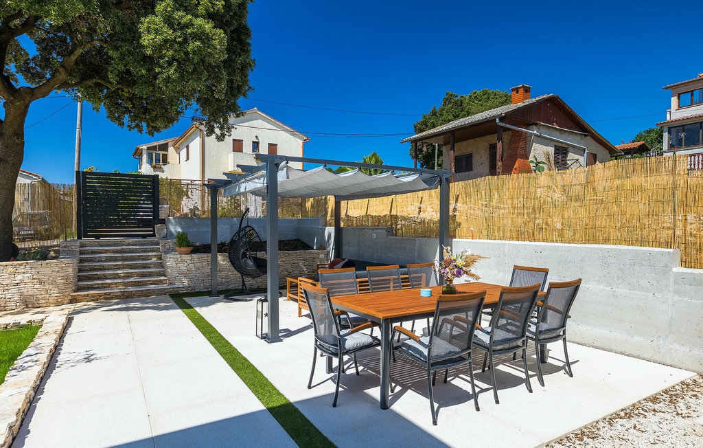 La villa My Hana se trouve à proximité de la ville historique de Pula. Elle peut accueillir jusqu'à 8 personnes et offre tout ce qu'il faut pour des vacances reposantes avec vos proches. À l'extérieur, vous trouverez une belle piscine privée avec des chaises longues ainsi qu'une terrasse couverte avec des meubles de jardin, un barbecue et un coin repas en plein air. Le terrain est entièrement clôturé et dispose d'un parking privé pouvant accueillir jusqu'à 4 voitures. Le rez-de-chaussée de la villa comprend une salle de séjour élégante avec un coin repas et une cuisine entièrement équipée ainsi que deux chambres à coucher. À l'étage se trouvent deux autres chambres confortables et une grande terrasse. Chaque chambre dispose de la climatisation, d'une télévision et d'une salle de bain privée. La villa My Hana est le choix parfait pour s'évader de votre quotidien et passer des vacances de rêve. Les groupes de jeunes ne sont pas admis.La villa My Hana se trouve à proximité de Pula. Pula est le centre touristique de l'Istrie en termes de culture, de tradition et de belle nature. Elle a connu son apogée à l'époque romaine. Les Romains ont laissé de nombreuses traces, notamment le bel amphithéâtre. Explorez les rues de la ville et savourez votre première tasse de café dans l'un des nombreux bars et restaurants, où vous pourrez également goûter aux célèbres spécialités istriennes. À une courte distance en voiture se trouve le cap de Kamenjak, un magnifique exemple de nature intacte. Une mer cristalline et des plages à l'ombre naturelle couperont le souffle même aux plus difficiles. Pour les amateurs de sport, diverses activités sont proposées, comme par exemple le football, l'équitation, le tennis, la voile, le minigolf, le vol, le bowling, le volley-ball sur le sable, la plongée dans le silence du monde sous-marin et plusieurs autres sports et activités nautiques.