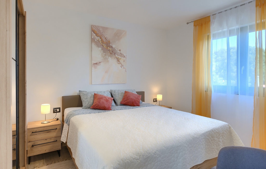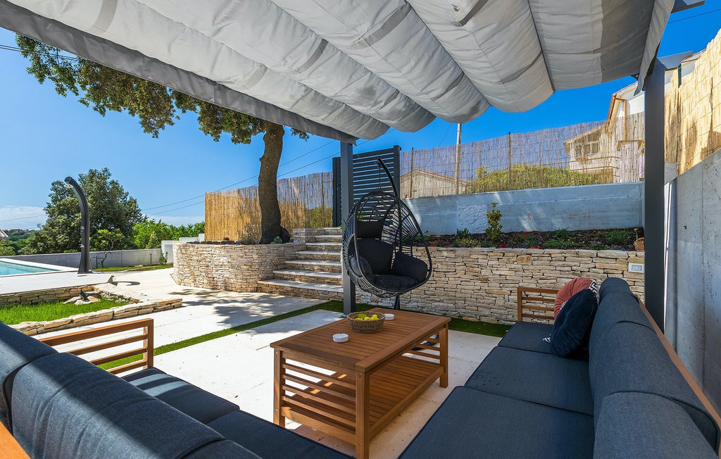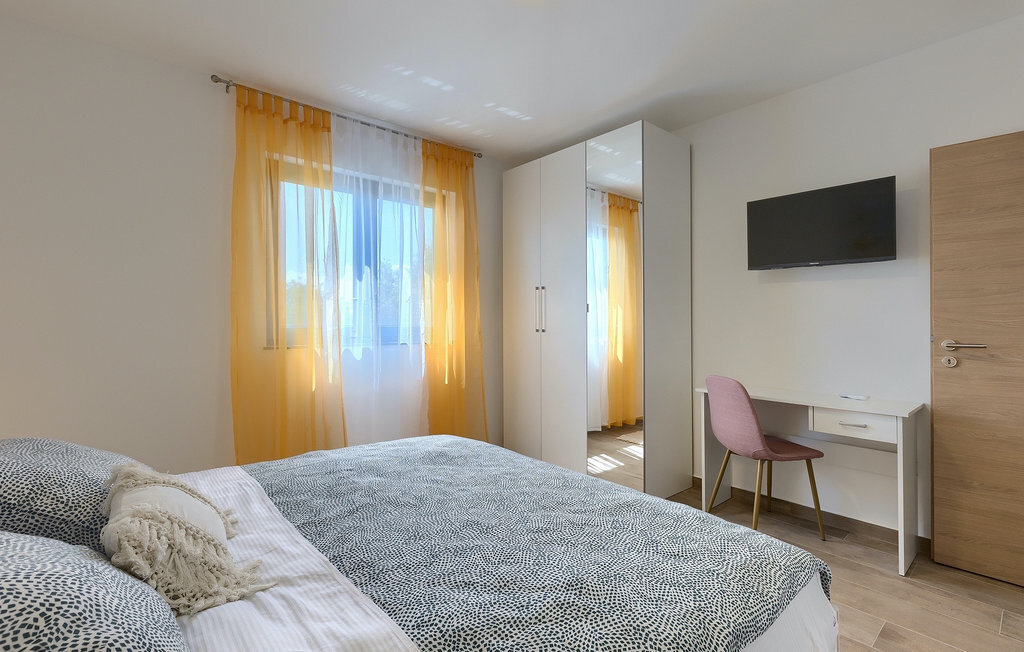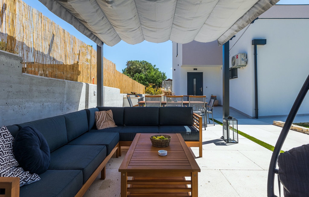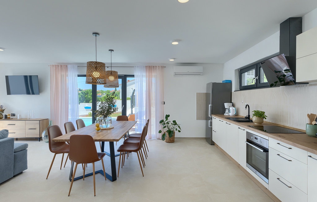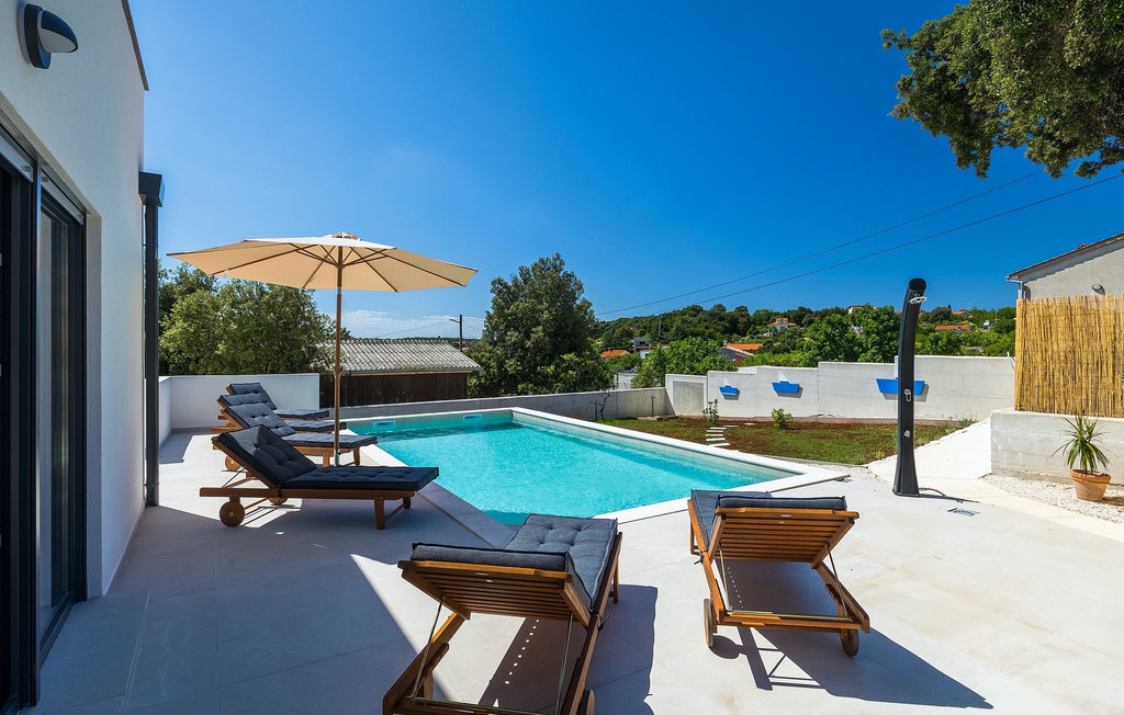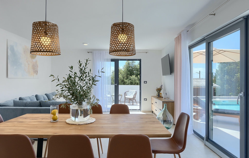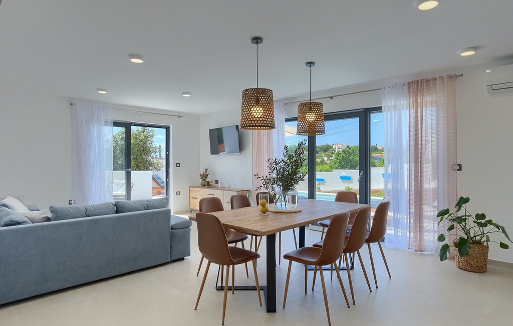 La villa My Hana se trouve à proximité de la ville historique de Pula. Elle peut accueillir jusqu'à 8 personnes et offre tout ce qu'il faut pour des vacances reposantes avec vos proches. À l'extérieur, vous trouverez une belle piscine privée avec des chaises longues ainsi qu'une terrasse couverte avec des meubles de jardin, un barbecue et un coin repas en plein air. Le terrain est entièrement clôturé et dispose d'un parking privé pouvant accueillir jusqu'à 4 voitures. Le rez-de-chaussée de la villa comprend une salle de séjour élégante avec un coin repas et une cuisine entièrement équipée ainsi que deux chambres à coucher. À l'étage se trouvent deux autres chambres confortables et une grande terrasse. Chaque chambre dispose de la climatisation, d'une télévision et d'une salle de bain privée. La villa My Hana est le choix parfait pour s'évader de votre quotidien et passer des vacances de rêve. Les groupes de jeunes ne sont pas admis.La villa My Hana se trouve à proximité de Pula. Pula est le centre touristique de l'Istrie en termes de culture, de tradition et de belle nature. Elle a connu son apogée à l'époque romaine. Les Romains ont laissé de nombreuses traces, notamment le bel amphithéâtre. Explorez les rues de la ville et savourez votre première tasse de café dans l'un des nombreux bars et restaurants, où vous pourrez également goûter aux célèbres spécialités istriennes. À une courte distance en voiture se trouve le cap de Kamenjak, un magnifique exemple de nature intacte. Une mer cristalline et des plages à l'ombre naturelle couperont le souffle même aux plus difficiles. Pour les amateurs de sport, diverses activités sont proposées, comme par exemple le football, l'équitation, le tennis, la voile, le minigolf, le vol, le bowling, le volley-ball sur le sable, la plongée dans le silence du monde sous-marin et plusieurs autres sports et activités nautiques.