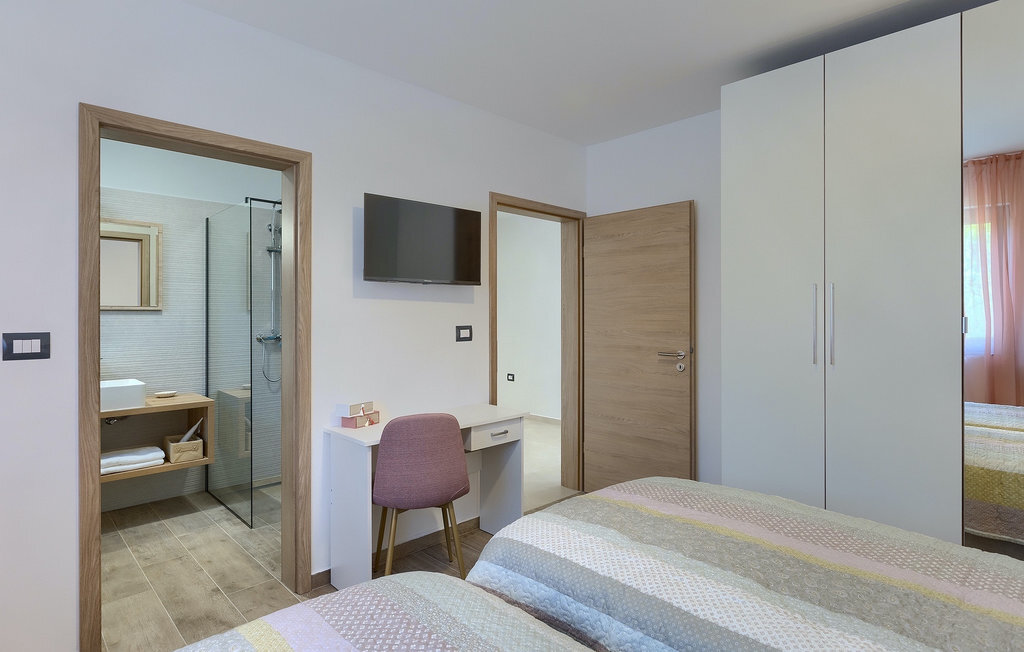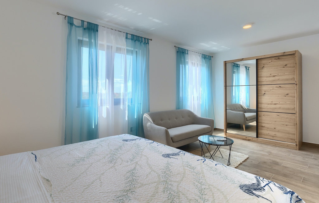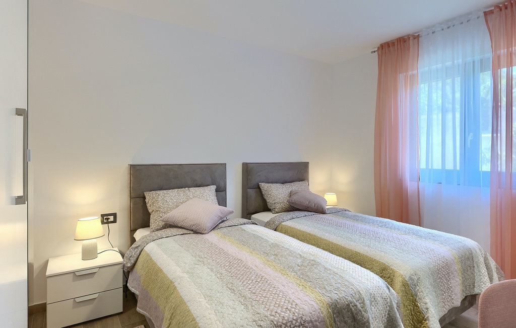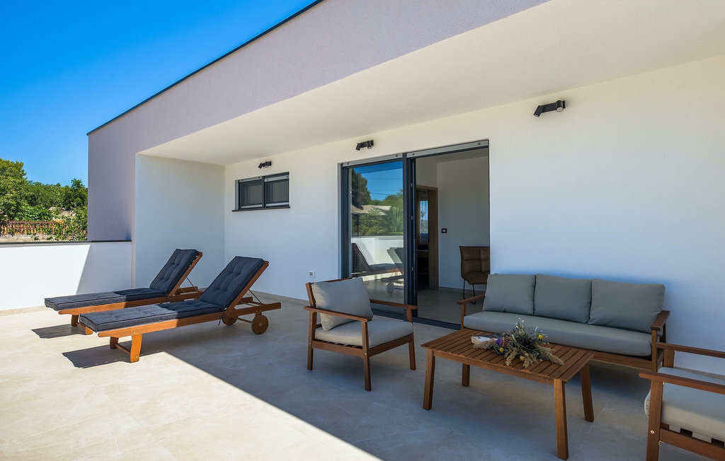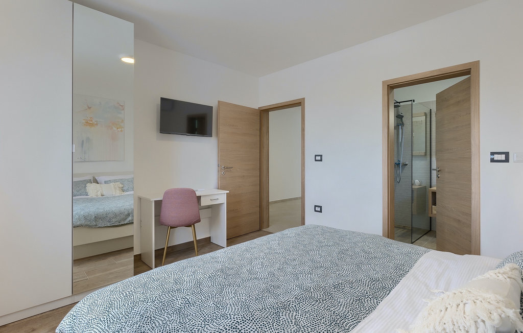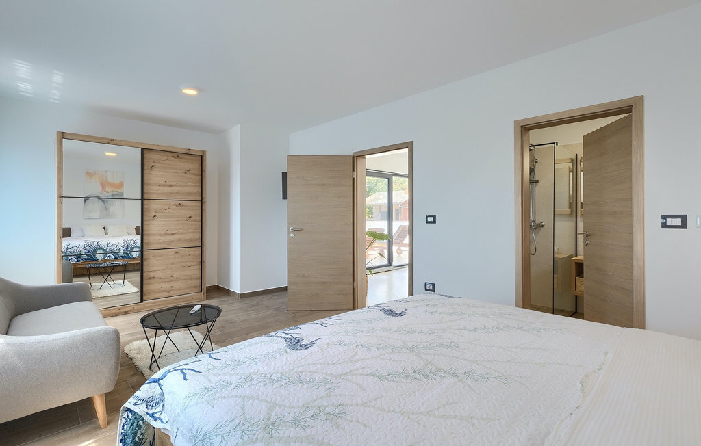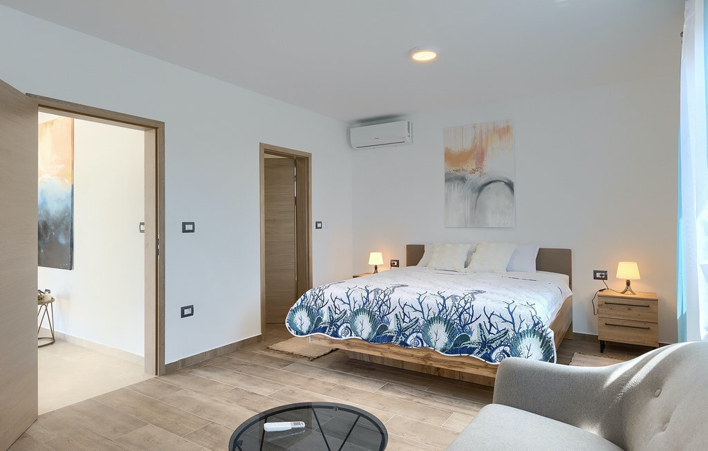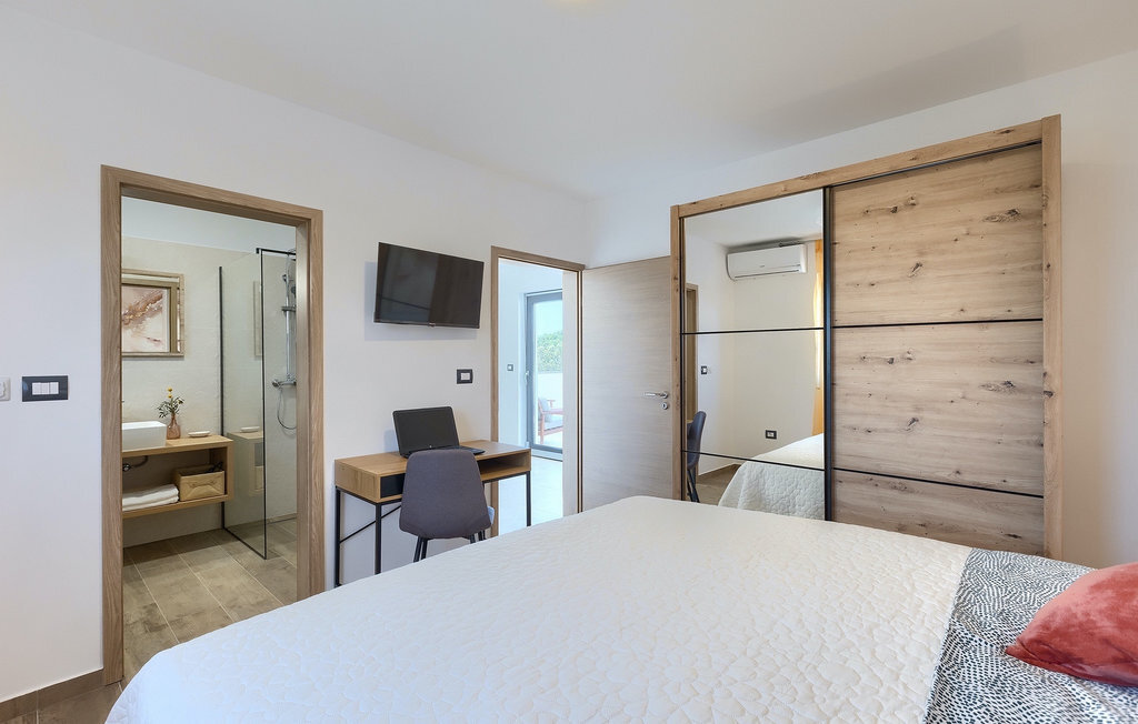 La villa My Hana se trouve à proximité de la ville historique de Pula. Elle peut accueillir jusqu'à 8 personnes et offre tout ce qu'il faut pour des vacances reposantes avec vos proches. À l'extérieur, vous trouverez une belle piscine privée avec des chaises longues ainsi qu'une terrasse couverte avec des meubles de jardin, un barbecue et un coin repas en plein air. Le terrain est entièrement clôturé et dispose d'un parking privé pouvant accueillir jusqu'à 4 voitures. Le rez-de-chaussée de la villa comprend une salle de séjour élégante avec un coin repas et une cuisine entièrement équipée ainsi que deux chambres à coucher. À l'étage se trouvent deux autres chambres confortables et une grande terrasse. Chaque chambre dispose de la climatisation, d'une télévision et d'une salle de bain privée. La villa My Hana est le choix parfait pour s'évader de votre quotidien et passer des vacances de rêve. Les groupes de jeunes ne sont pas admis.La villa My Hana se trouve à proximité de Pula. Pula est le centre touristique de l'Istrie en termes de culture, de tradition et de belle nature. Elle a connu son apogée à l'époque romaine. Les Romains ont laissé de nombreuses traces, notamment le bel amphithéâtre. Explorez les rues de la ville et savourez votre première tasse de café dans l'un des nombreux bars et restaurants, où vous pourrez également goûter aux célèbres spécialités istriennes. À une courte distance en voiture se trouve le cap de Kamenjak, un magnifique exemple de nature intacte. Une mer cristalline et des plages à l'ombre naturelle couperont le souffle même aux plus difficiles. Pour les amateurs de sport, diverses activités sont proposées, comme par exemple le football, l'équitation, le tennis, la voile, le minigolf, le vol, le bowling, le volley-ball sur le sable, la plongée dans le silence du monde sous-marin et plusieurs autres sports et activités nautiques.