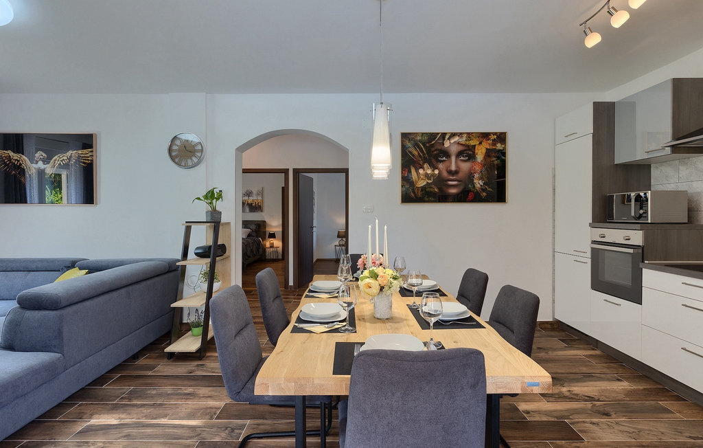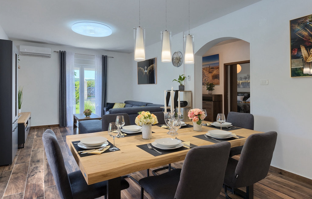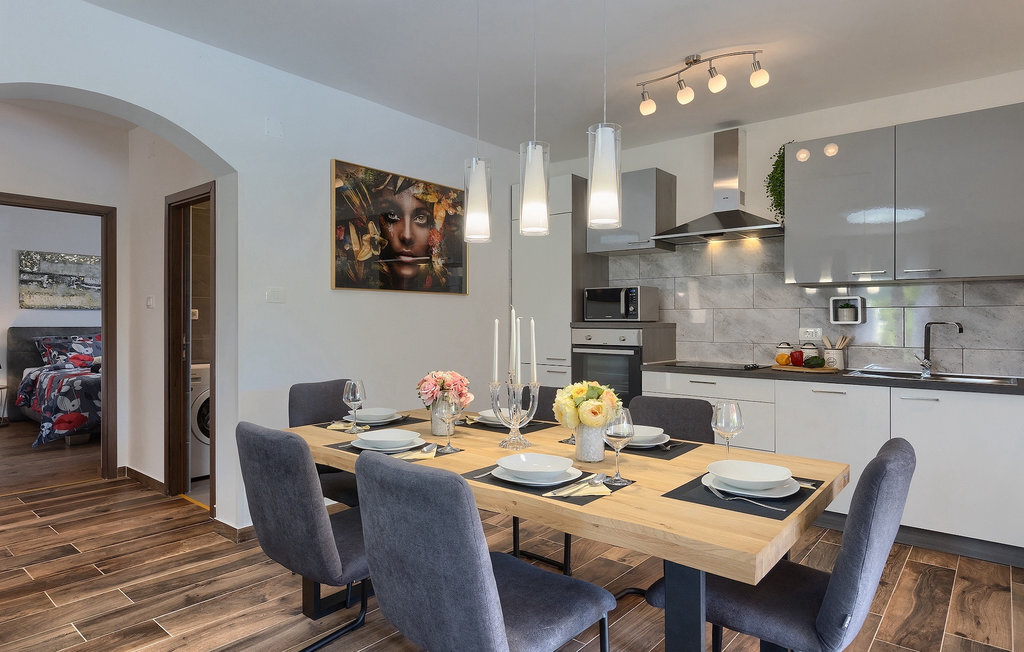 Profitez de vos vacances bien méritées dans la magnifique Villa Elanna et échappez au quotidien!Labin est le centre historique et administratif de l'Estrie. Avec son riche patrimoine culturel et architectural, la région est un paradis pour les amateurs d'histoire et d'art. Les ruelles escarpées et sinueuses de la vieille ville abritent des palais historiques bien conservés ainsi que de nombreuses galeries d'art et ateliers. Pendant les mois d'été, plusieurs festivals de jazz et de musique classique sont organisés. La ville compte plusieurs excellents restaurants de poisson proposant de nombreux produits locaux, ainsi que de nombreux cafés confortables, idéaux pour profiter de l'atmosphère détendue. La station balnéaire de Labin est Rabac, autrefois un village de pêcheurs et aujourd'hui une destination touristique très prisée, entourée de divines plages de galets. La côte est de l'Istrie offre une grande variété de plages et une mer cristalline. Le long de la côte préservée, vous trouverez des baies tranquilles avec de doux galets et des rochers, entourées de forêts à feuilles persistantes. Avec ses nombreux sentiers côtiers et forestiers, cette région est idéale pour faire du VTT, de longues randonnées relaxantes, de l'équitation, mais aussi comme point de départ pour des excursions qui vous permettront de découvrir l'Istrie magique.