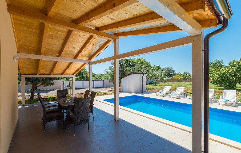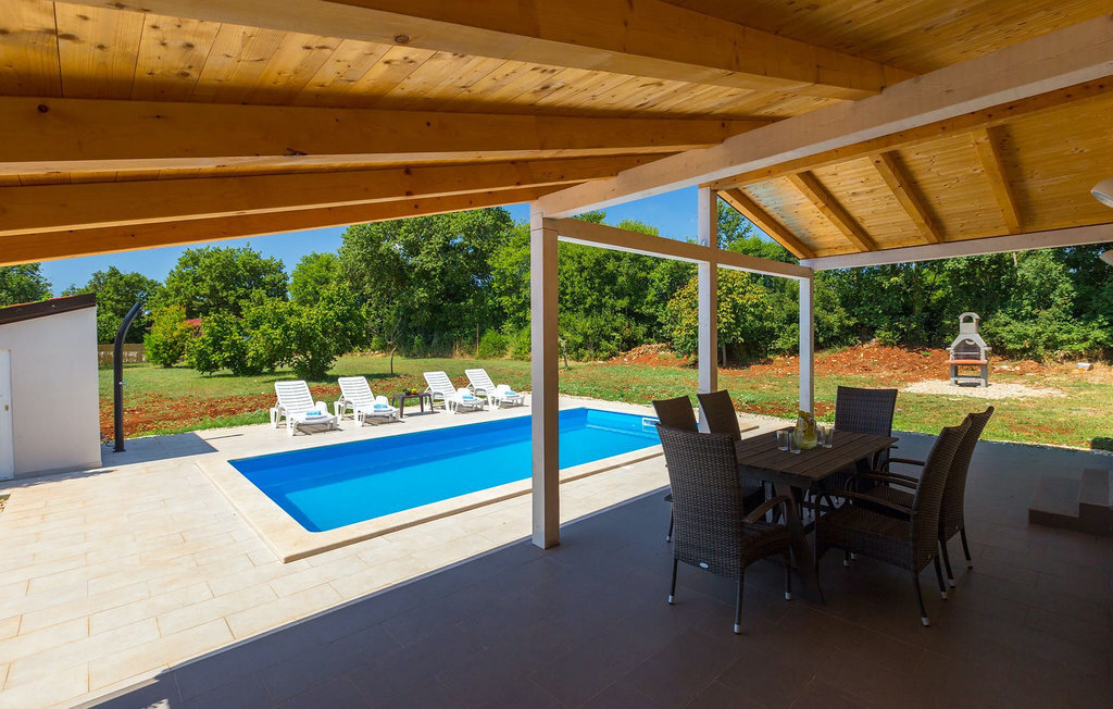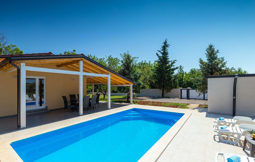 La Villa Nezakcij est une jolie petite villa située près de Pula, qui offre un hébergement parfait pour les petits groupes. La villa dispose de 3 chambres joliment aménagées et peut accueillir au total jusqu'à 5+1 personnes. La villa se compose d'une salle de séjour ouverte avec une cuisine moderne et bien équipée et un coin repas. Deux des trois chambres ont un lit double et une salle de bain privée, tandis que la troisième a un lit simple et une salle de bain séparée. L'espace extérieur est le point fort de la Villa Nezakcij. Devant la villa se trouve une grande piscine privée qui vous invite à prendre un bain rafraîchissant ou à vous détendre sur les confortables chaises longues tout en lisant votre livre préféré. La villa est entièrement clôturée et dispose d'une grande pelouse où vos enfants pourront s'amuser. À quelques pas de la villa se trouve un barbecue au charbon de bois, sur lequel vous pourrez préparer de délicieux repas que vous servirez à votre famille dans la salle à manger extérieure couverte. La villa est idéale pour les familles qui recherchent des vacances reposantes au cœur de la nature.Le petit village pittoresque de Valtura est connu pour son riche patrimoine culturel et historique datant de l'époque romaine. Le site archéologique le plus important, Nezakcij, se trouve à seulement 2 km de Valtura et est une destination très appréciée des archéologues. C'est un endroit idéal pour les amoureux de la nature, ainsi que pour ceux qui souhaitent se détendre loin de l'agitation de la vie quotidienne,