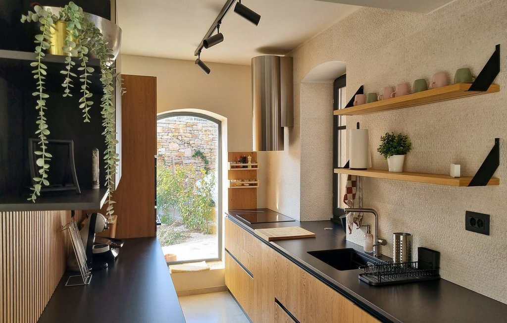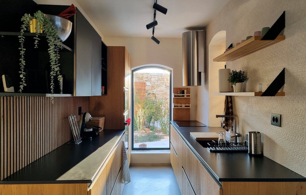 Le salon et la cuisine ainsi qu'un WC visiteurs se trouvent au rez-de-chaussée, au même niveau que la piscine et l'espace repas extérieur. La piscine privée peut être chauffée sur demande.