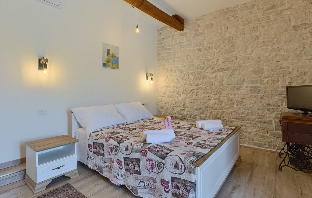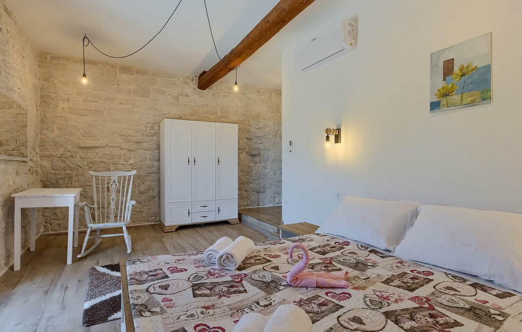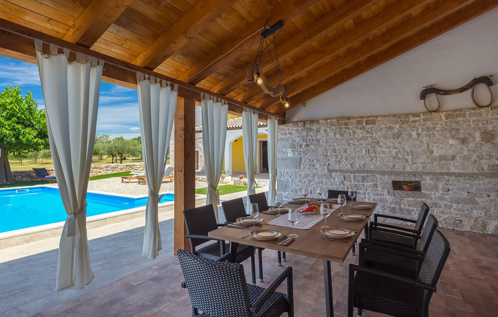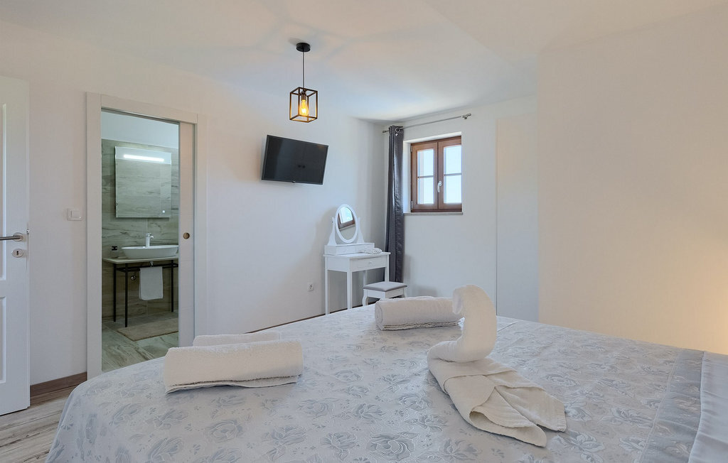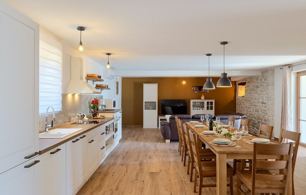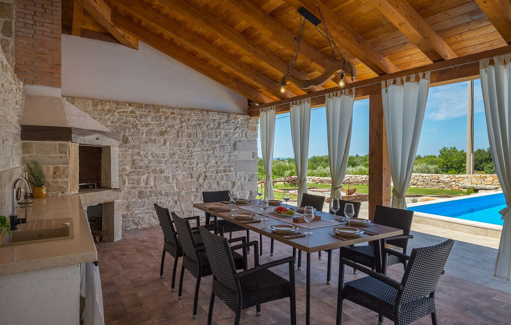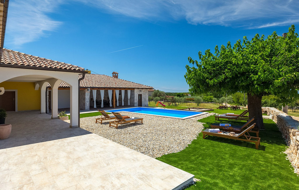 La charmante villa Lanca en Istrie, située dans un magnifique environnement naturel, vous offre des vacances calmes et reposantes. La villa peut accueillir 8 personnes au total dans un cadre agréable avec des détails istriens et un intérieur moderne. La villa est entourée de nature et de verdure et dans la cour intérieure de la villa se trouve un petit jardin d'oliviers. Le rez-de-chaussée de la villa est de type ouvert avec un salon, une cuisine et une salle à manger entièrement équipées, une chambre à coucher et une salle de bain. Au premier étage se trouvent trois chambres avec salles de bains en suite. La cour de la villa, d'une superficie de 4282 m2, comprend un jardin d'oliviers à côté duquel se trouve une aire de jeux pour les plus jeunes, une piscine privée et une terrasse extérieure avec barbecue, table et chaises pour profiter du dîner. Les murs en pierre de certaines parties de la villa lui confèrent un aspect charmant de style méditerranéen. Rafraîchissez-vous dans la piscine privée et prenez un verre sur les chaises longues dans le magnifique cadre istrien. Pour un divertissement supplémentaire, des fléchettes et une table de ping-pong sont à votre disposition. Réservez la Villa Lanca pour des vacances parfaites en famille ou entre amis.La Villa Lanca est située dans la petite commune de Sveti Lovrec, également connue sous le nom de San Lorenzo del Pasenatico. Cette villa, qui jouit d'une situation magnifique, offre aux hôtes la possibilité d'explorer les petites villes environnantes et de visiter leurs restaurants aux célèbres spécialités istriennes. Les environs offrent de nombreuses possibilités de loisirs : Faire du vélo, de l'équitation, du jogging, des randonnées et bien plus encore. La plage la plus proche, aux eaux cristallines, se trouve à Vrsar, à 10 km de la villa. Les célèbres villes côtières de Porec et Rovinj se trouvent à proximité. Promenez-vous dans les ruelles romantiques de Rovinj et visitez l'église baroque de Sainte-Euphémie et le palais municipal. Les amateurs de cuisine ne doivent pas manquer le restaurant Monte, qui a gagné une étoile Michelin. Nous vous recommandons également de faire une excursion en bateau vers l'archipel de Rovinj. À Porec, visitez la basilique d'Euphrasius (patrimoine mondial de l'UNESCO). Vous y trouverez une multitude de cafés, de bars et de restaurants. Les petites villes médiévales à flanc de colline de Motovun et Groznjan valent également le détour.