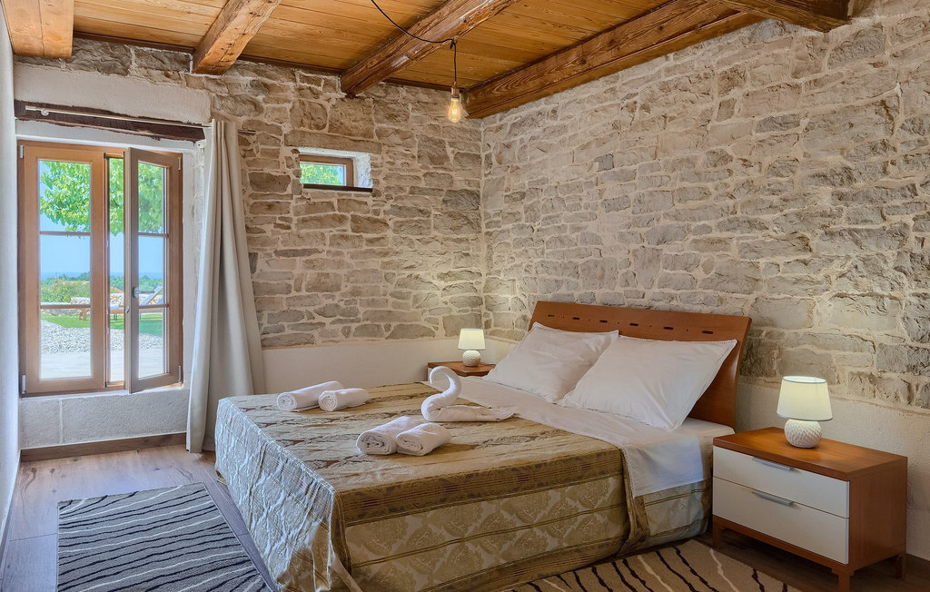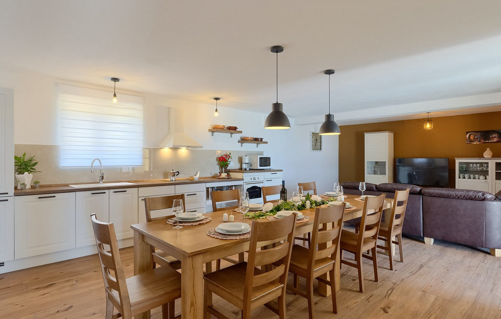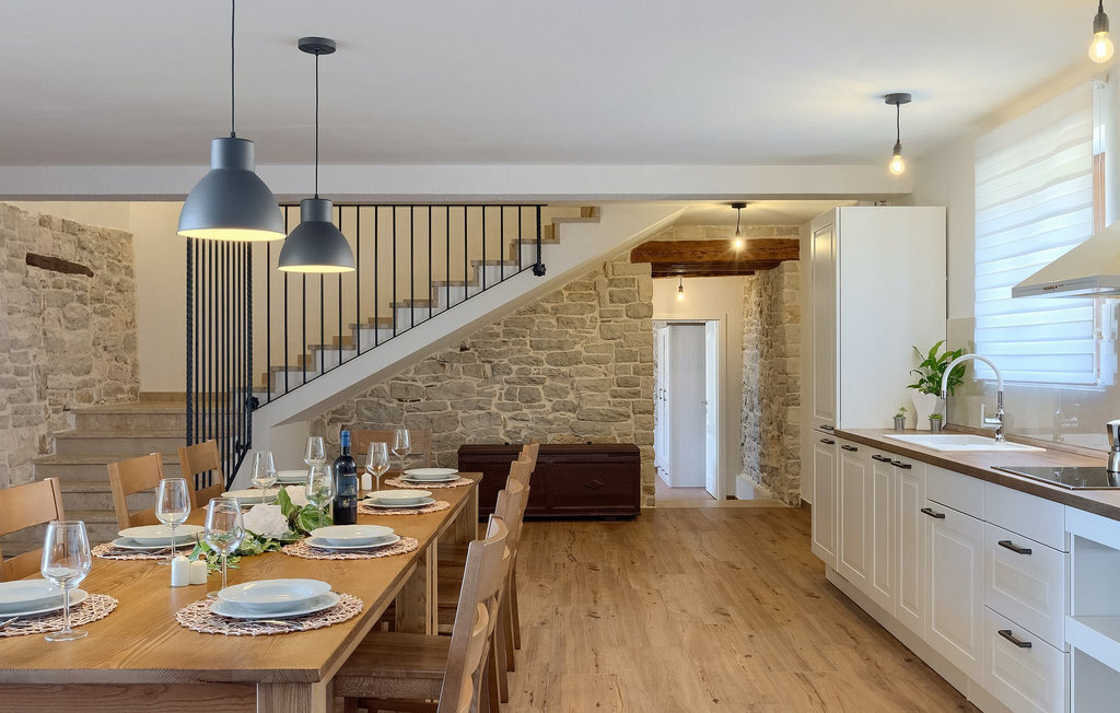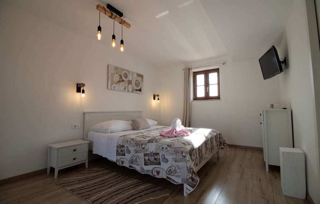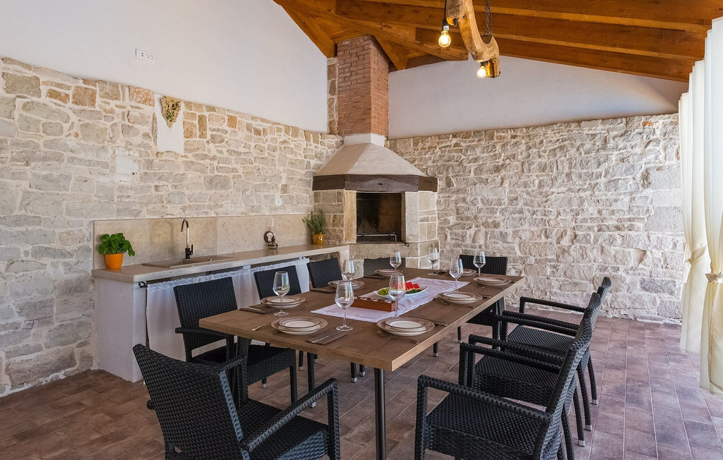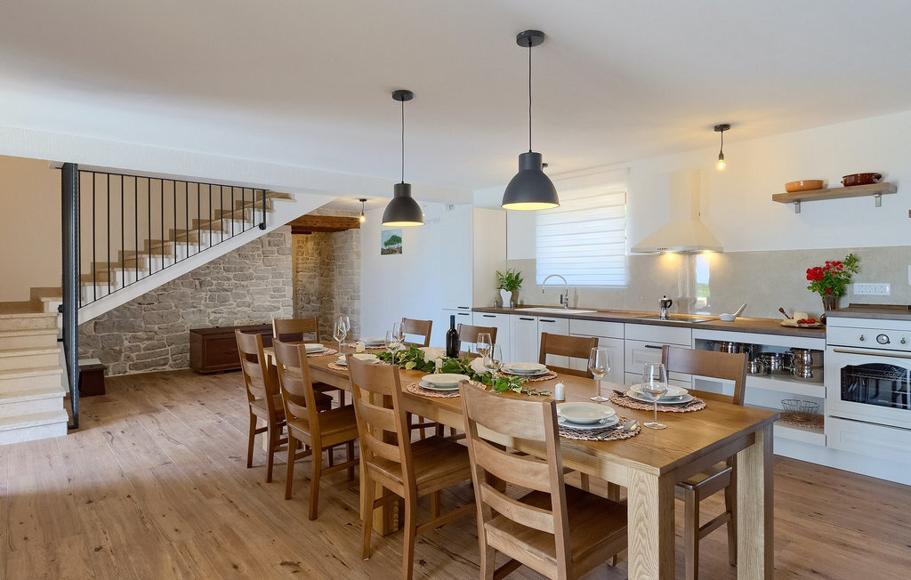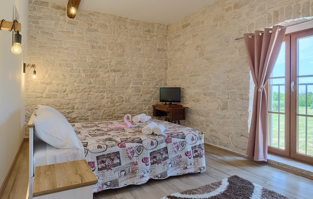 La charmante villa Lanca en Istrie, située dans un magnifique environnement naturel, vous offre des vacances calmes et reposantes. La villa peut accueillir 8 personnes au total dans un cadre agréable avec des détails istriens et un intérieur moderne. La villa est entourée de nature et de verdure et dans la cour intérieure de la villa se trouve un petit jardin d'oliviers. Le rez-de-chaussée de la villa est de type ouvert avec un salon, une cuisine et une salle à manger entièrement équipées, une chambre à coucher et une salle de bain. Au premier étage se trouvent trois chambres avec salles de bains en suite. La cour de la villa, d'une superficie de 4282 m2, comprend un jardin d'oliviers à côté duquel se trouve une aire de jeux pour les plus jeunes, une piscine privée et une terrasse extérieure avec barbecue, table et chaises pour profiter du dîner. Les murs en pierre de certaines parties de la villa lui confèrent un aspect charmant de style méditerranéen. Rafraîchissez-vous dans la piscine privée et prenez un verre sur les chaises longues dans le magnifique cadre istrien. Pour un divertissement supplémentaire, des fléchettes et une table de ping-pong sont à votre disposition. Réservez la Villa Lanca pour des vacances parfaites en famille ou entre amis.La Villa Lanca est située dans la petite commune de Sveti Lovrec, également connue sous le nom de San Lorenzo del Pasenatico. Cette villa, qui jouit d'une situation magnifique, offre aux hôtes la possibilité d'explorer les petites villes environnantes et de visiter leurs restaurants aux célèbres spécialités istriennes. Les environs offrent de nombreuses possibilités de loisirs : Faire du vélo, de l'équitation, du jogging, des randonnées et bien plus encore. La plage la plus proche, aux eaux cristallines, se trouve à Vrsar, à 10 km de la villa. Les célèbres villes côtières de Porec et Rovinj se trouvent à proximité. Promenez-vous dans les ruelles romantiques de Rovinj et visitez l'église baroque de Sainte-Euphémie et le palais municipal. Les amateurs de cuisine ne doivent pas manquer le restaurant Monte, qui a gagné une étoile Michelin. Nous vous recommandons également de faire une excursion en bateau vers l'archipel de Rovinj. À Porec, visitez la basilique d'Euphrasius (patrimoine mondial de l'UNESCO). Vous y trouverez une multitude de cafés, de bars et de restaurants. Les petites villes médiévales à flanc de colline de Motovun et Groznjan valent également le détour.