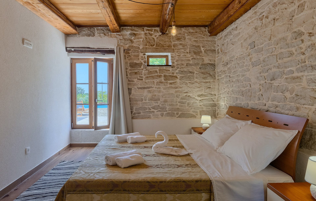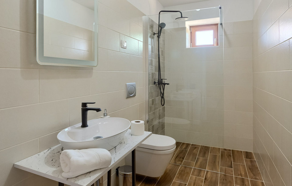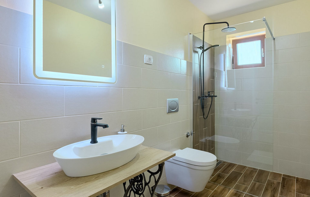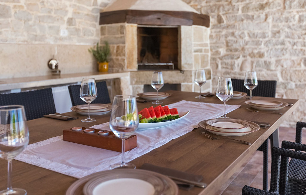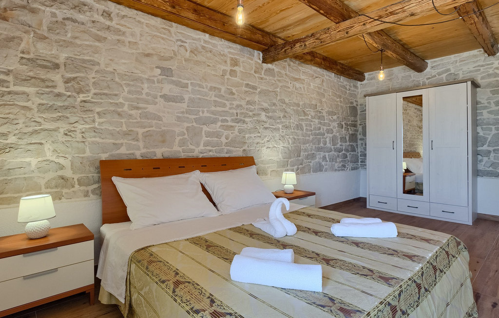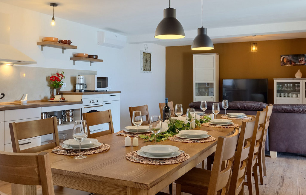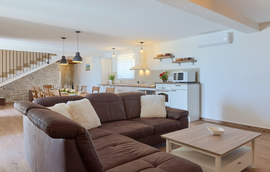 La charmante villa Lanca en Istrie, située dans un magnifique environnement naturel, vous offre des vacances calmes et reposantes. La villa peut accueillir 8 personnes au total dans un cadre agréable avec des détails istriens et un intérieur moderne. La villa est entourée de nature et de verdure et dans la cour intérieure de la villa se trouve un petit jardin d'oliviers. Le rez-de-chaussée de la villa est de type ouvert avec un salon, une cuisine et une salle à manger entièrement équipées, une chambre à coucher et une salle de bain. Au premier étage se trouvent trois chambres avec salles de bains en suite. La cour de la villa, d'une superficie de 4282 m2, comprend un jardin d'oliviers à côté duquel se trouve une aire de jeux pour les plus jeunes, une piscine privée et une terrasse extérieure avec barbecue, table et chaises pour profiter du dîner. Les murs en pierre de certaines parties de la villa lui confèrent un aspect charmant de style méditerranéen. Rafraîchissez-vous dans la piscine privée et prenez un verre sur les chaises longues dans le magnifique cadre istrien. Pour un divertissement supplémentaire, des fléchettes et une table de ping-pong sont à votre disposition. Réservez la Villa Lanca pour des vacances parfaites en famille ou entre amis.La Villa Lanca est située dans la petite commune de Sveti Lovrec, également connue sous le nom de San Lorenzo del Pasenatico. Cette villa, qui jouit d'une situation magnifique, offre aux hôtes la possibilité d'explorer les petites villes environnantes et de visiter leurs restaurants aux célèbres spécialités istriennes. Les environs offrent de nombreuses possibilités de loisirs : Faire du vélo, de l'équitation, du jogging, des randonnées et bien plus encore. La plage la plus proche, aux eaux cristallines, se trouve à Vrsar, à 10 km de la villa. Les célèbres villes côtières de Porec et Rovinj se trouvent à proximité. Promenez-vous dans les ruelles romantiques de Rovinj et visitez l'église baroque de Sainte-Euphémie et le palais municipal. Les amateurs de cuisine ne doivent pas manquer le restaurant Monte, qui a gagné une étoile Michelin. Nous vous recommandons également de faire une excursion en bateau vers l'archipel de Rovinj. À Porec, visitez la basilique d'Euphrasius (patrimoine mondial de l'UNESCO). Vous y trouverez une multitude de cafés, de bars et de restaurants. Les petites villes médiévales à flanc de colline de Motovun et Groznjan valent également le détour.