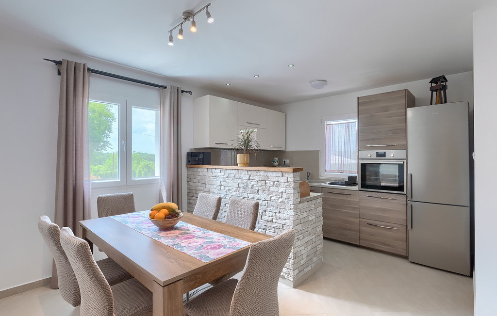 Réservez la Villa Pepa Butorini et passez un moment inoubliable avec vos proches dans la magnifique Istrie.La Villa Pepa Butori se trouve à proximité de la petite ville médiévale de Tinjan, qui offre des restaurants, des magasins et des services. La côte Adriatique avec ses plages et ses stations balnéaires de Porec, Rovinj et Novigrad est à environ 20 min. À 45 min se trouvent Pula et le parc national des îles Brijuni. Pazin se trouve à quelques kilomètres de la villa. C'est une petite ville riche en histoire, au cœur du charmant arrière-pays istrien, qui a beaucoup à offrir. Pendant des siècles, Pazin a été la plus forte forteresse des Habsbourg dans cette région et le quartier général de l'ancien prince. Aujourd'hui encore, vous pouvez visiter ce château médiéval (Kastel), car il est bien conservé. Aujourd'hui, il abrite le musée ethnographique d'Istrie et le musée de la ville de Pazin. Si vous êtes un amoureux de la nature, vous êtes également au bon endroit. Profitez de la randonnée, de la tyrolienne ou faites un tour en vélo gastronomique pour goûter aux spécialités istriennes.
